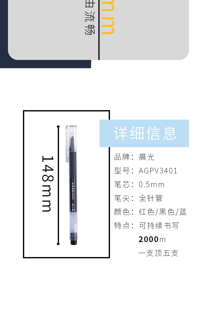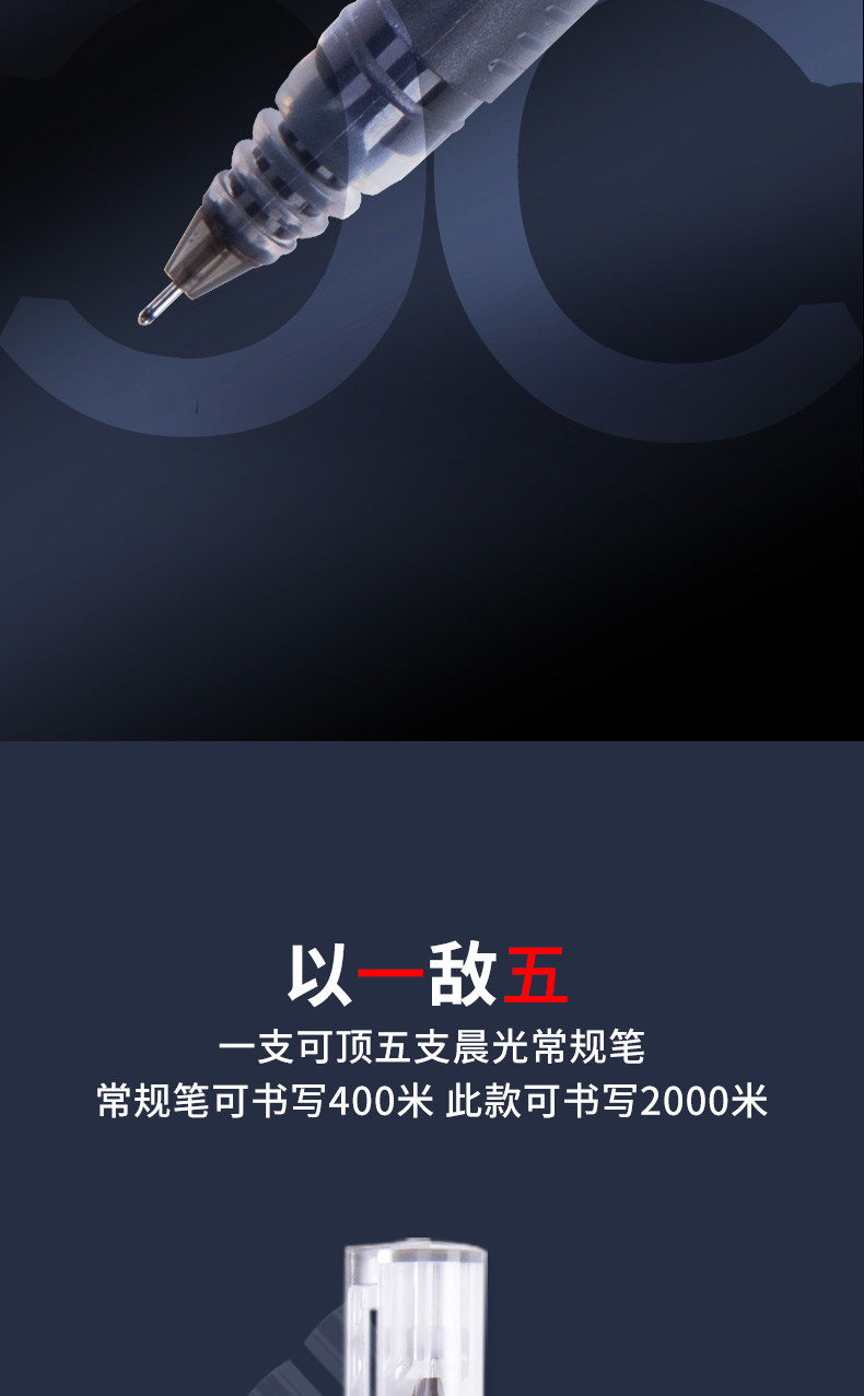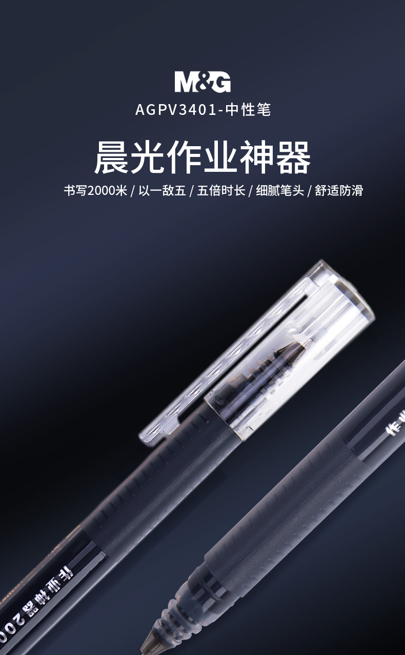 晨光作业神器中性笔0.5/AGPV3401大容量签字笔学生用巨能写一体式全针管碳素黑色红笔蓝