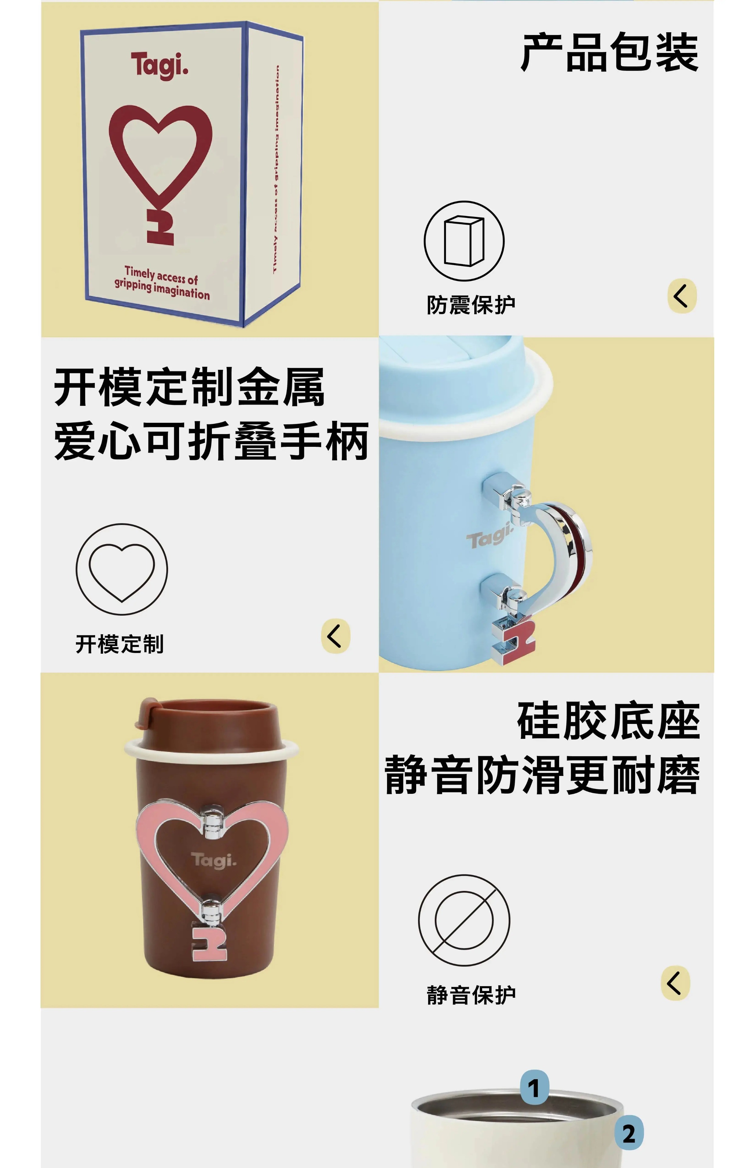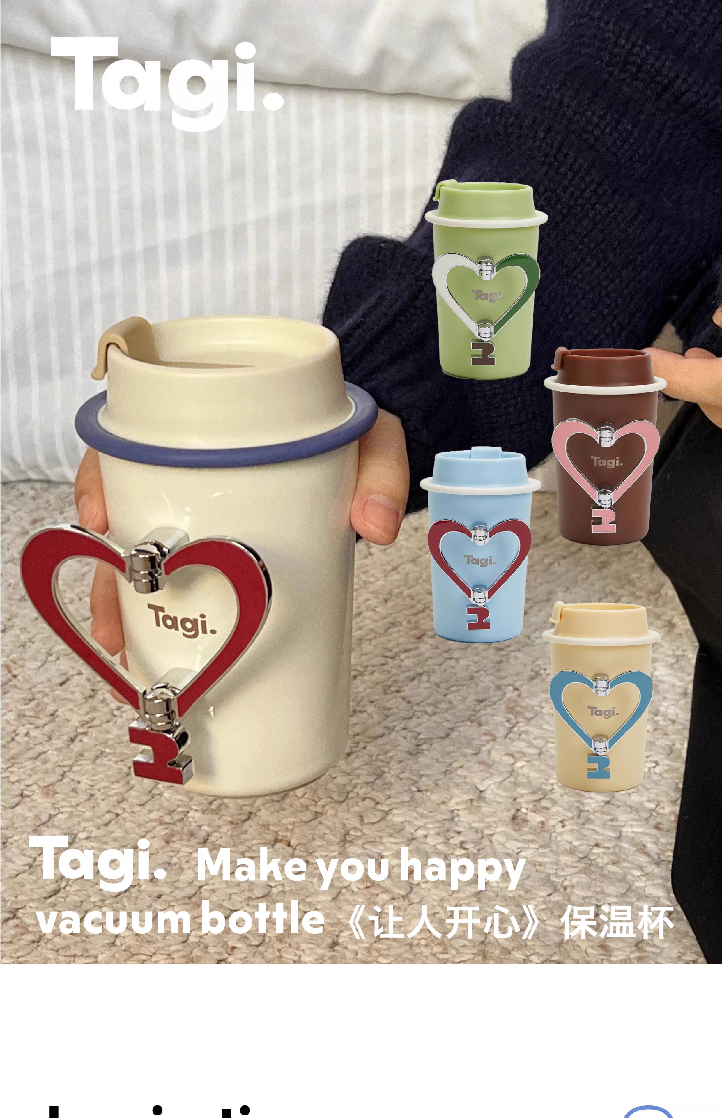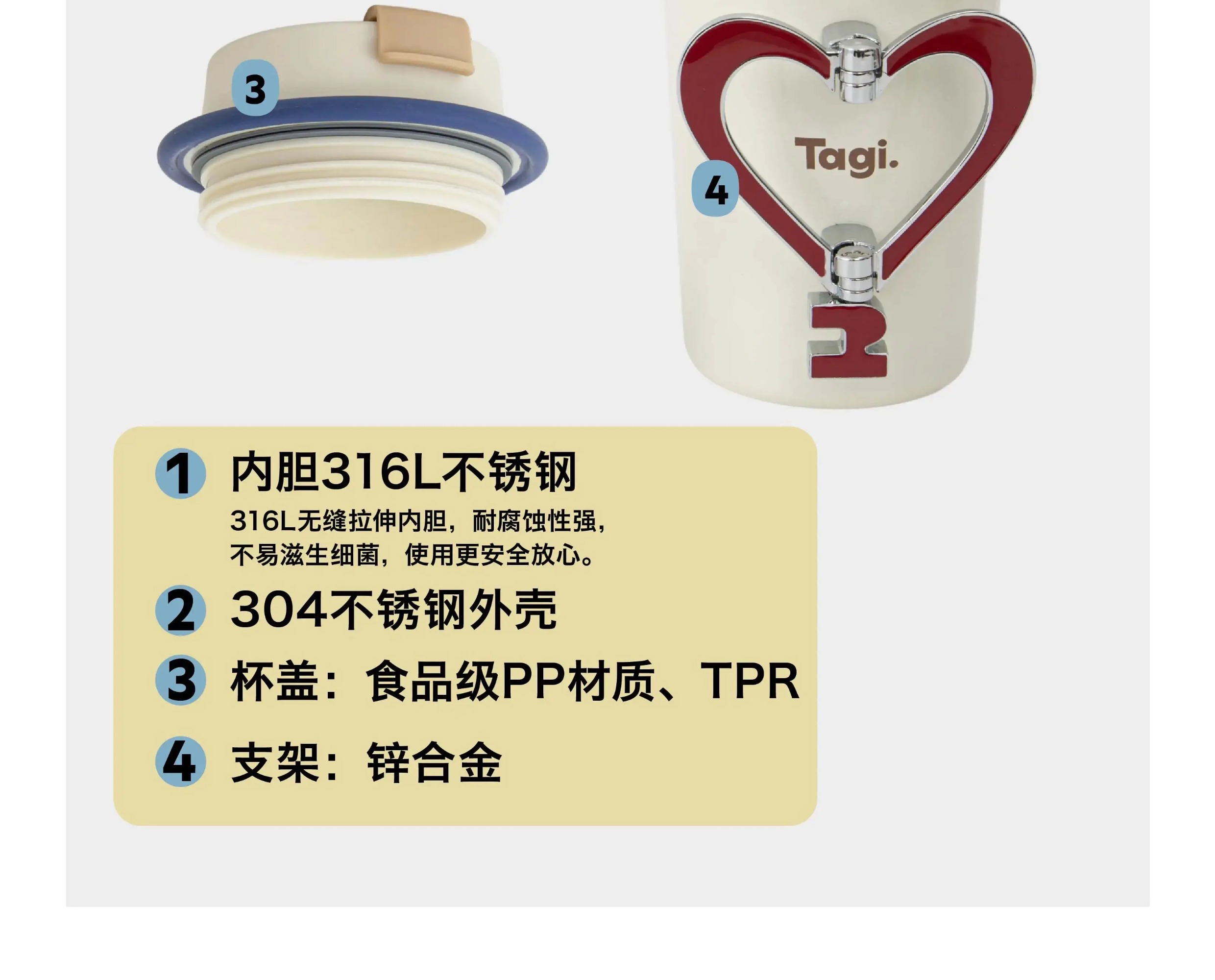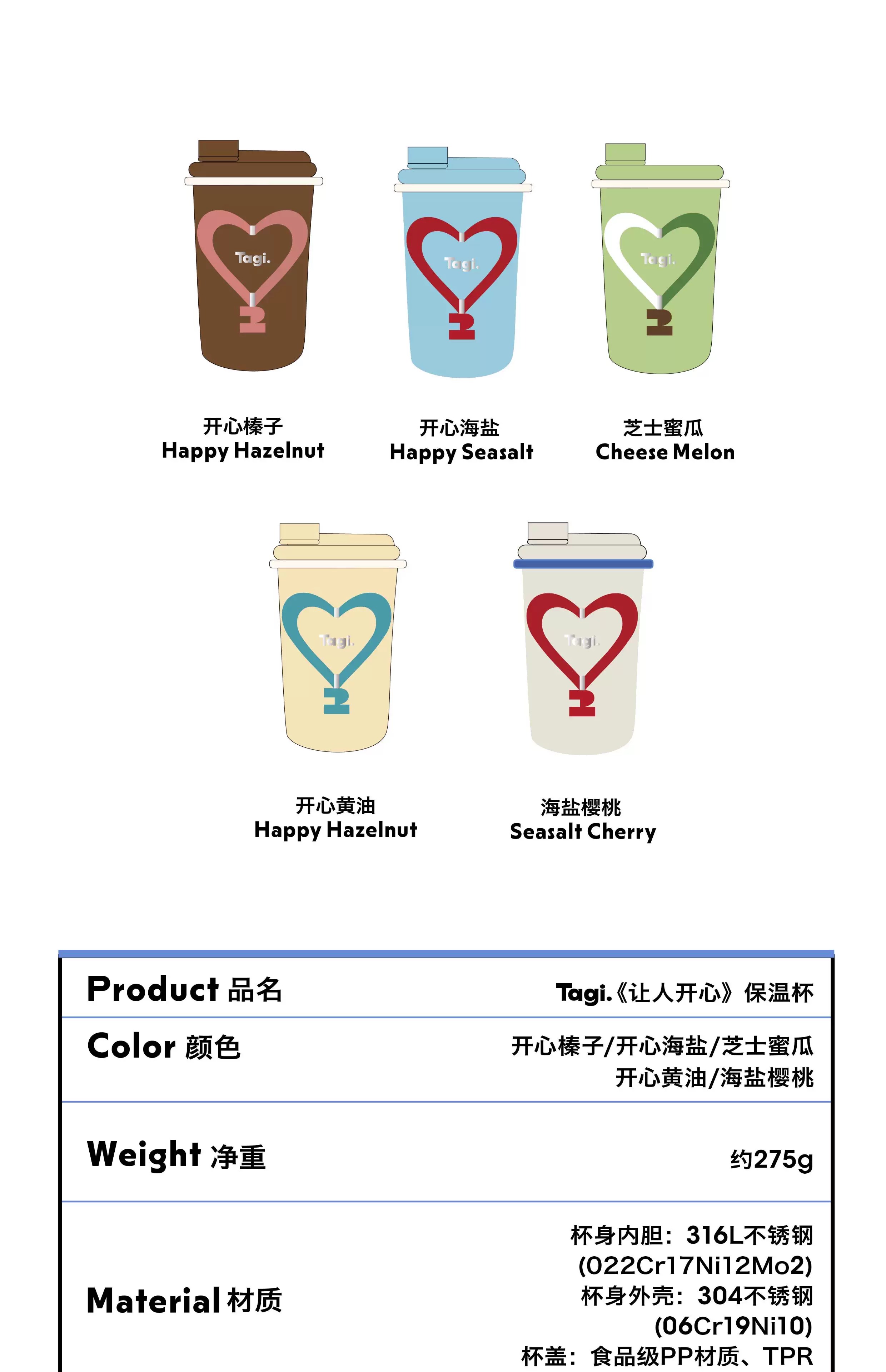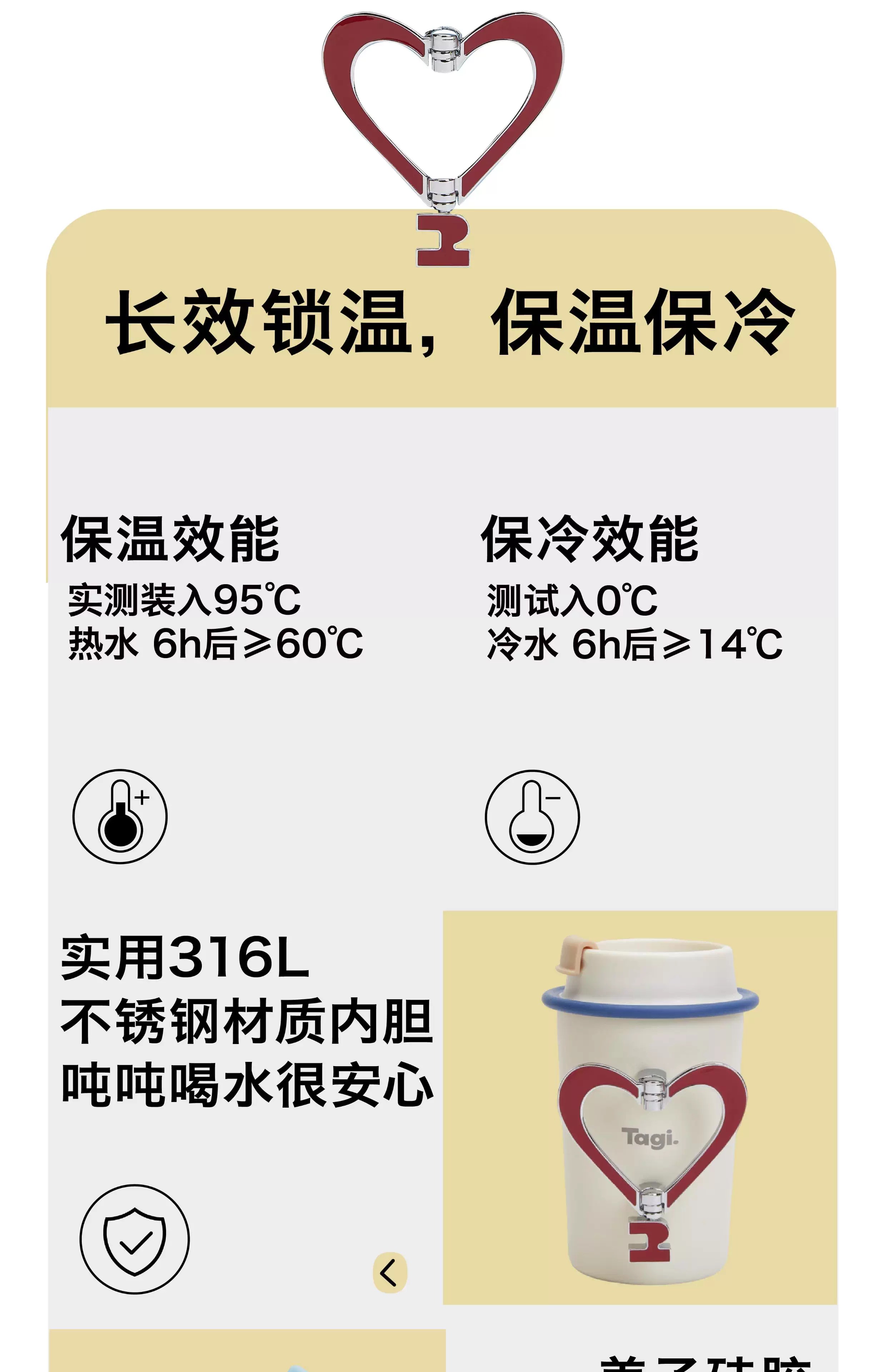 Tagi 金属可调节爱心保温杯 海盐樱桃 不锈钢无缝保温水杯咖啡随行杯保温杯