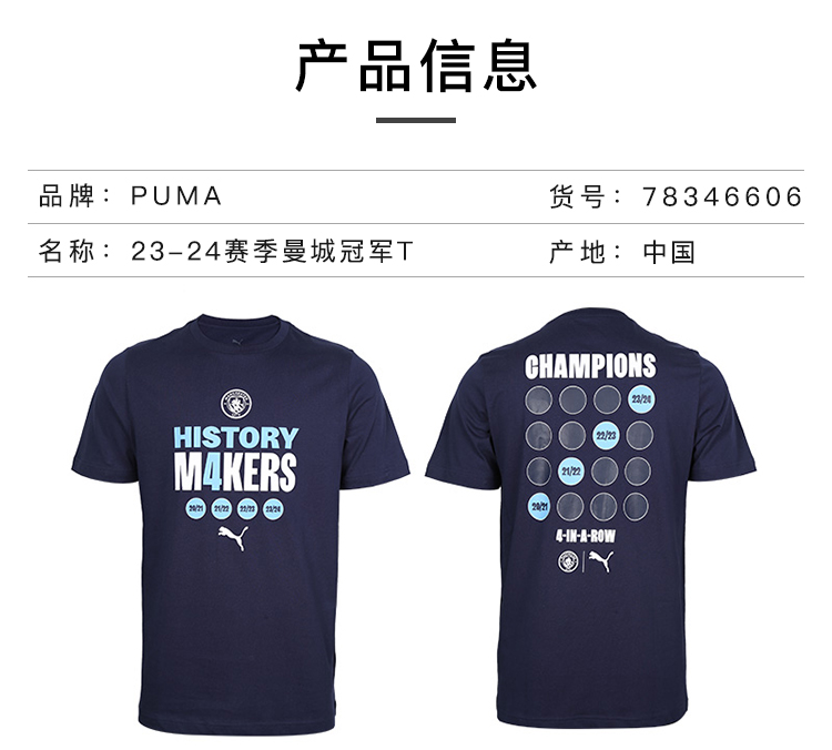 小李子PUMA彪马23-24赛季曼城冠军训练服短袖T恤成人男783466 06
