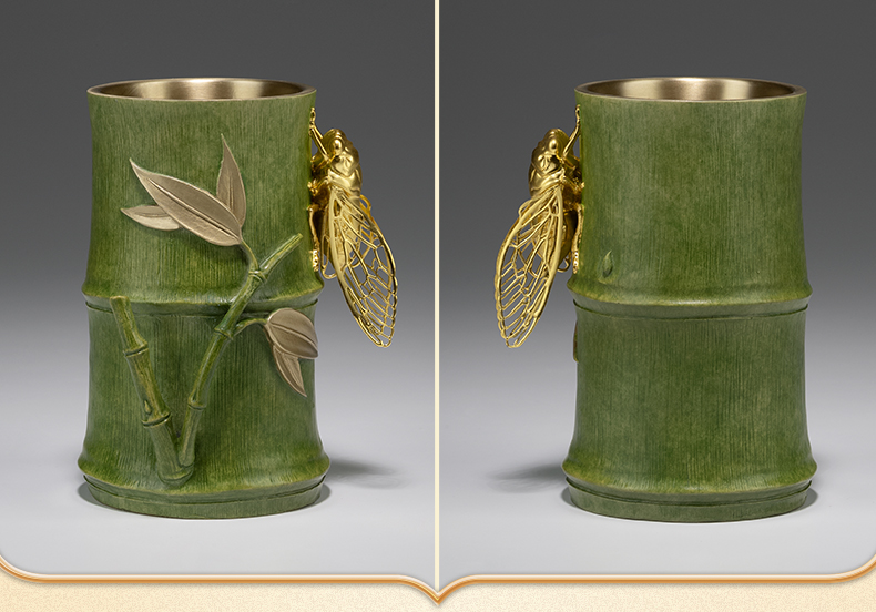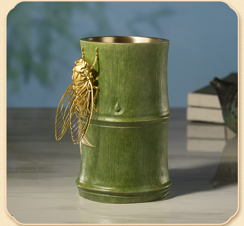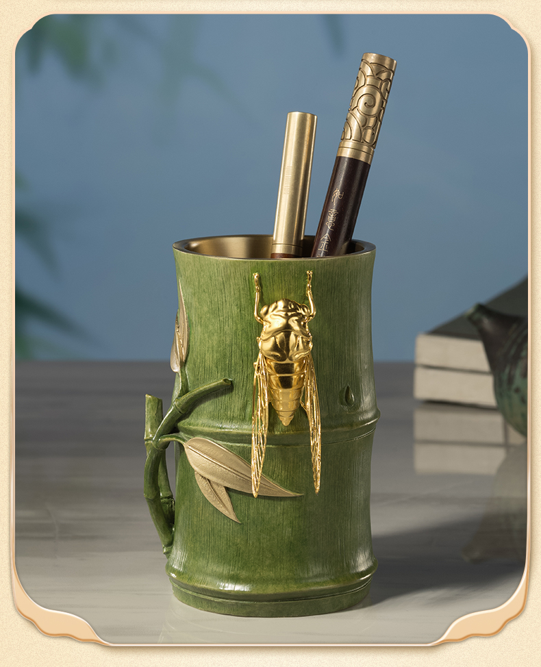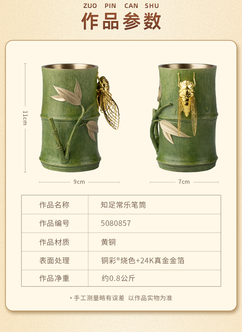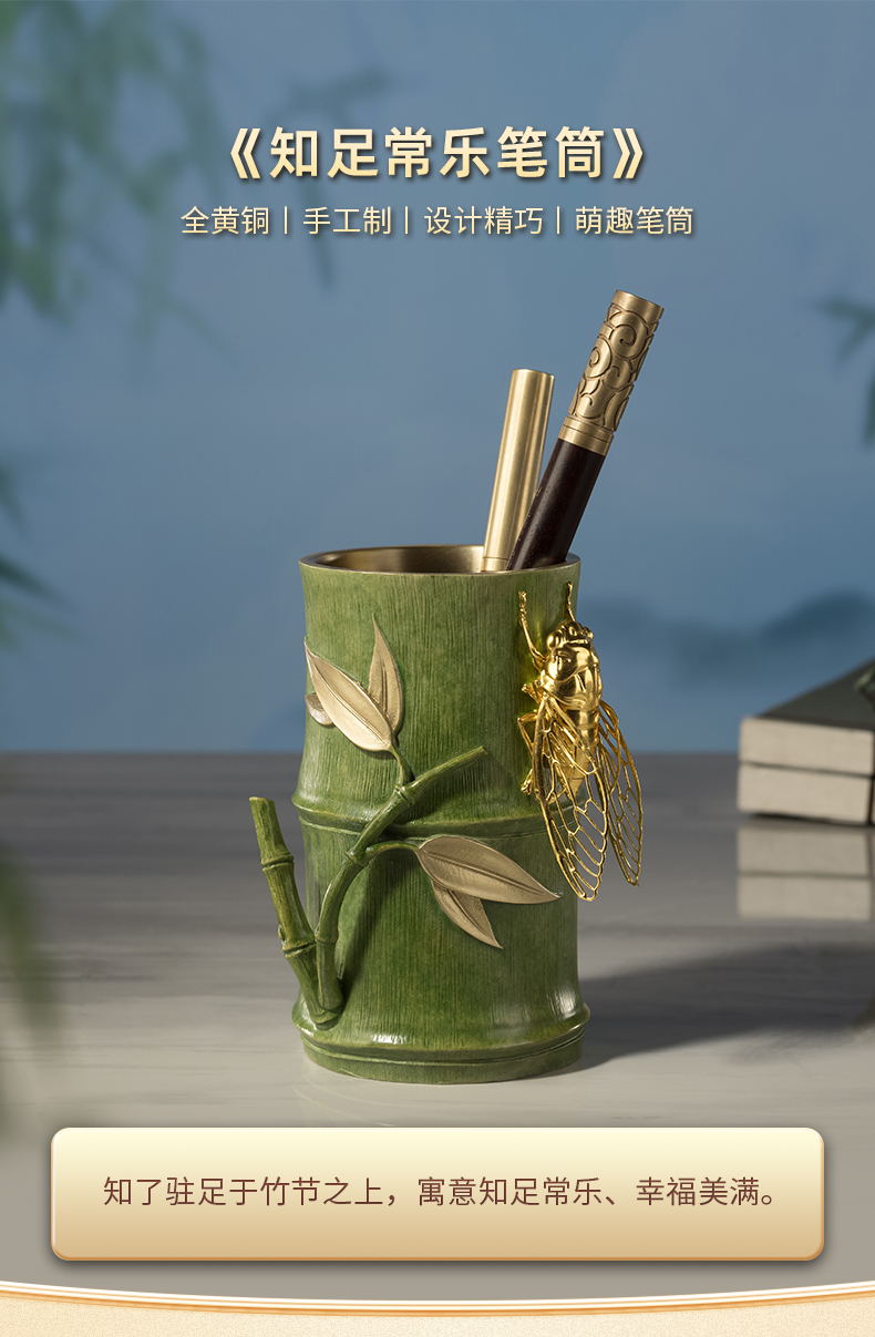 铜师傅 铜摆件《知足常乐笔筒》桌面客厅办公室书房实用礼品摆件