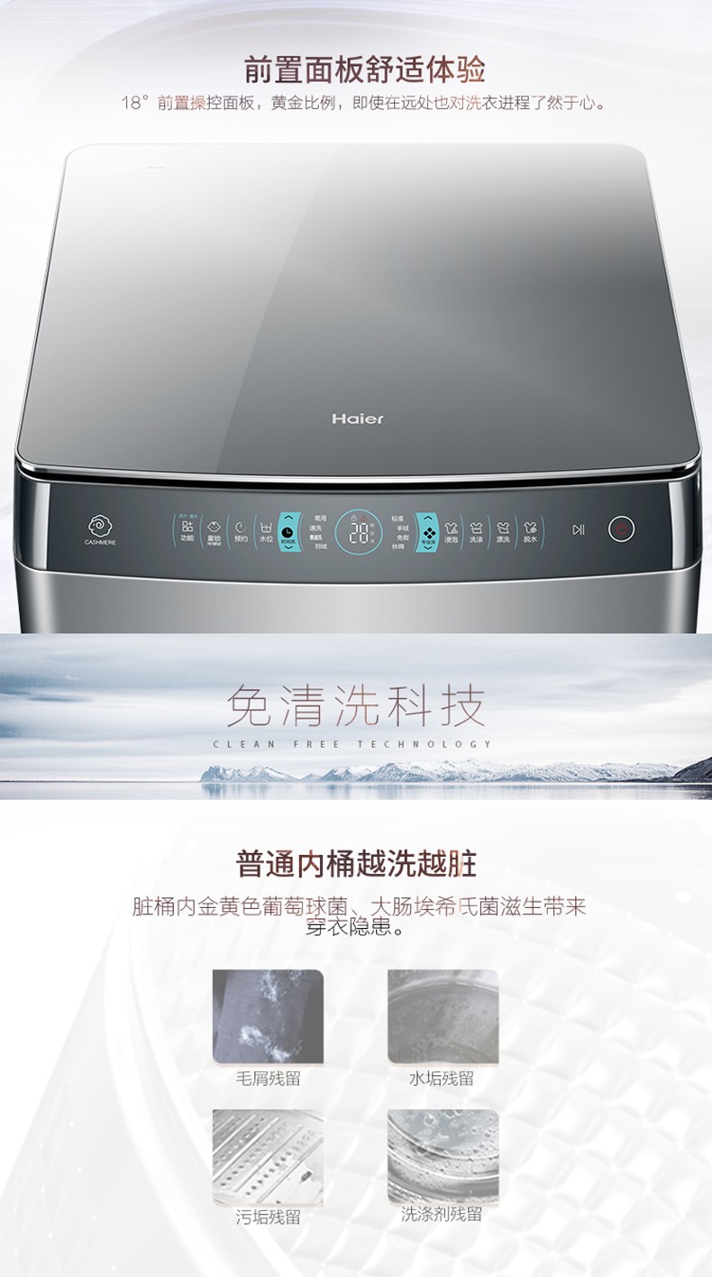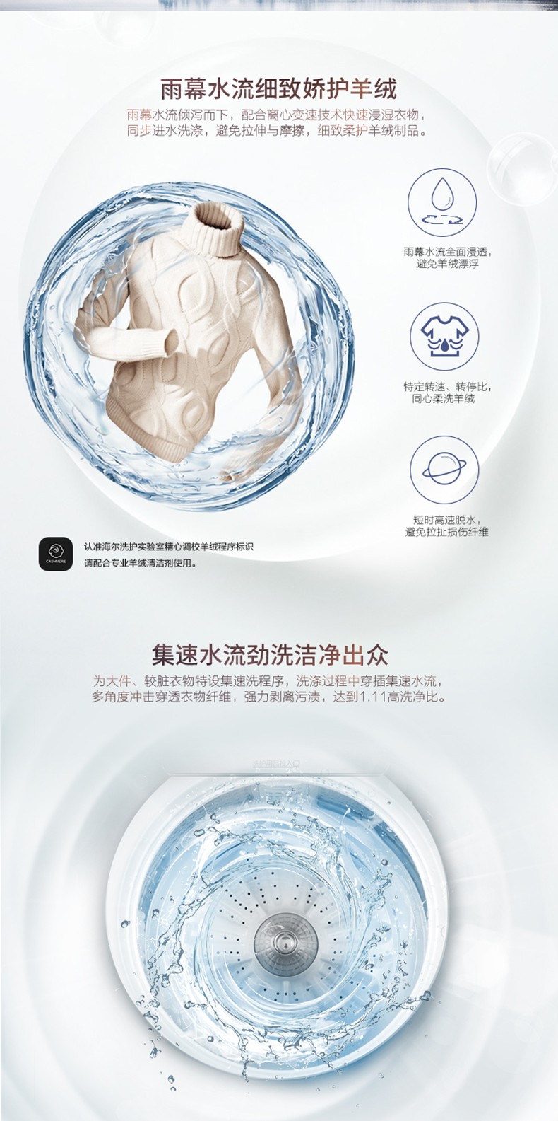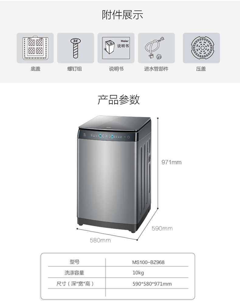 海尔10公斤全自动洗衣机智慧免清洗直驱变频双动力羊绒柔洗节能防缠绕 新款10公斤银色免清洗MS100-BZ968