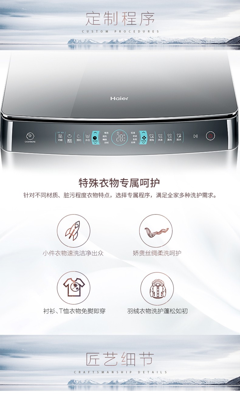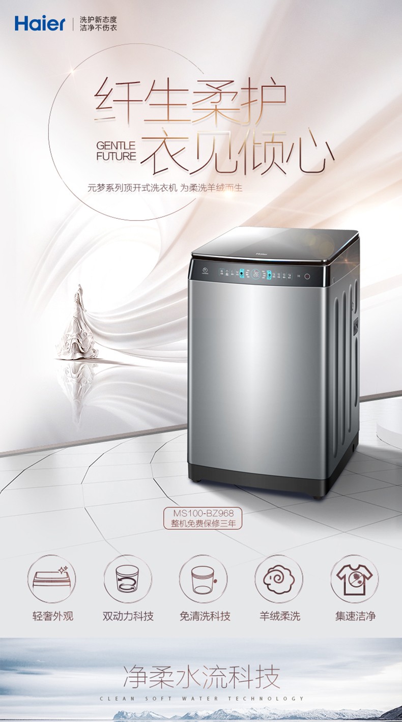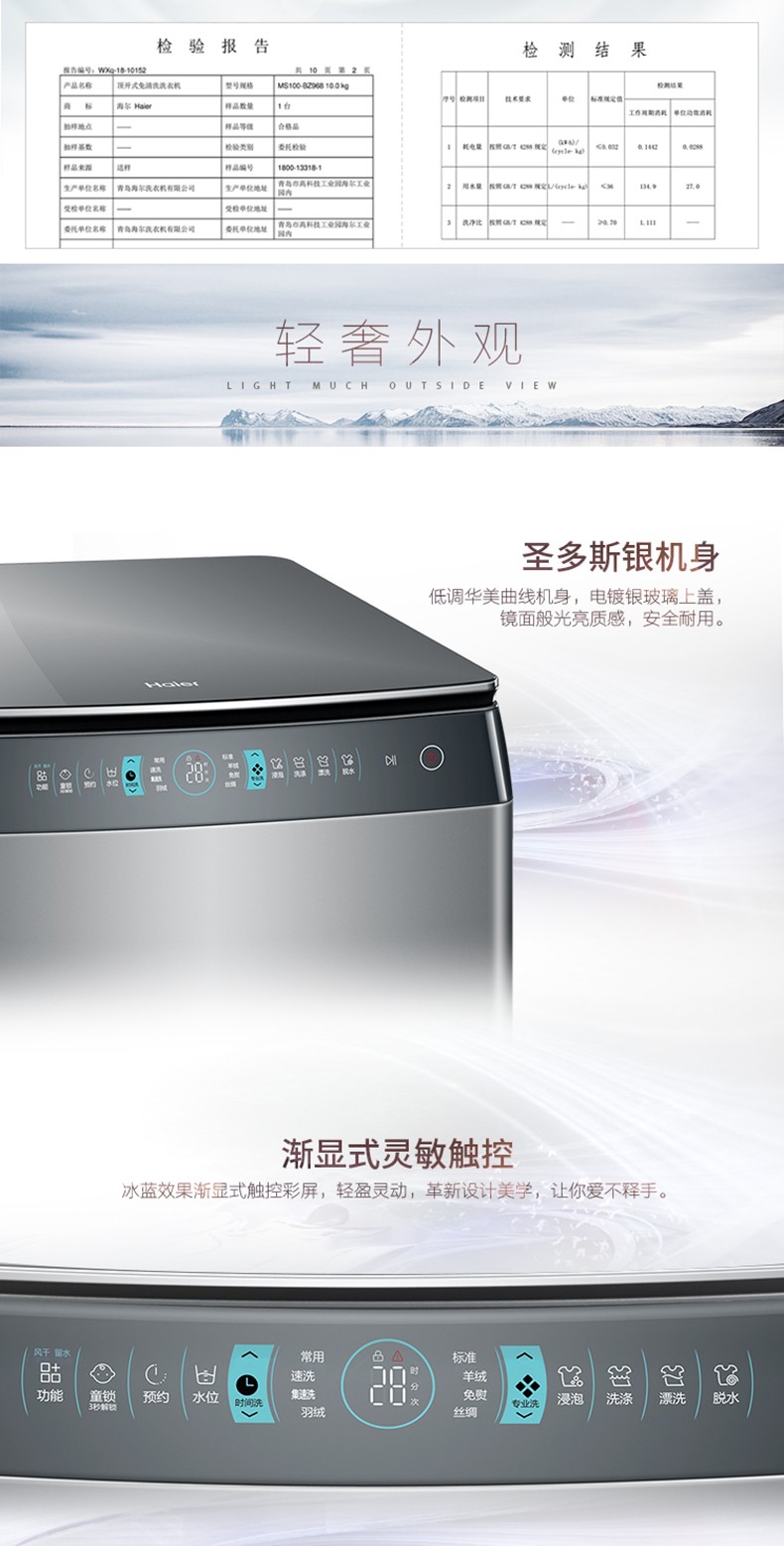 海尔10公斤全自动洗衣机智慧免清洗直驱变频双动力羊绒柔洗节能防缠绕 新款10公斤银色免清洗MS100-BZ968