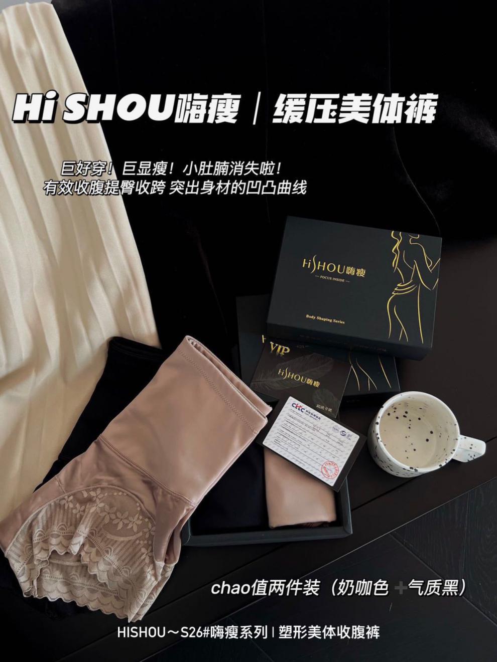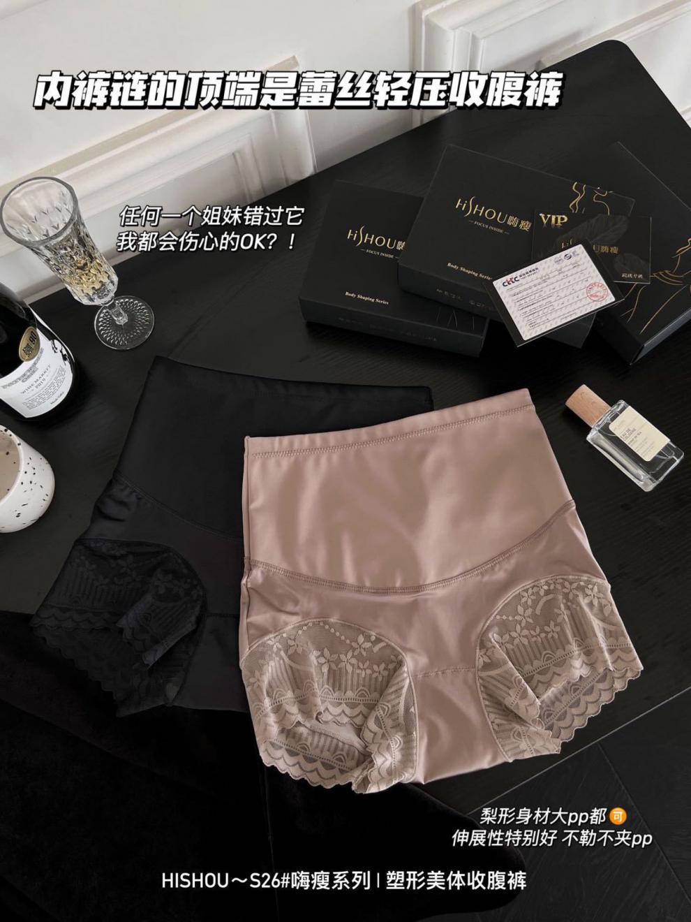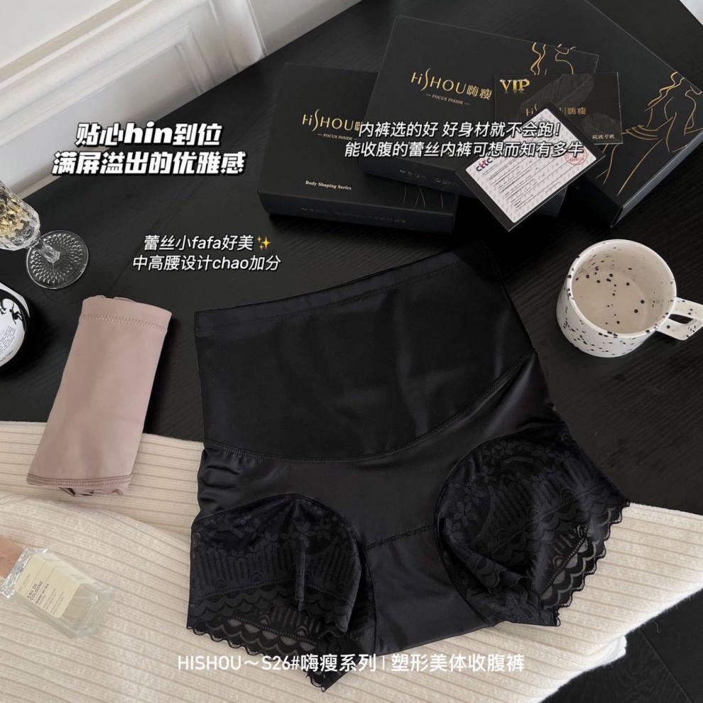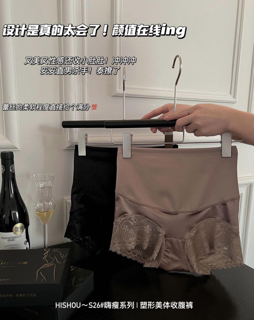 嗨瘦S26塑形美体收腹裤女士内裤中高腰柔软亲肤缎面少女内裤2条装