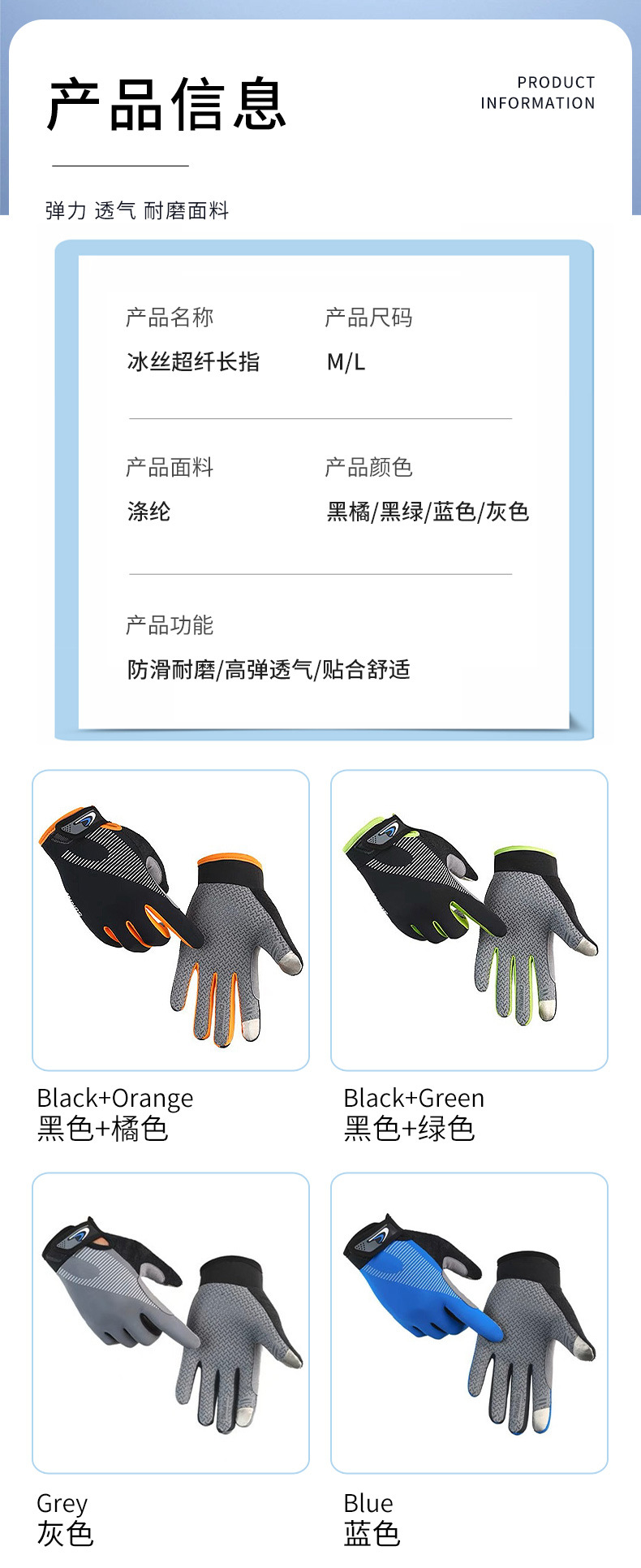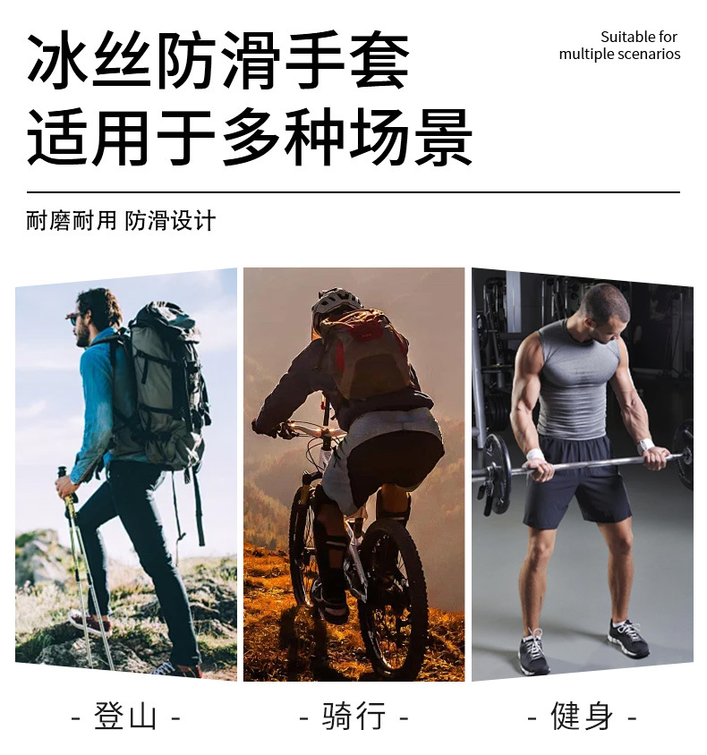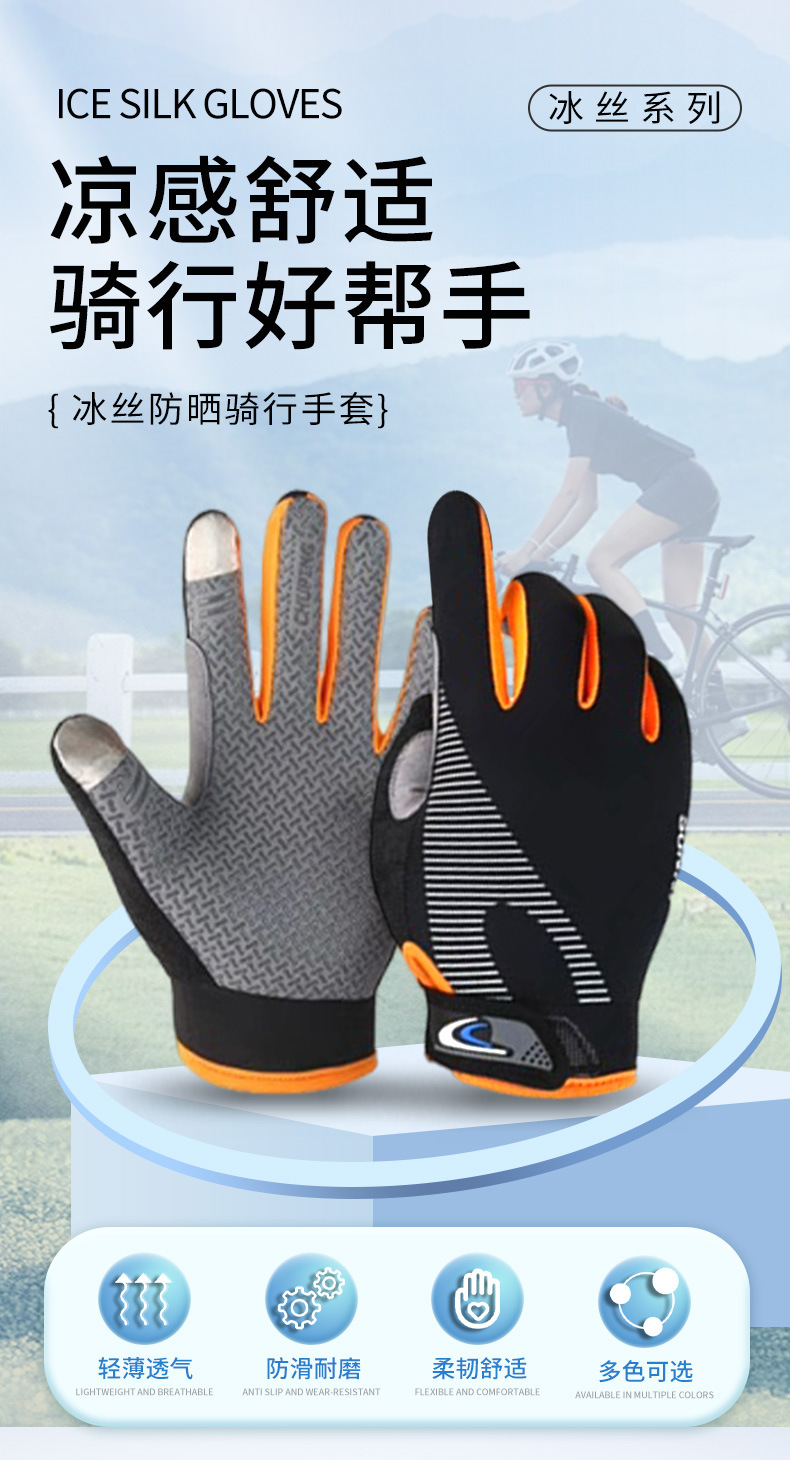 冰丝系列【防晒冰丝防滑 户外运动手套】新款长指手套薄款 长指钓鱼登山健身男女户外运动冰丝手套 防晒骑行手套