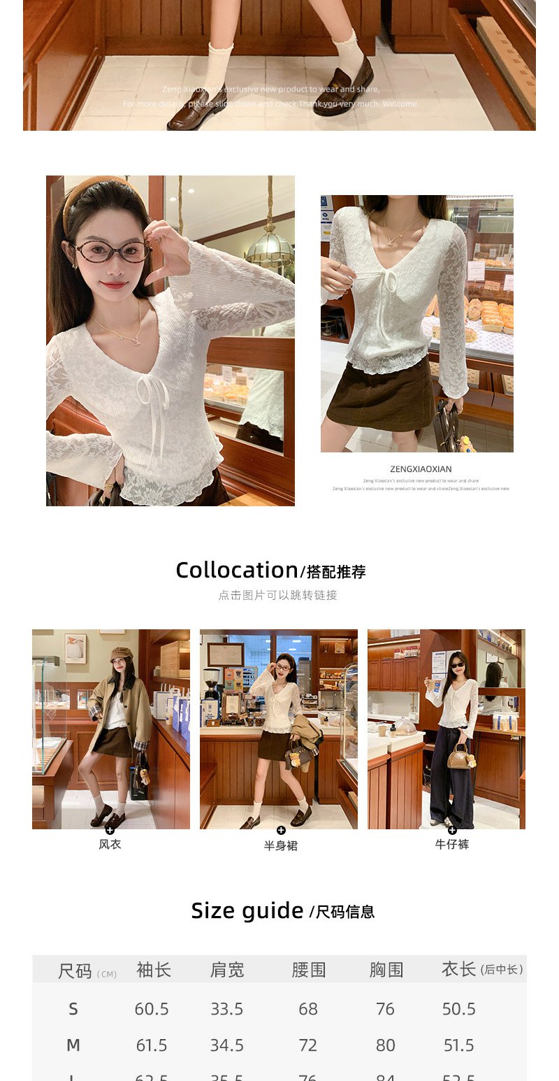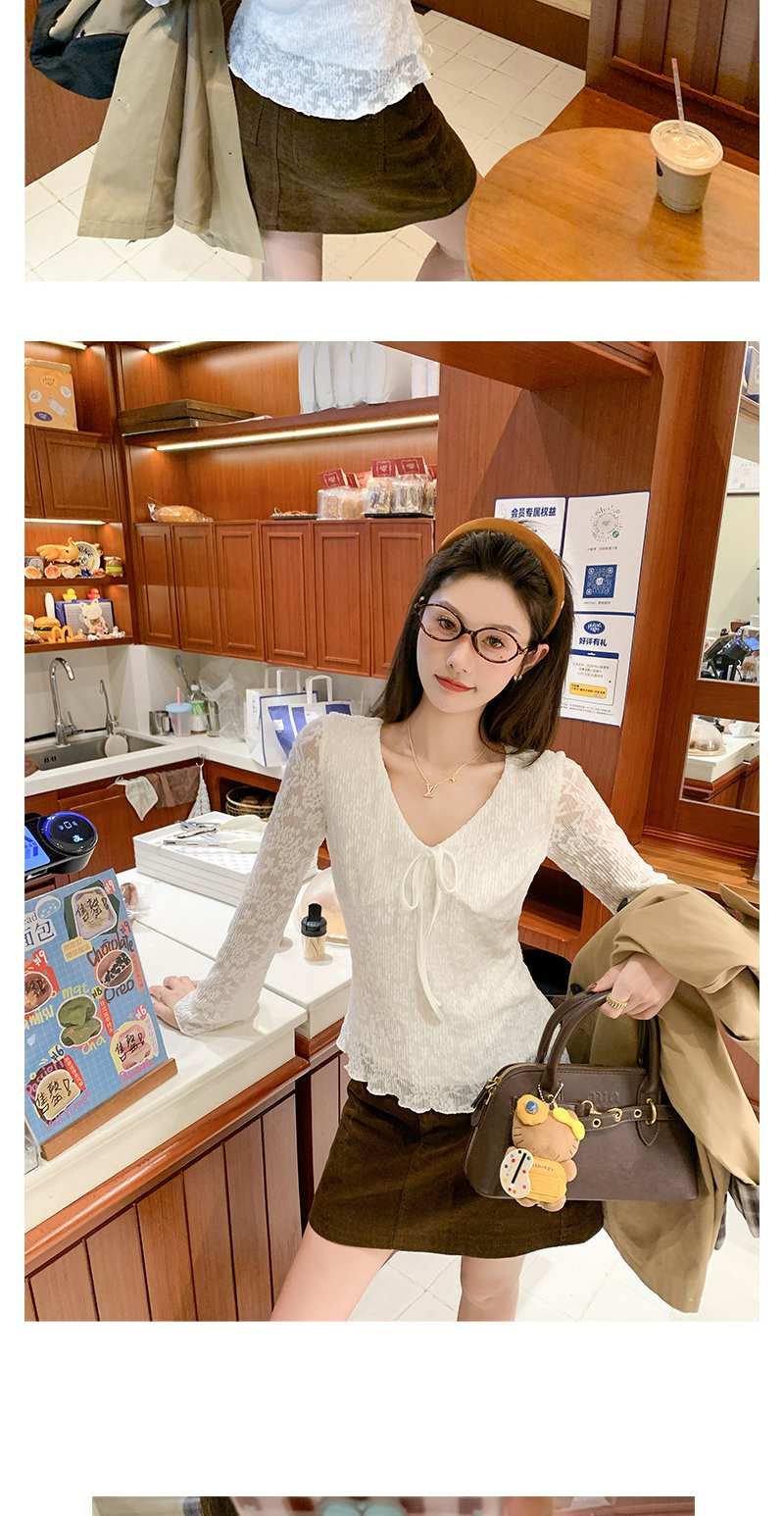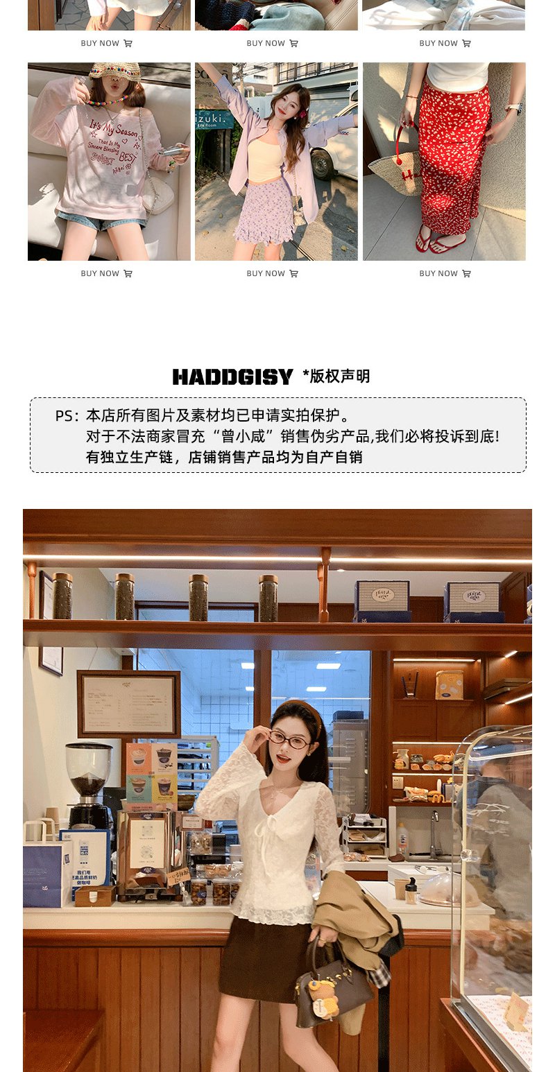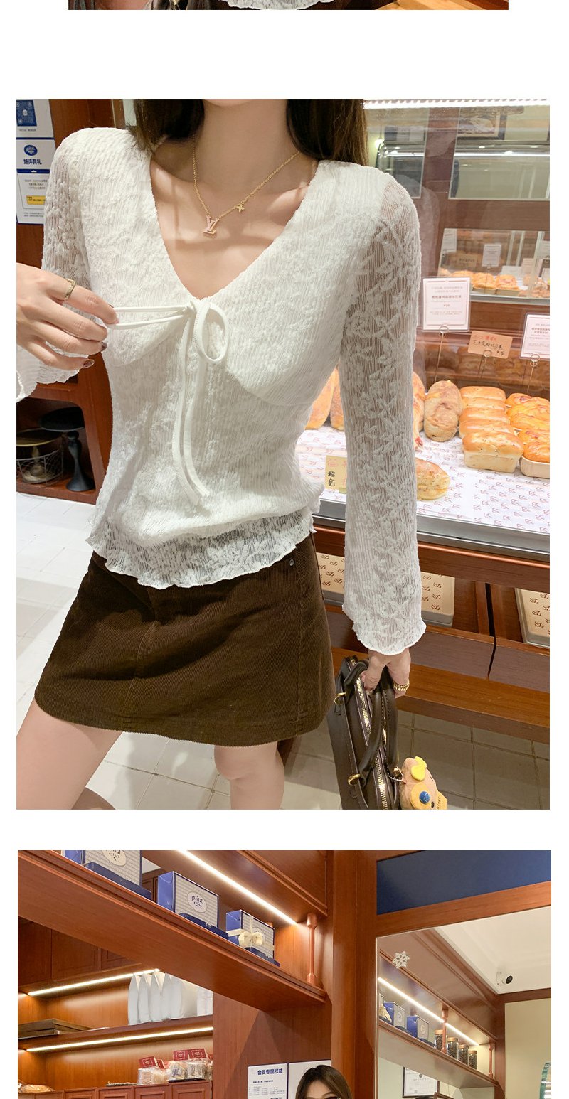 【110元任选2件】现货! 韩系v领蕾丝t恤