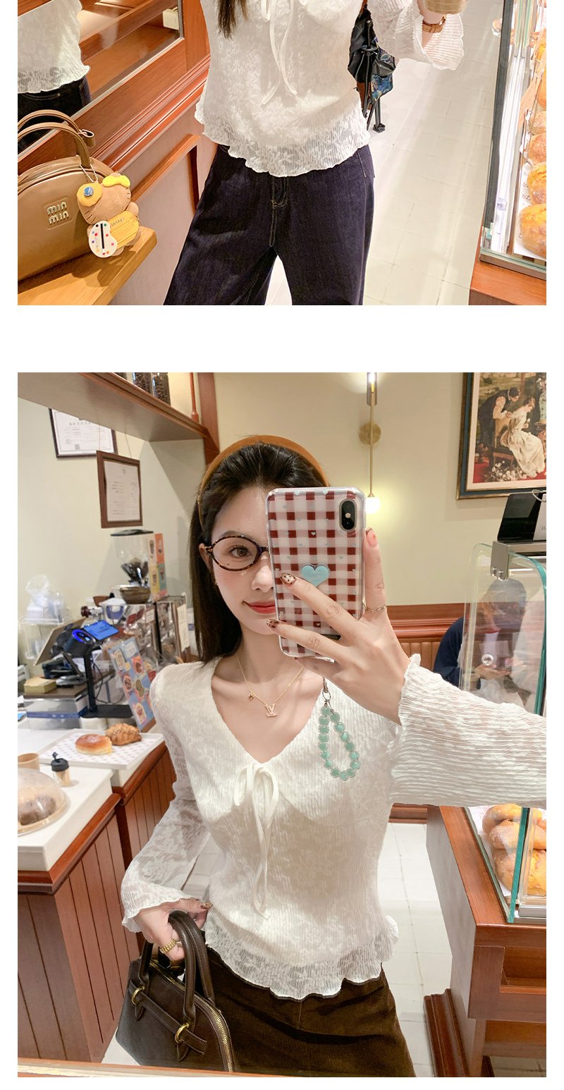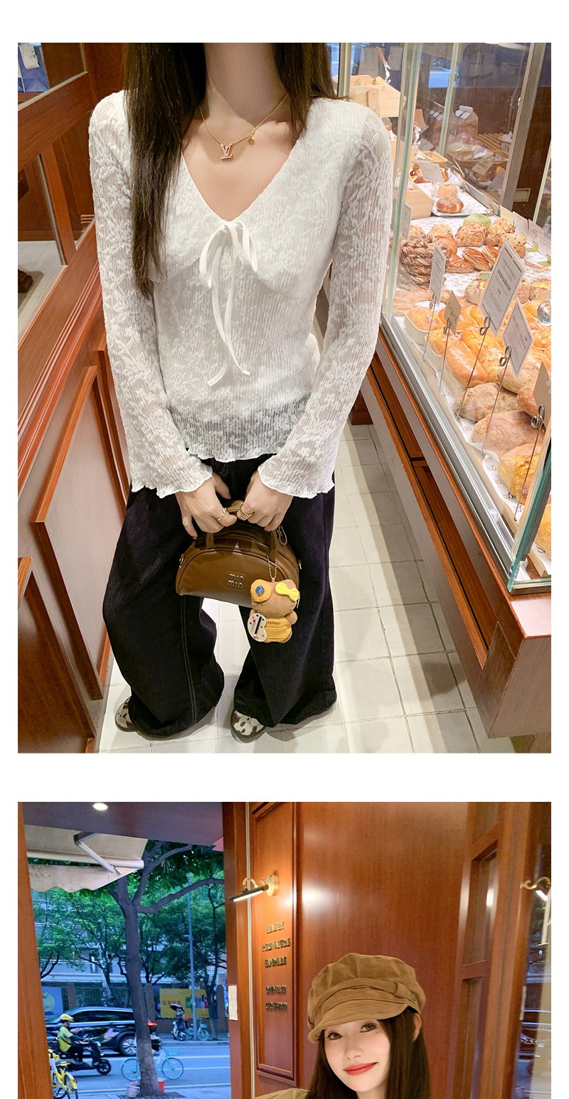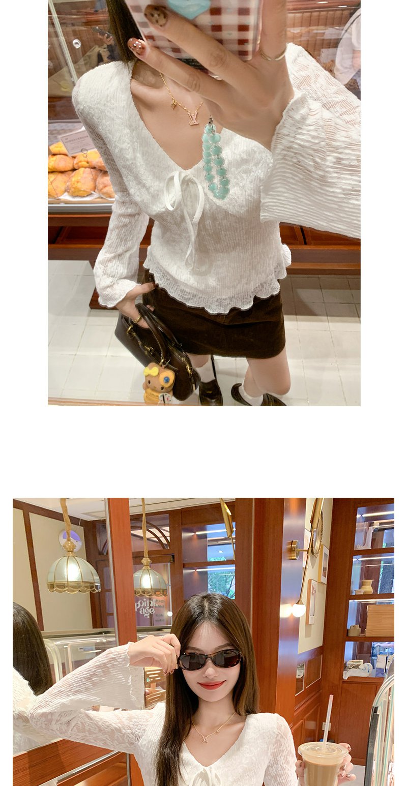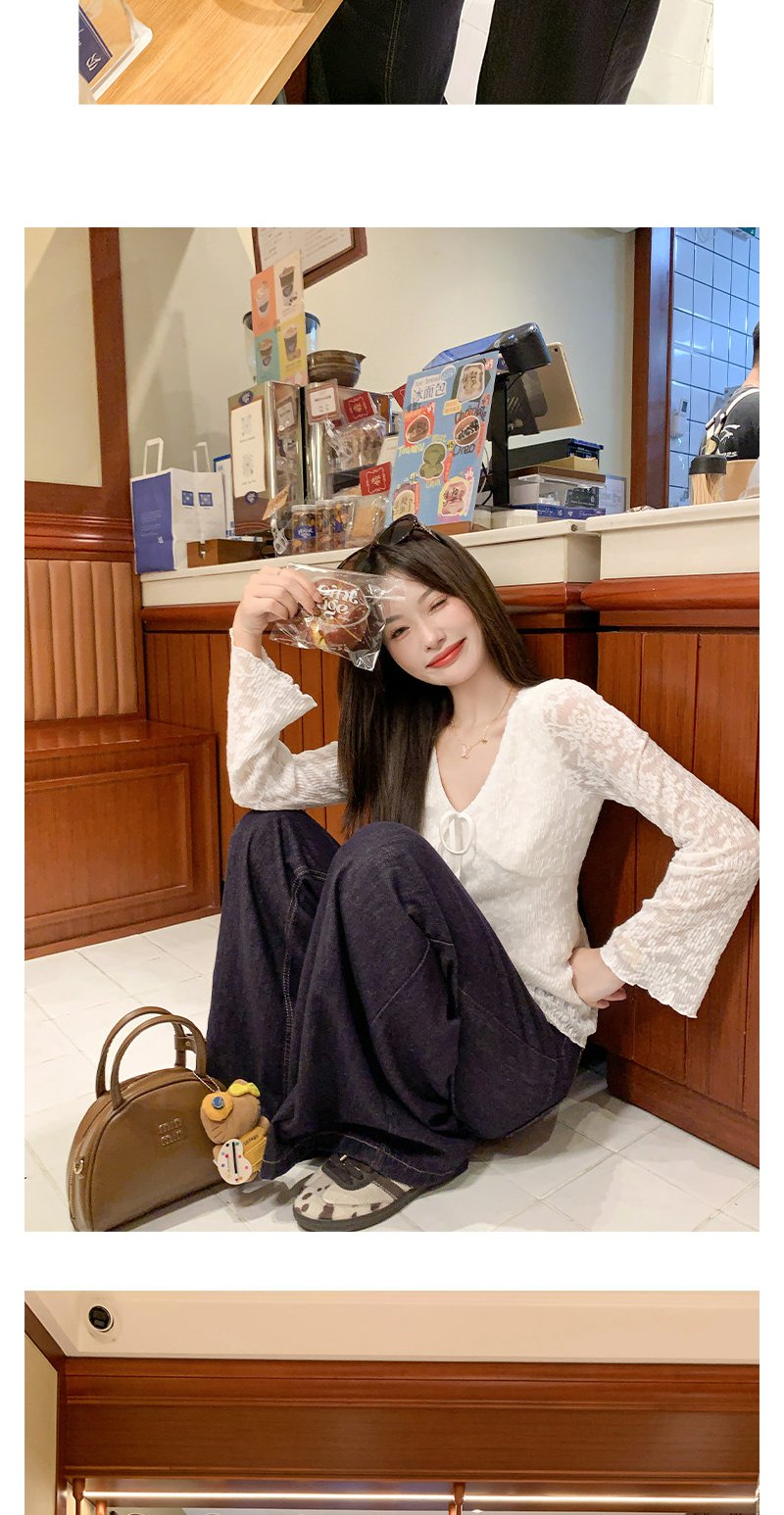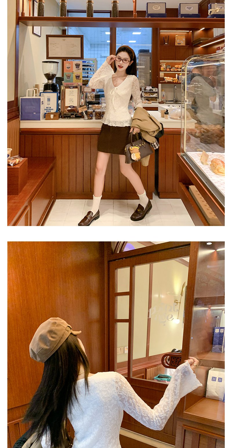 【110元任选2件】现货! 韩系v领蕾丝t恤