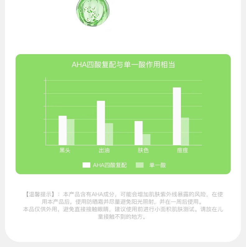 主打3%苹果酸溶解堵塞油脂+0.3%乳糖酸平衡肌肤水循环+0.2%乙醇酸收紧粗大毛孔+0.1%柠檬酸温和代谢角质,比单一酸功效更全面。