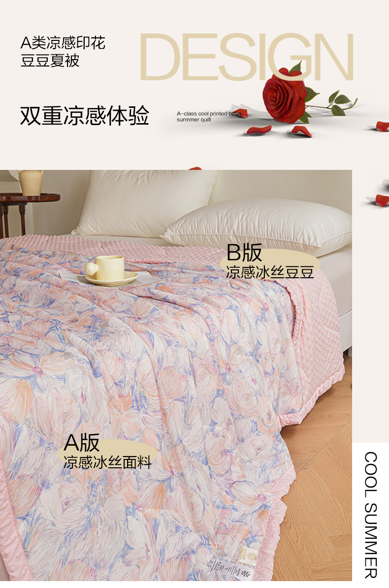 红豆凉感丝豆豆抚摸被--花觅