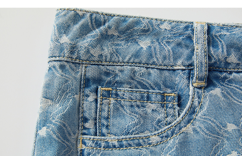 谜底牛仔裤短裤女2024夏季新品复古百搭老花牛仔直筒裤242MK0591