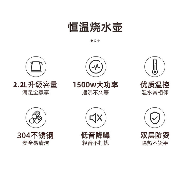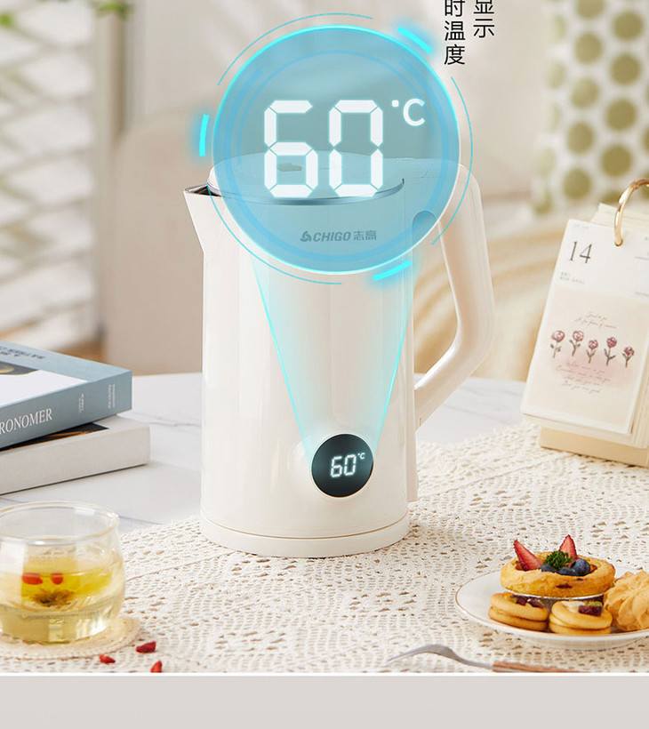 「数字显温!智能保温」志高电热水壶2.2L温度显示智能保温双层防烫烧水壶生活厨房电器