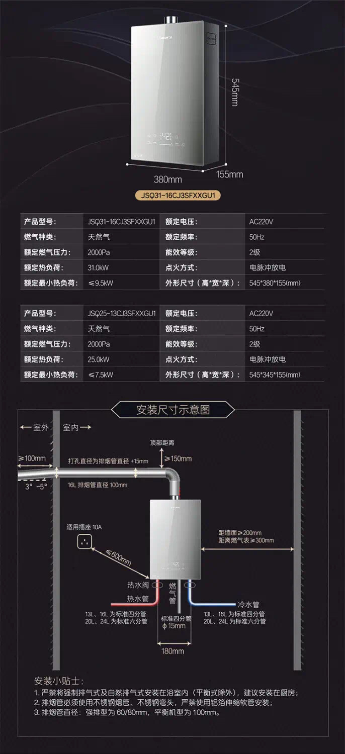卡萨帝燃气热水器(JSQ31-16CJ3SFXXGU1)
