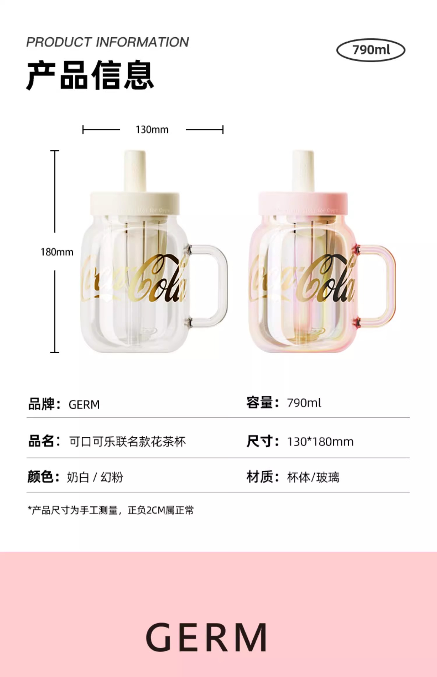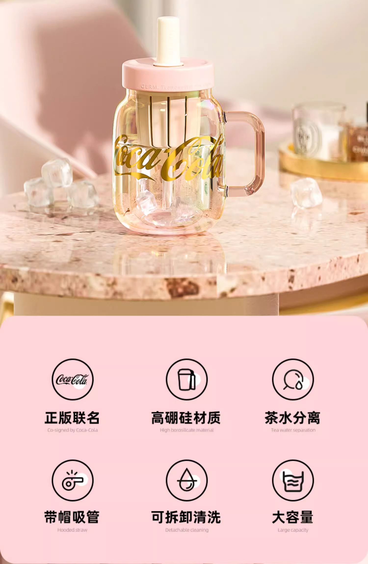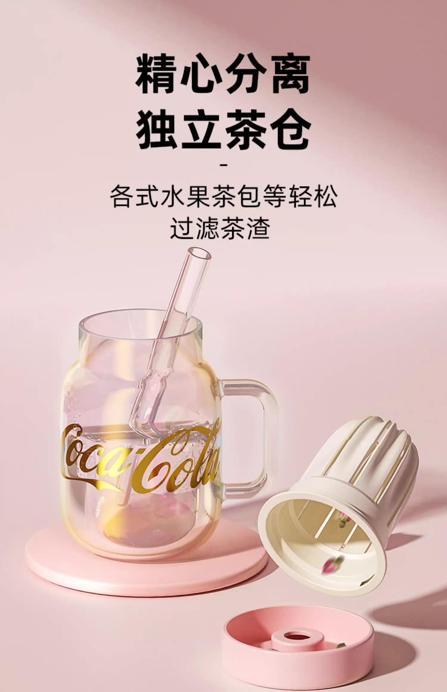 GERM可口可乐玻璃杯女生高颜值奶茶花茶吸管杯茶水分离泡茶水杯子