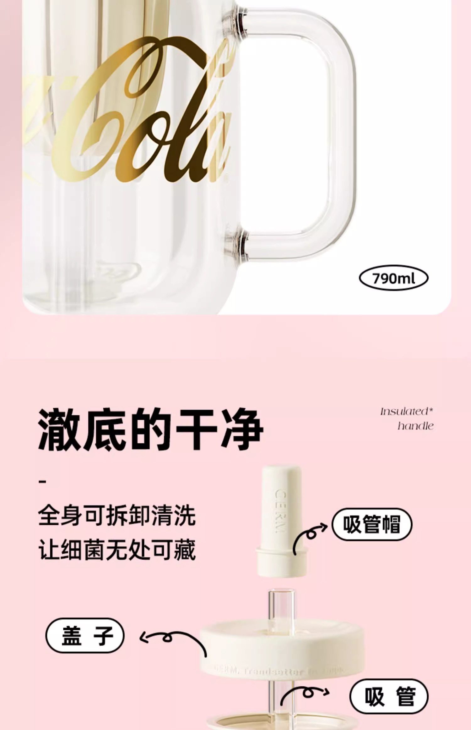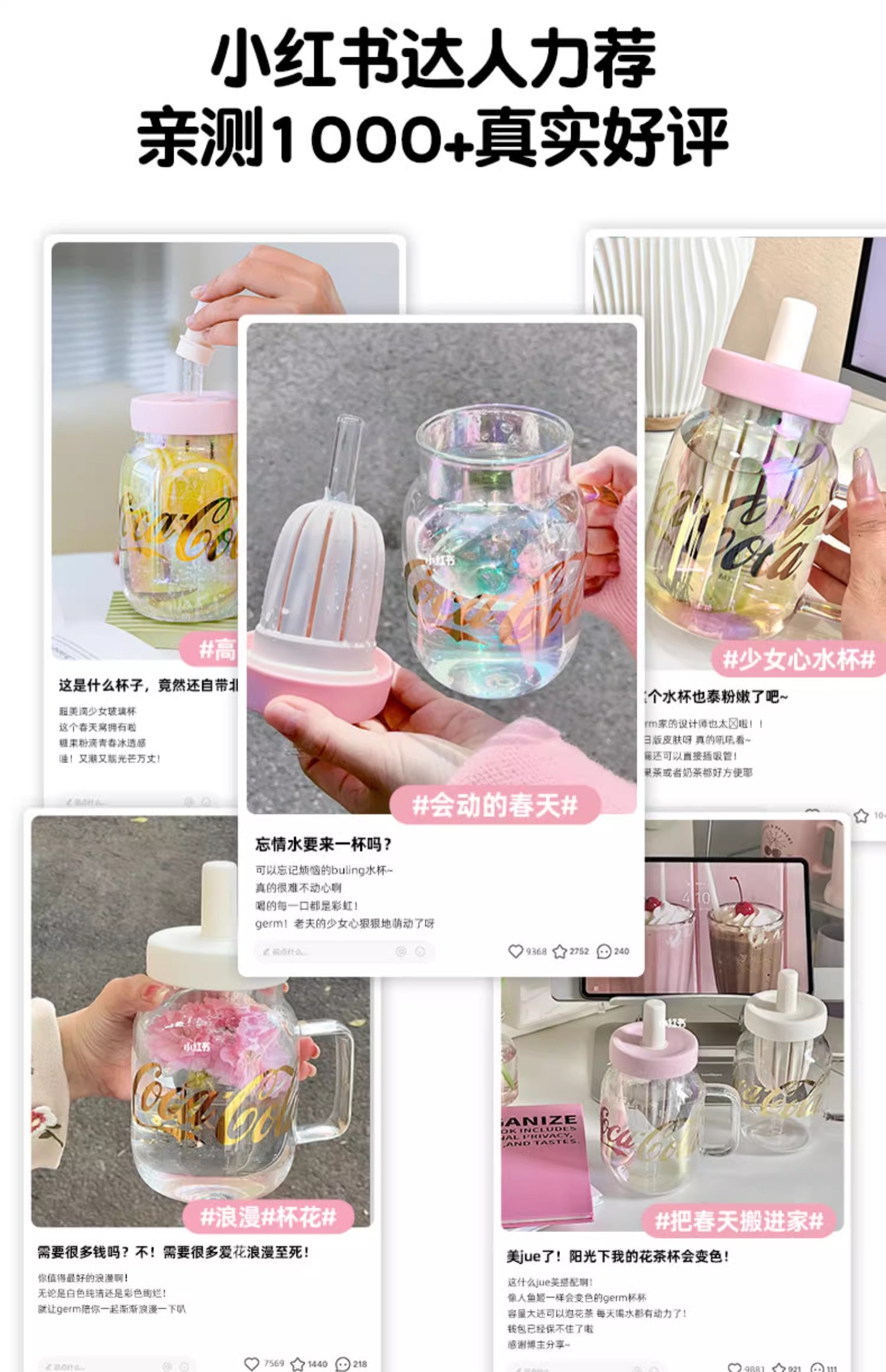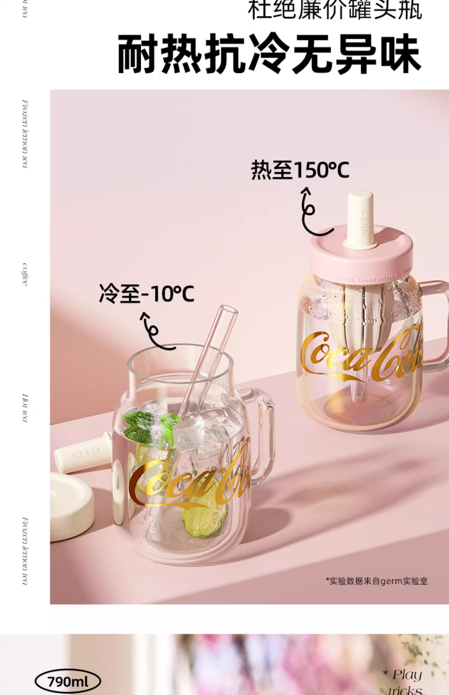 GERM可口可乐玻璃杯女生高颜值奶茶花茶吸管杯茶水分离泡茶水杯子