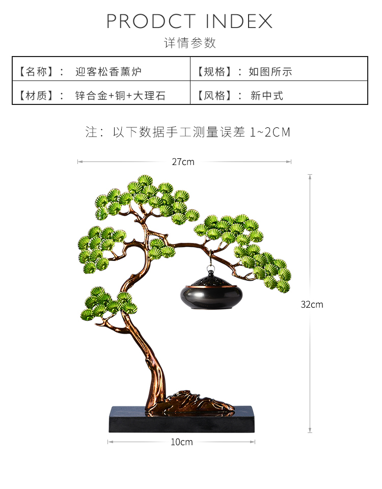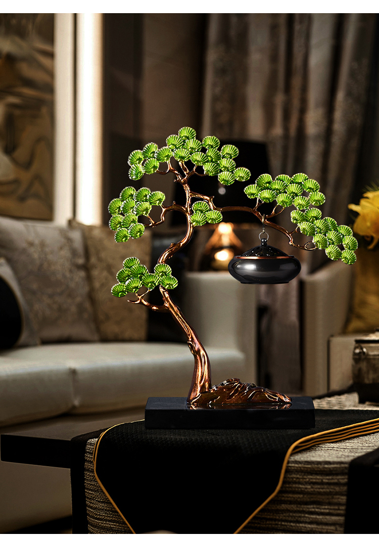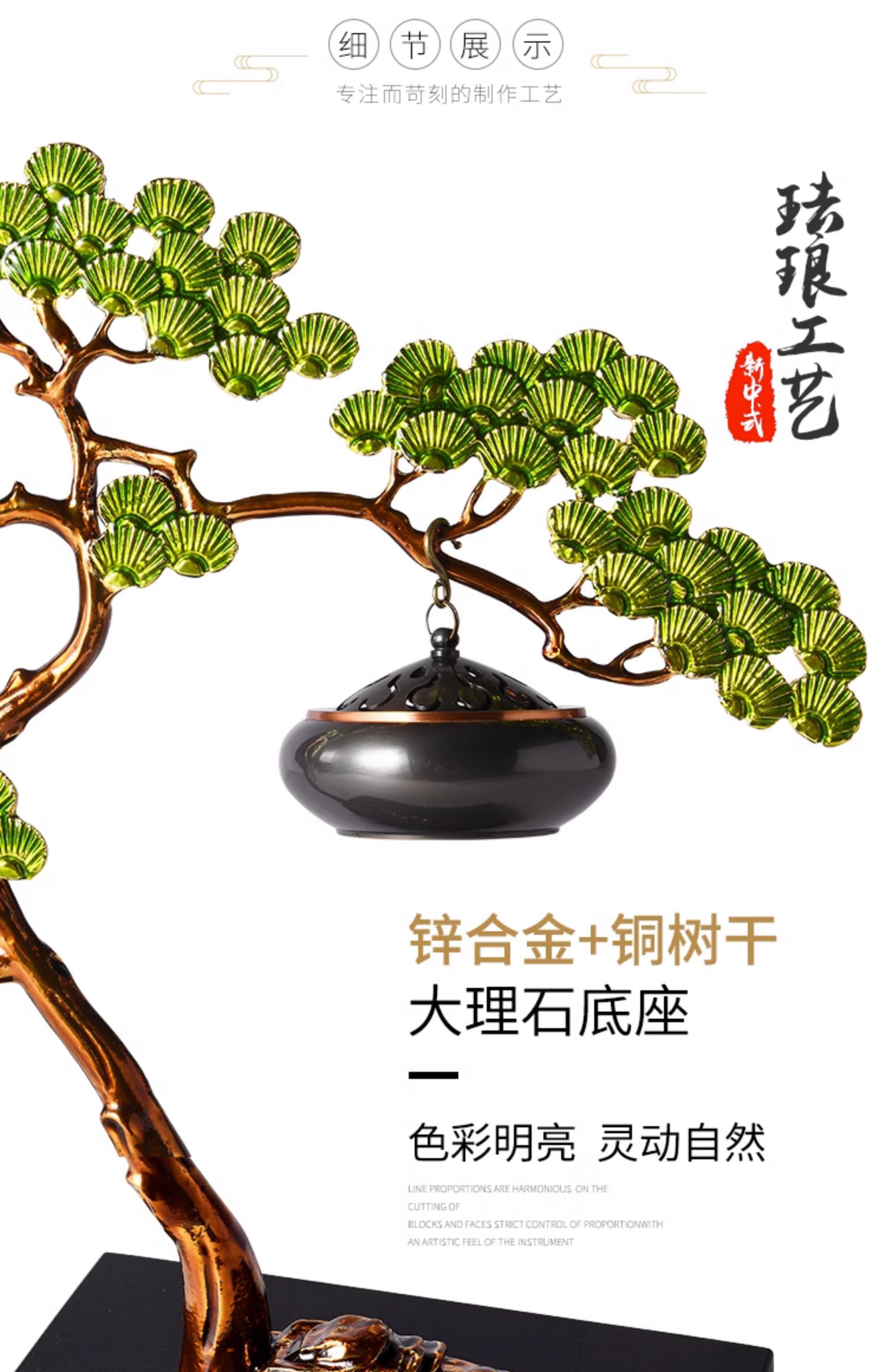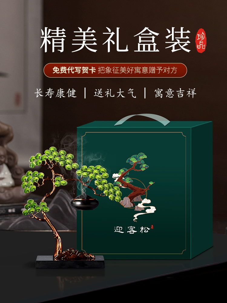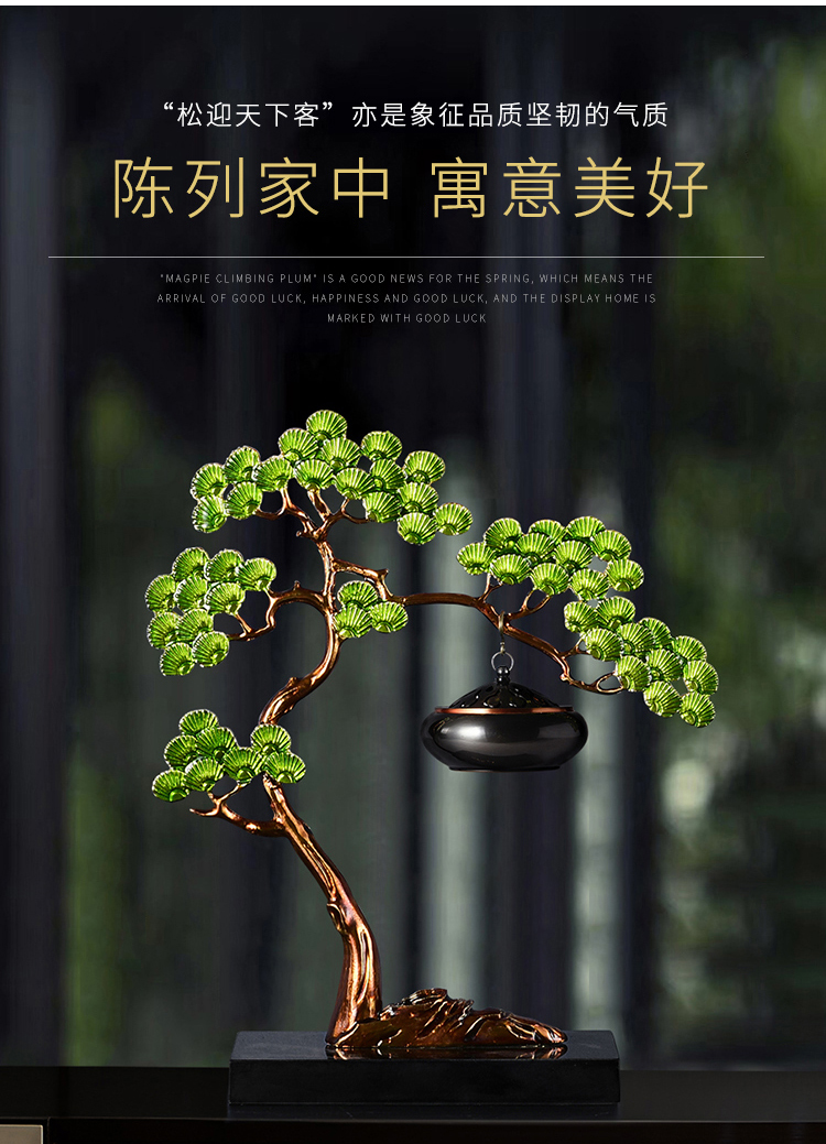 E-RX-RD5207迎客松香炉 (珐琅+铜香炉+大理石底座)礼盒装