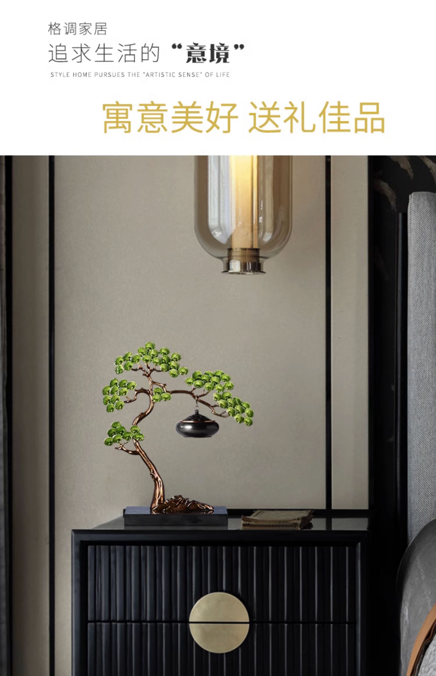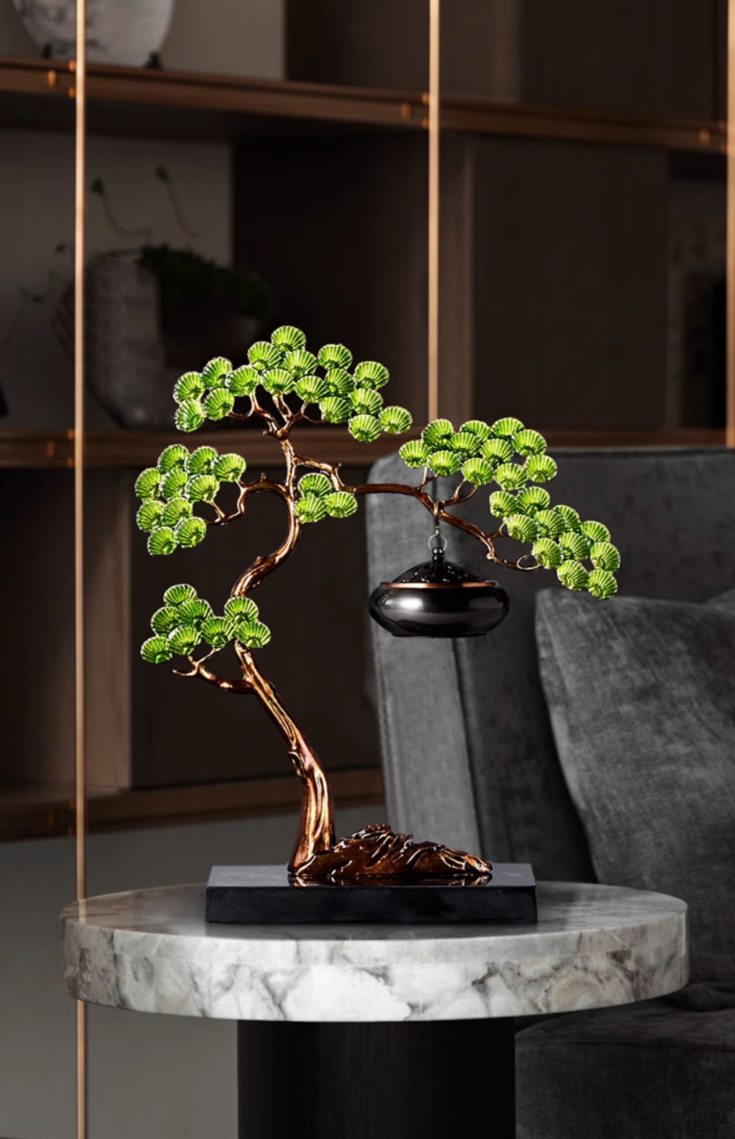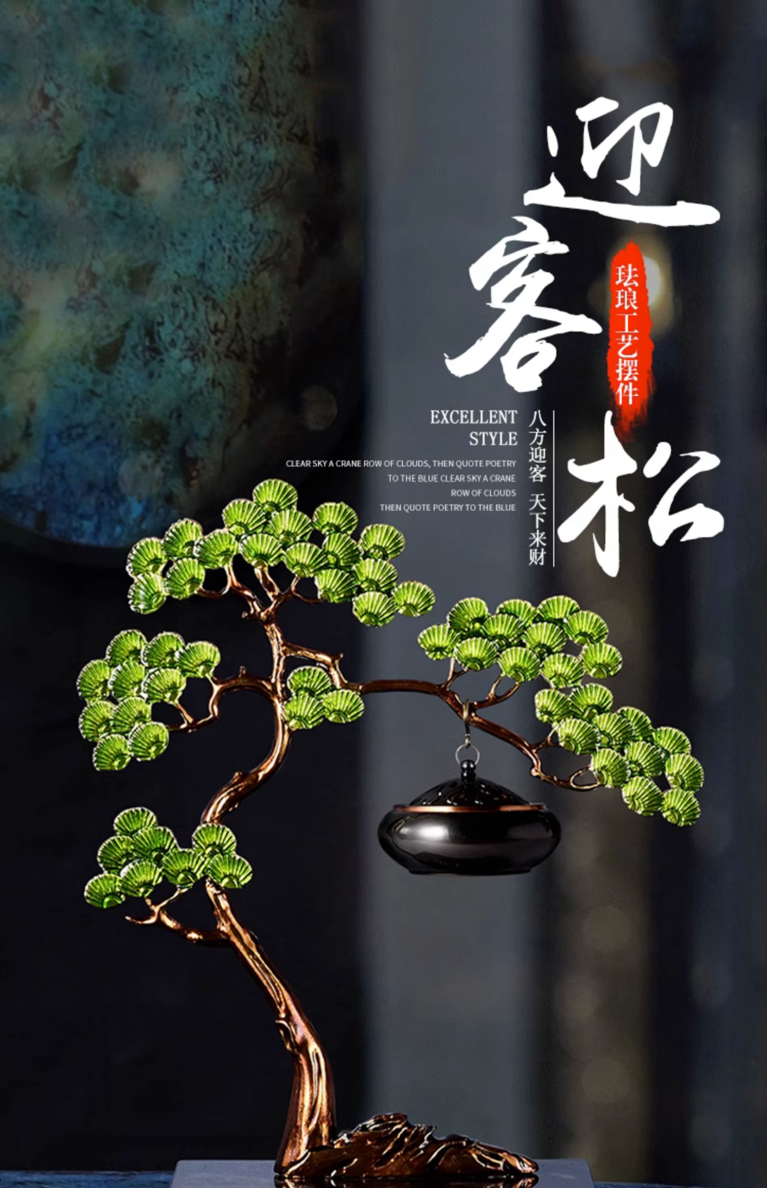 E-RX-RD5207迎客松香炉 (珐琅+铜香炉+大理石底座)礼盒装