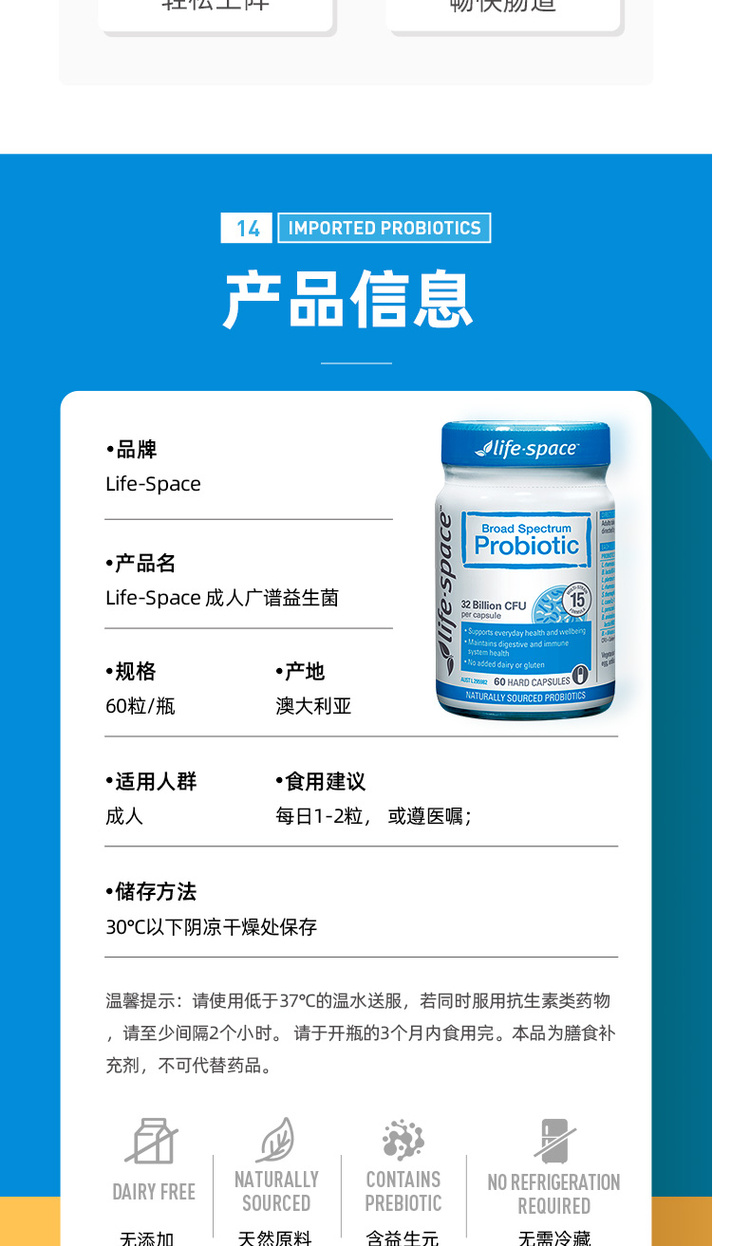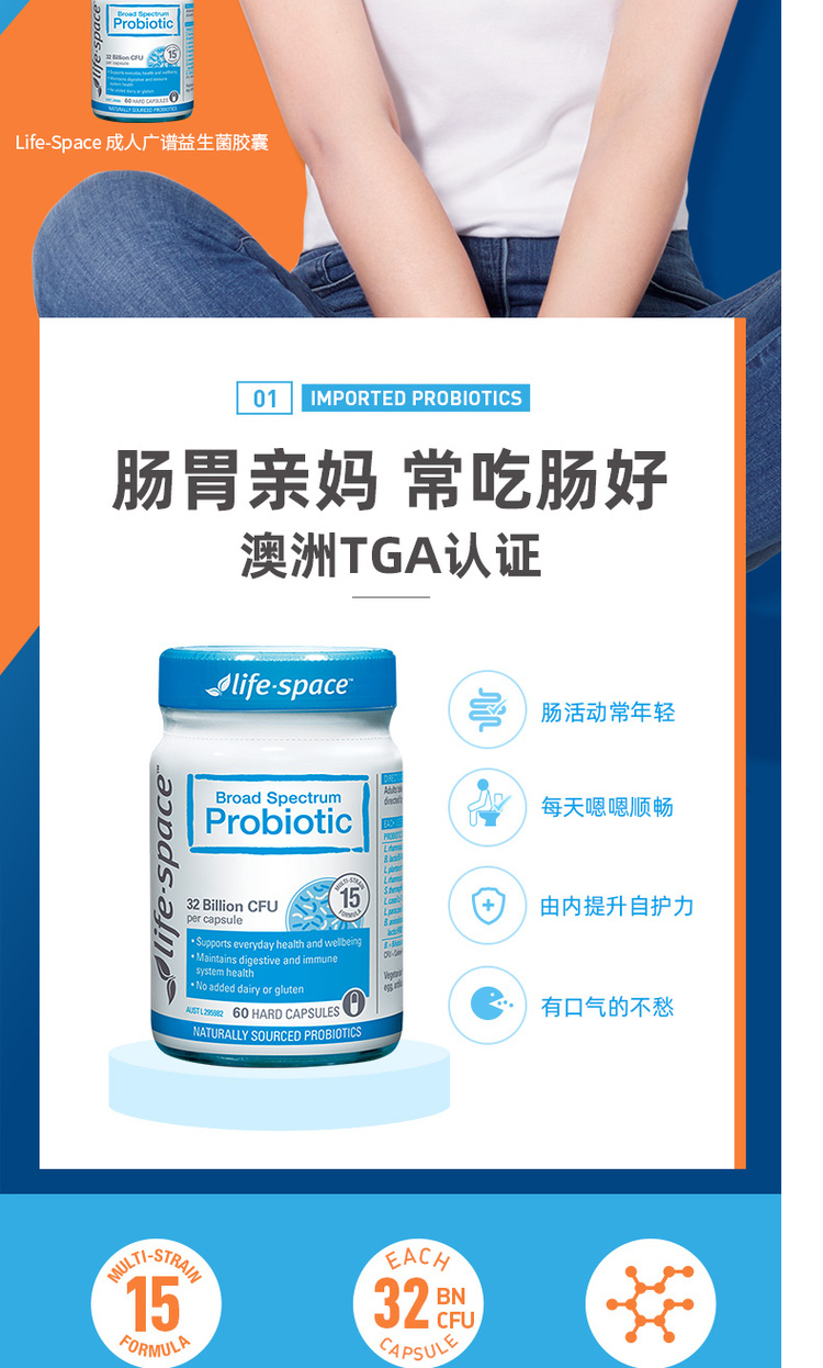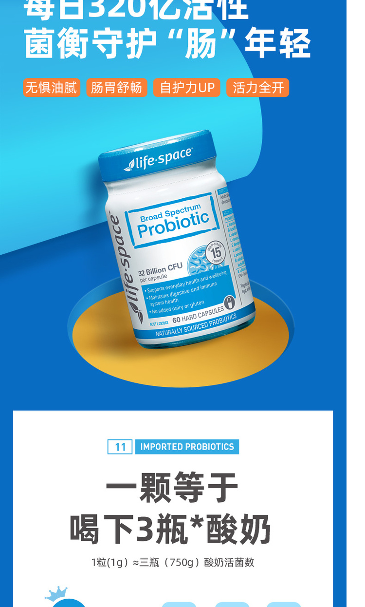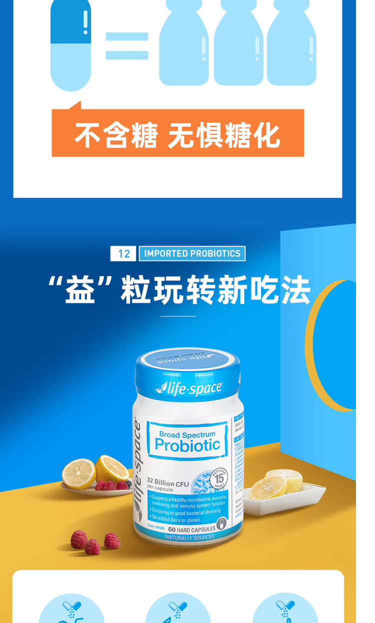 【保质期到27年9月】lifespace成人益生菌肠道食品健康 60粒【不足200元订单,默认顺丰快递到付】