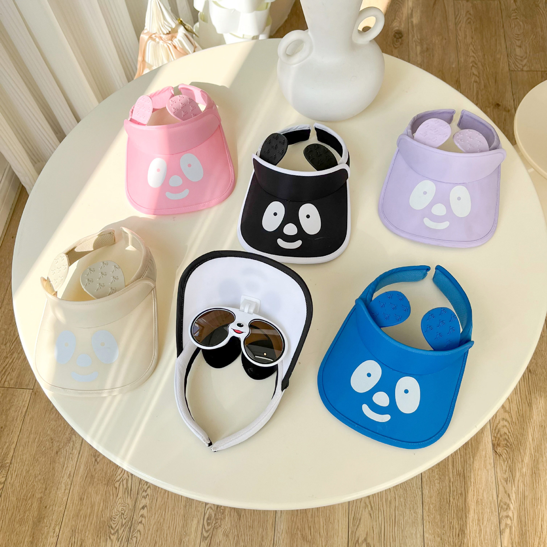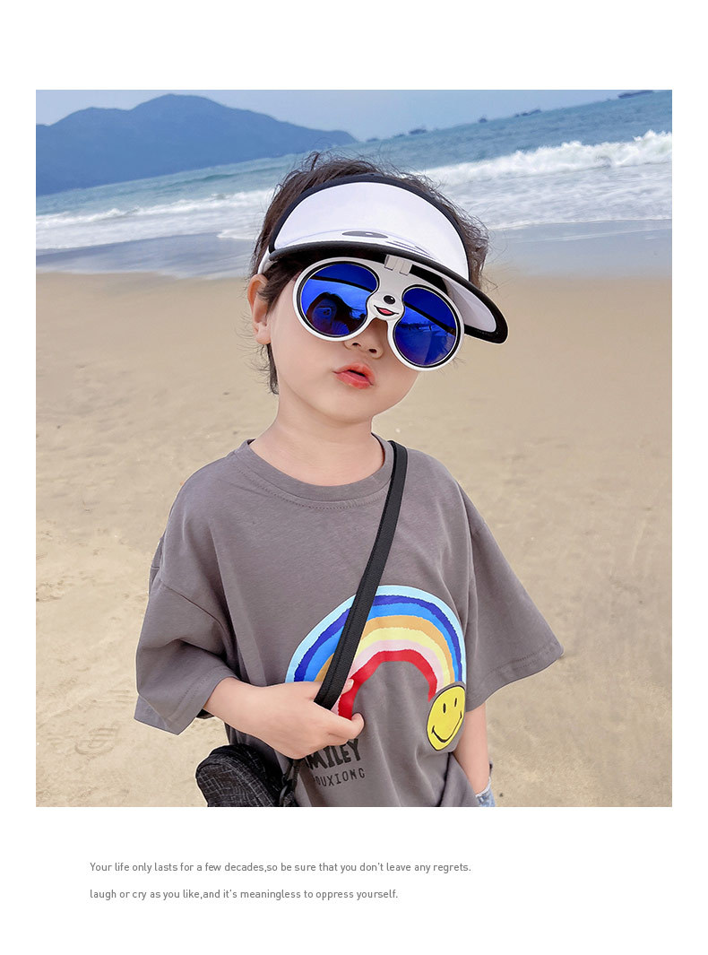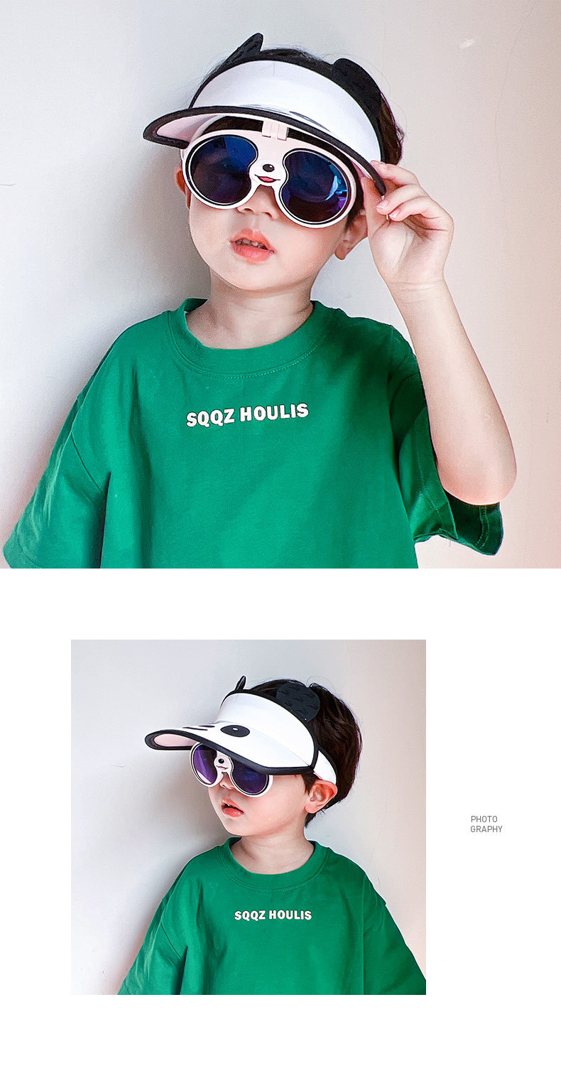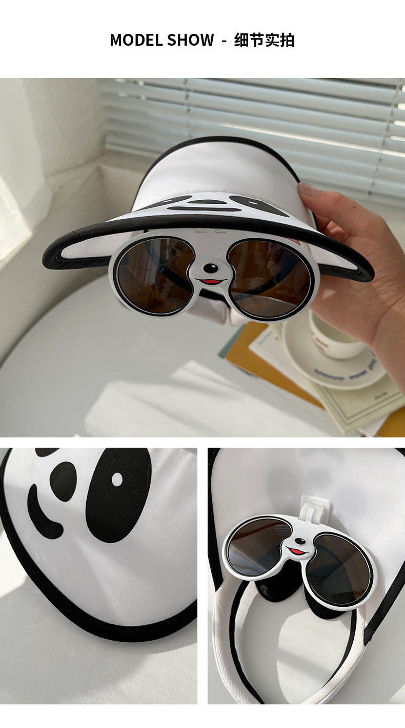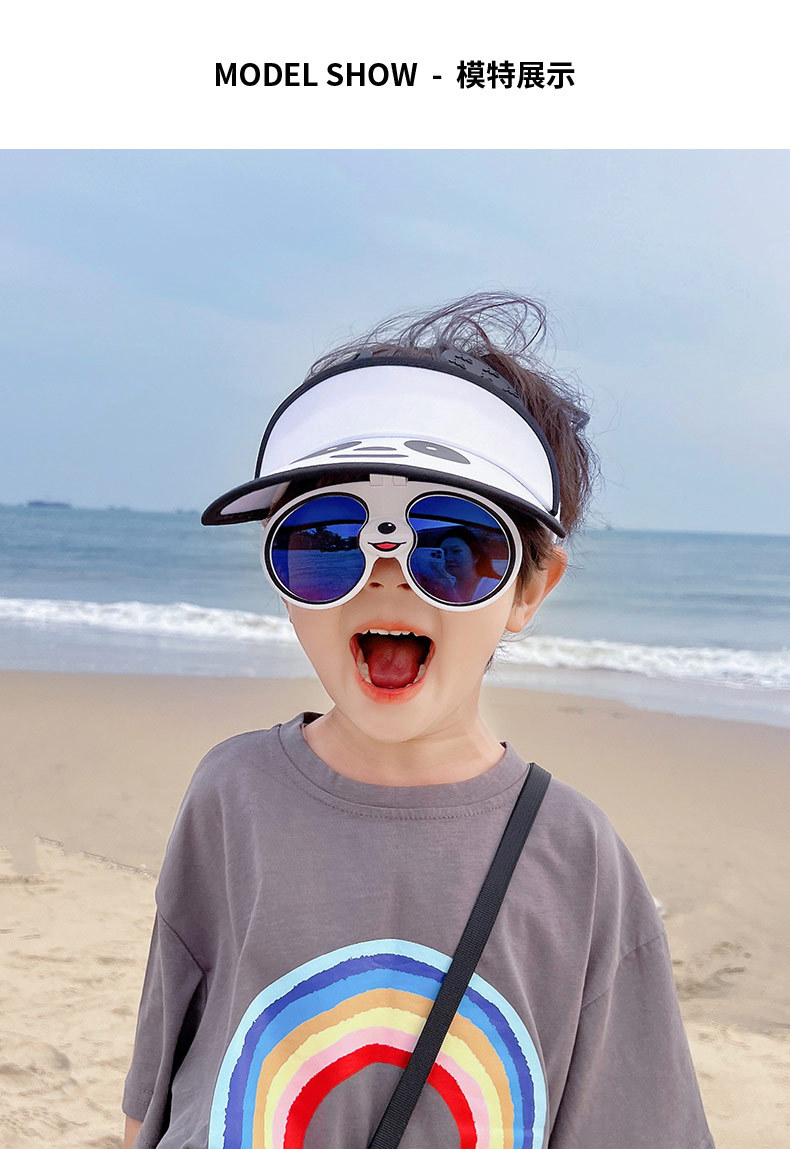 「七色可选!熊猫眼镜款」卡通儿童帽子夏季大帽檐空顶帽 宝宝墨镜防晒遮阳帽宝宝鸭舌帽配饰