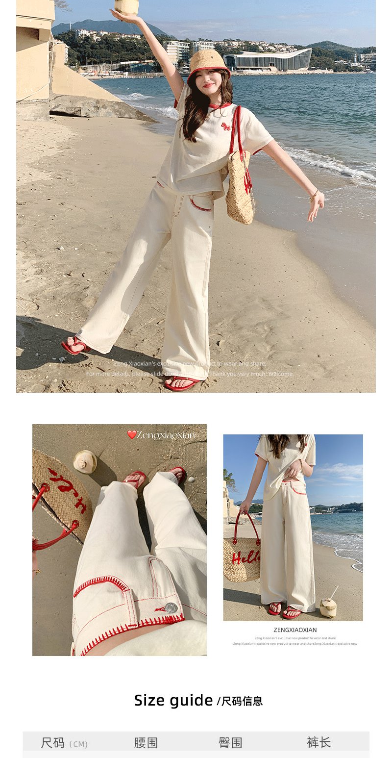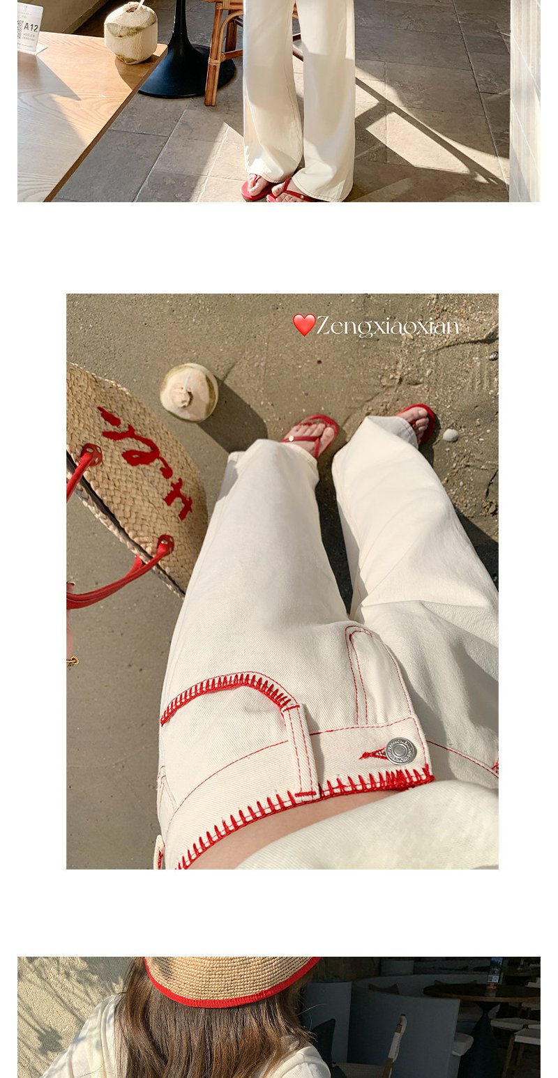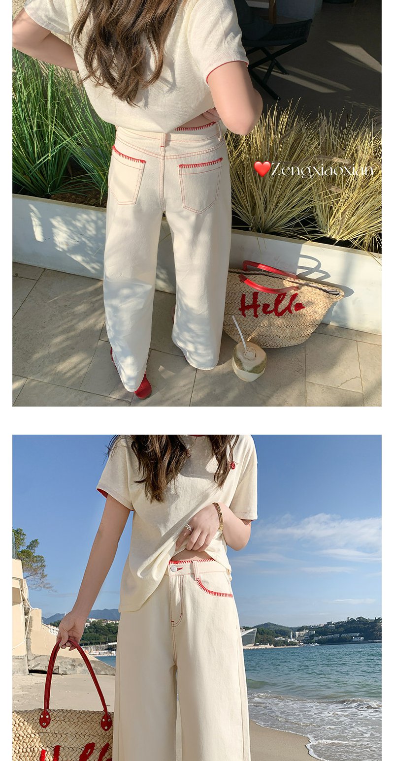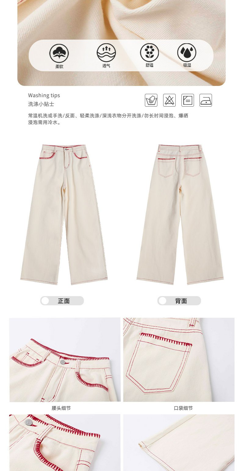 <曾小咸推荐>韩系撞色高腰直筒阔腿牛仔裤