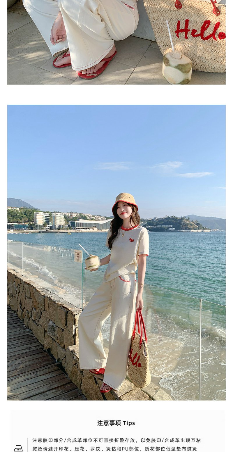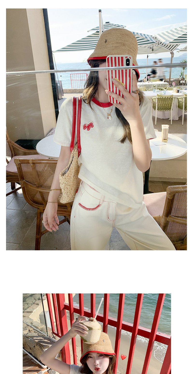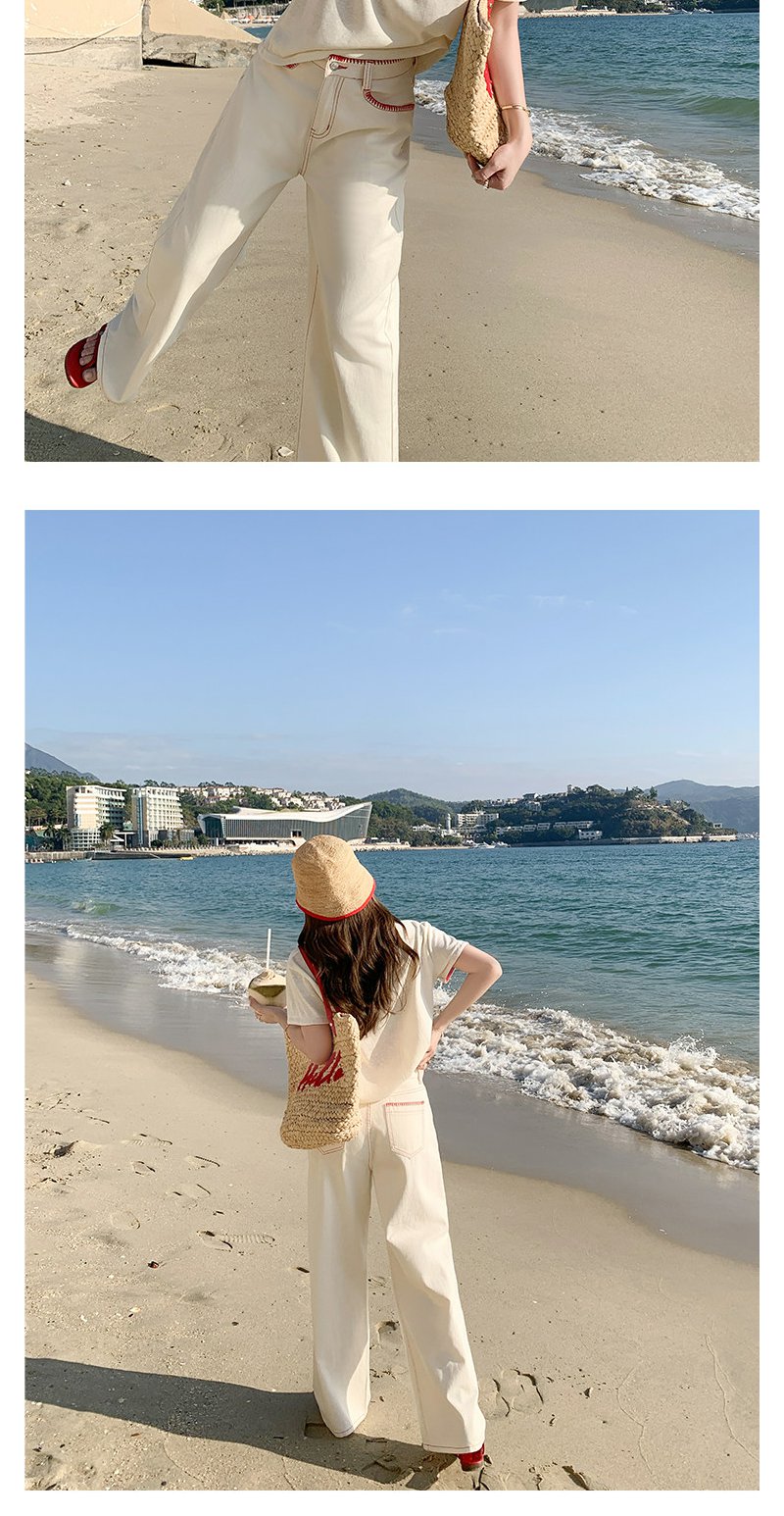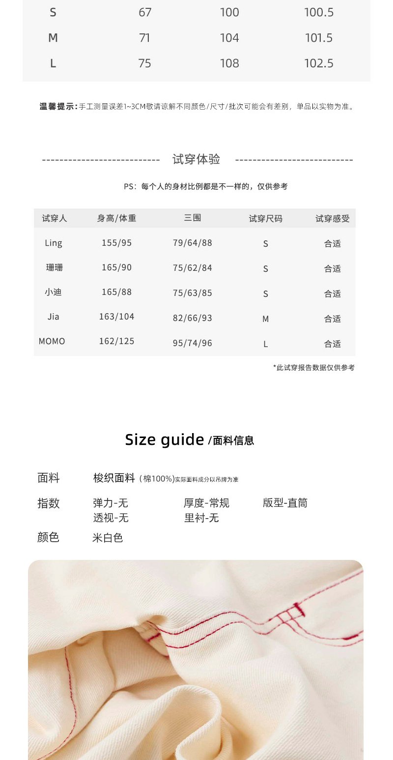 <曾小咸推荐>韩系撞色高腰直筒阔腿牛仔裤
