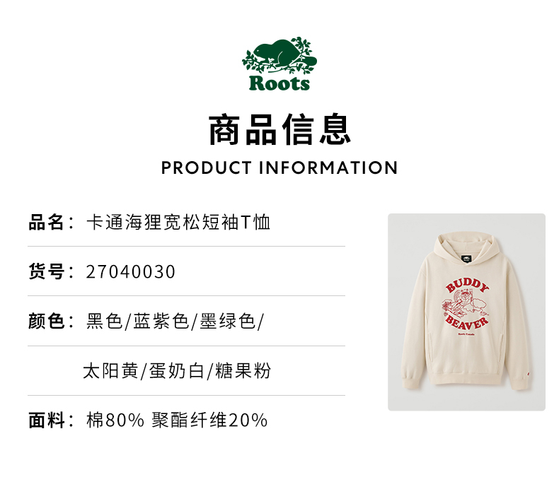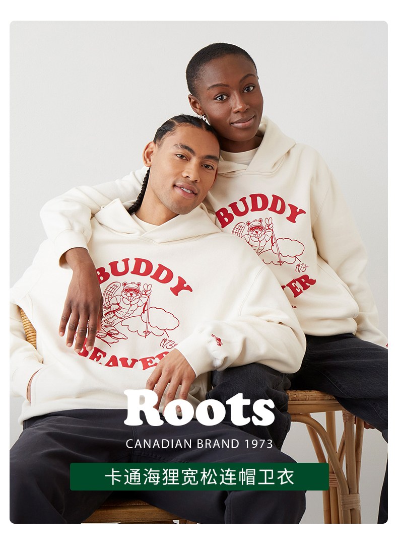 【2件9折】【ROOTS】卡通海狸宽松连帽卫衣