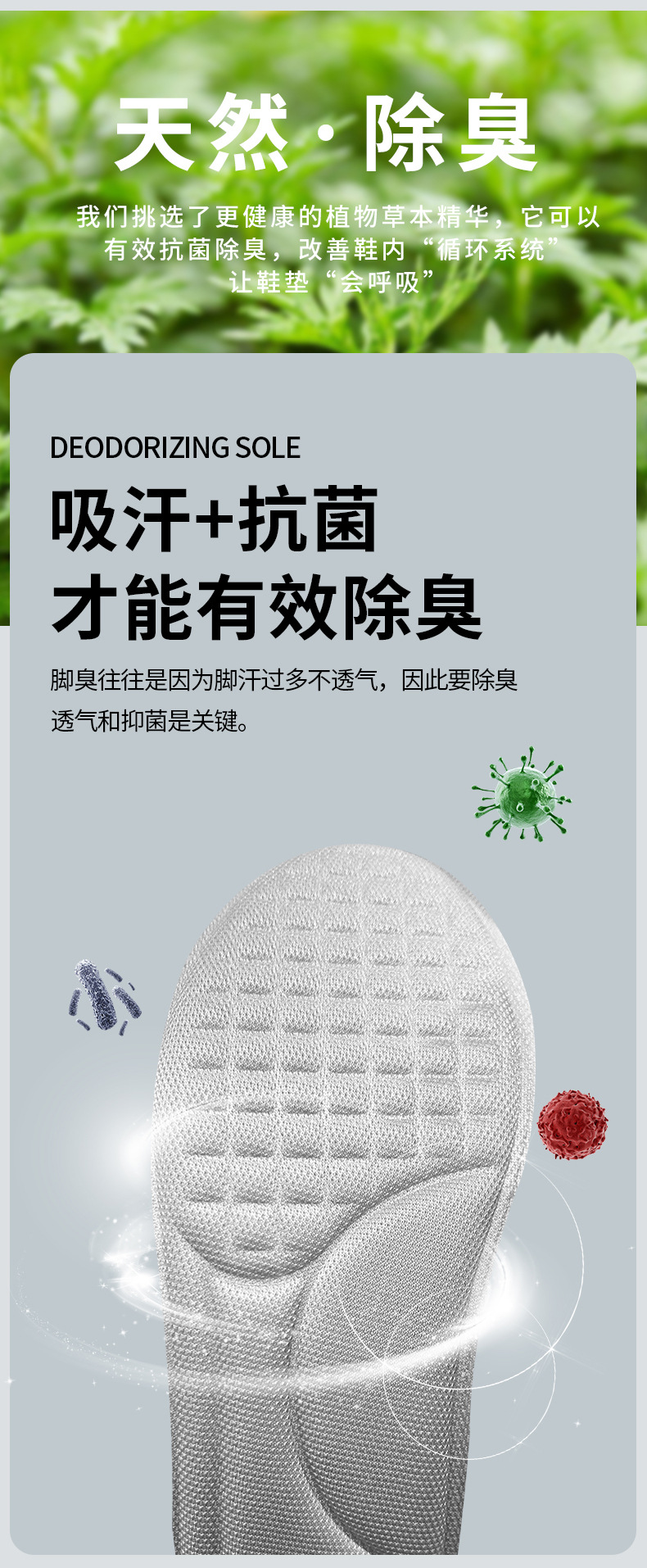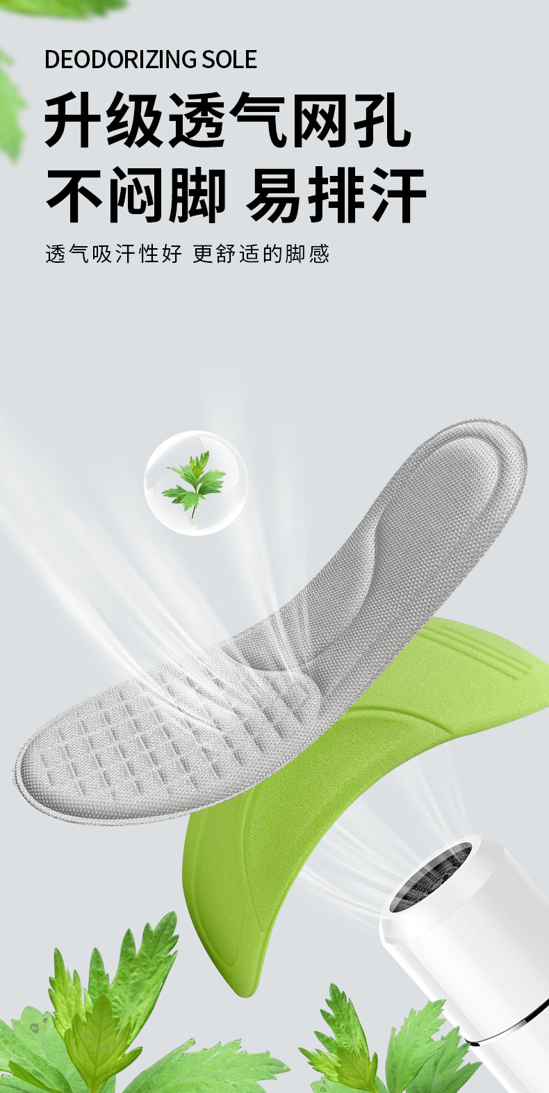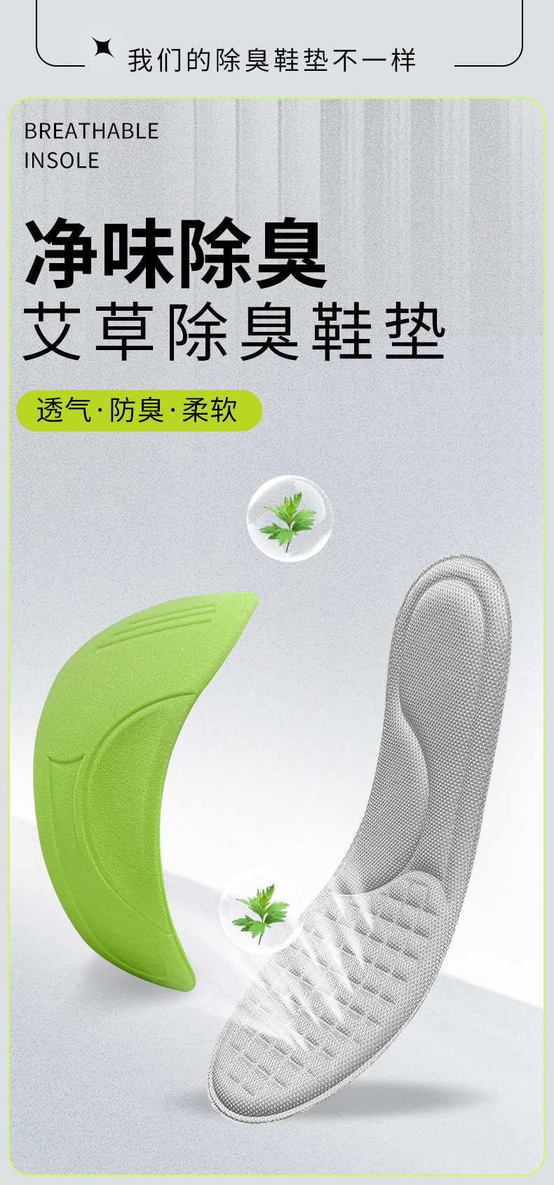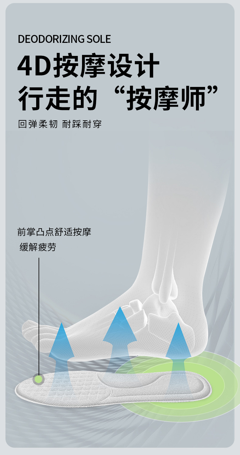 「9.9到手8双!艾草鞋垫」鞋垫运动弹缓震吸汗半腰鞋垫久站不累柔软舒适艾草按摩男女鞋垫