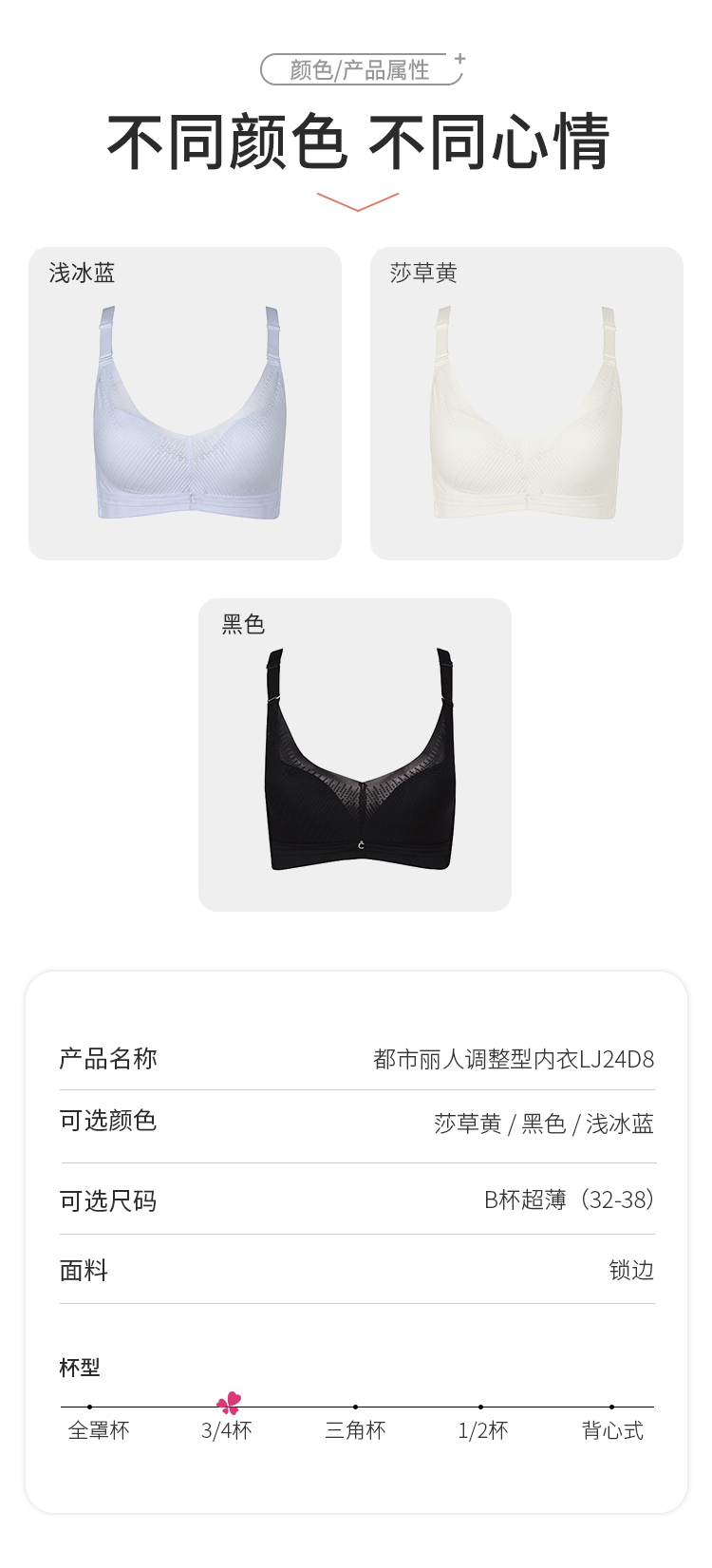都市丽人少女三步优选B杯调整型内衣锁边超薄3/4杯少女文胸四排扣无钢圈LJ24D8