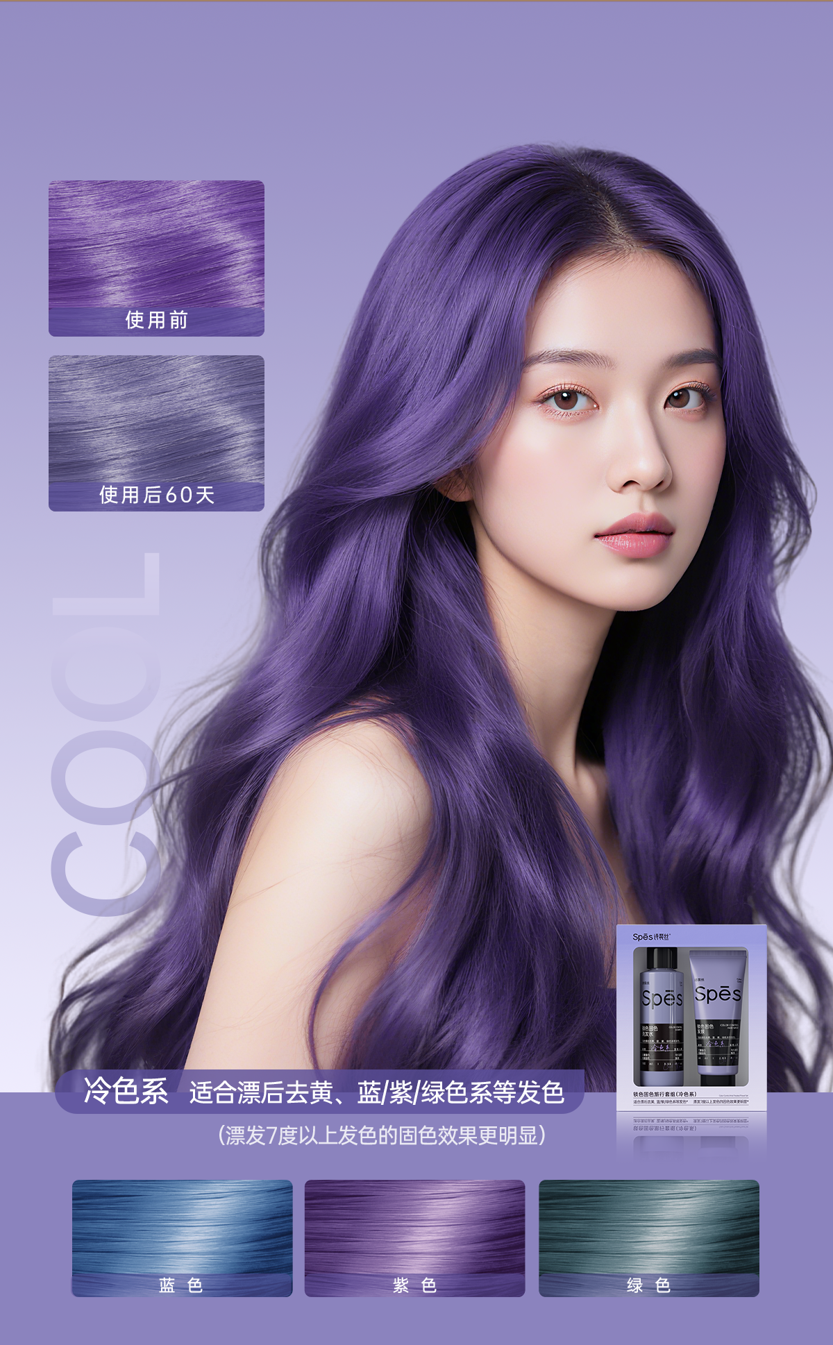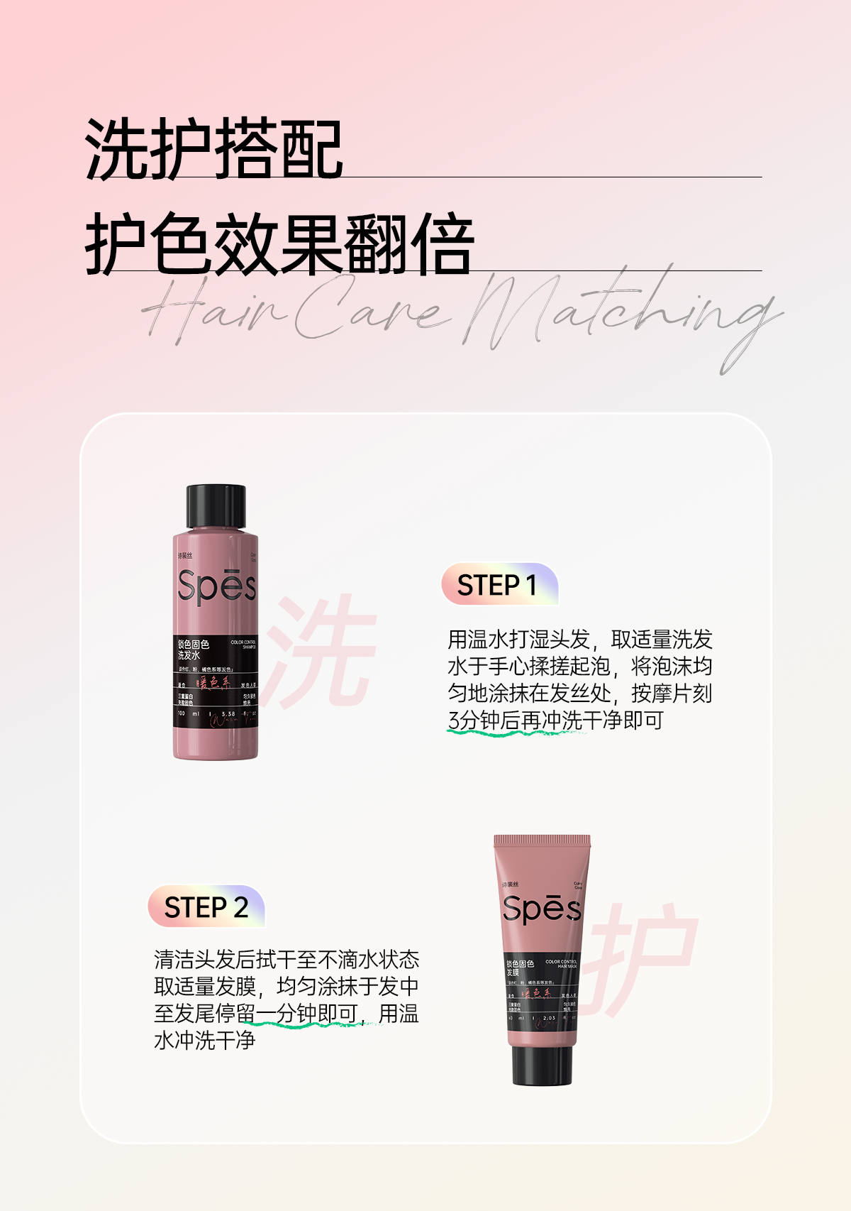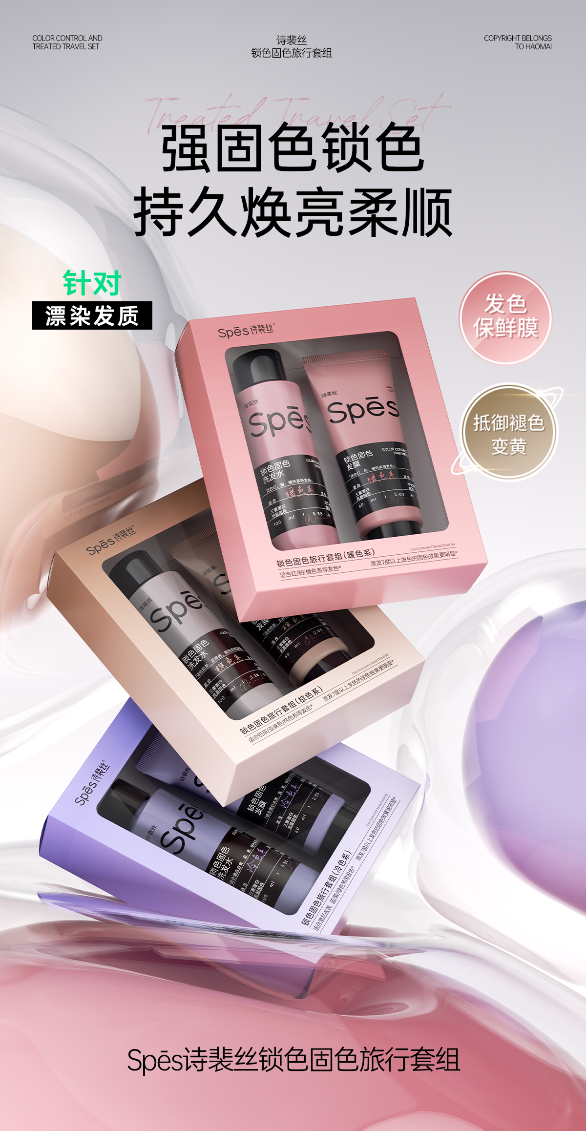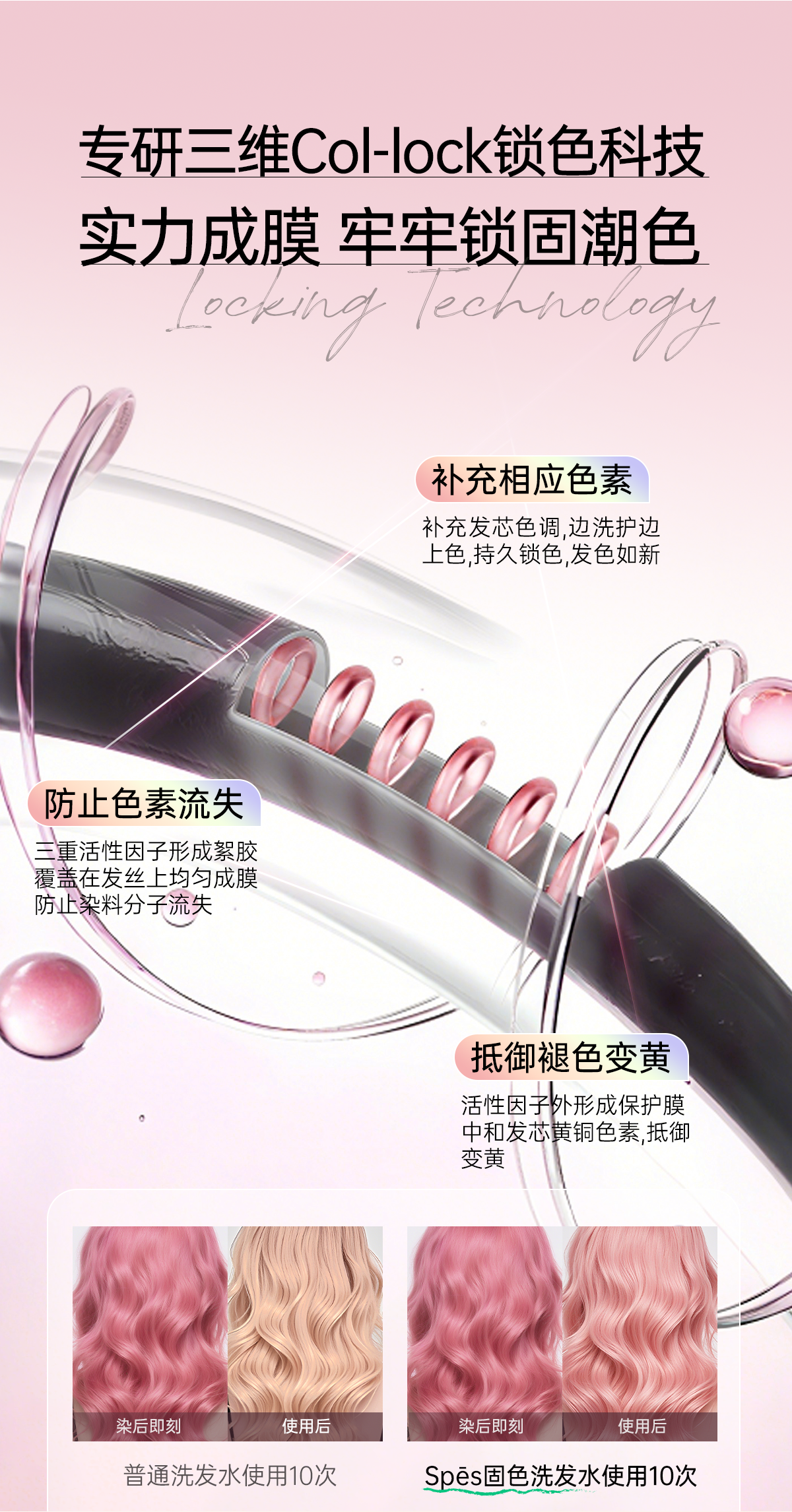 【针对漂染发质】spes诗裴丝固色洗发水锁色护色专用灰色棕色粉色修护去黄护发素补色男女【感恩回馈季】