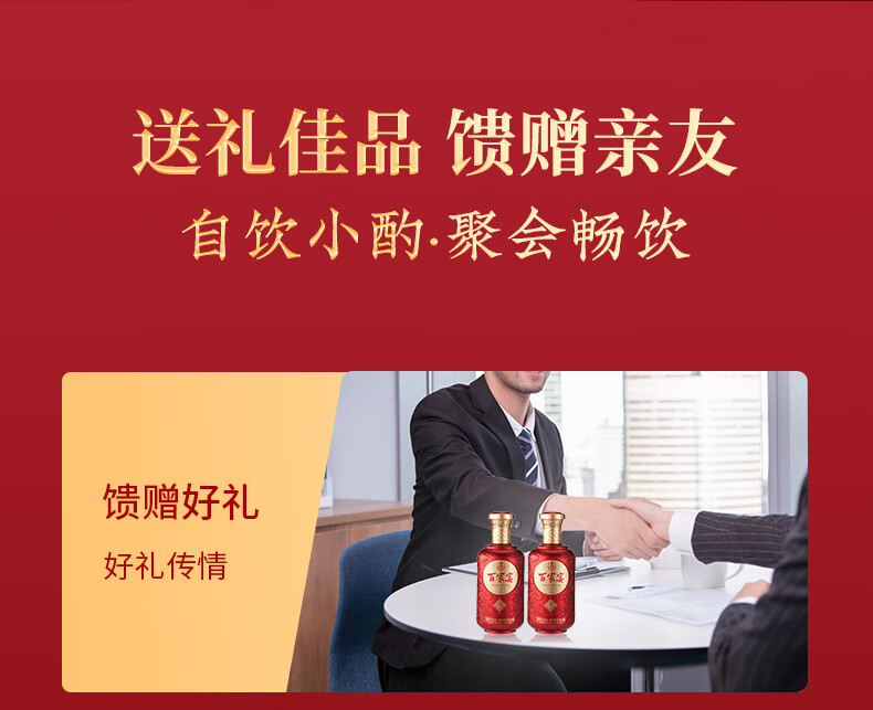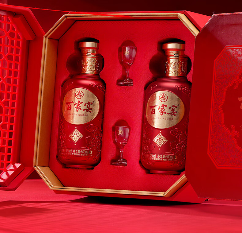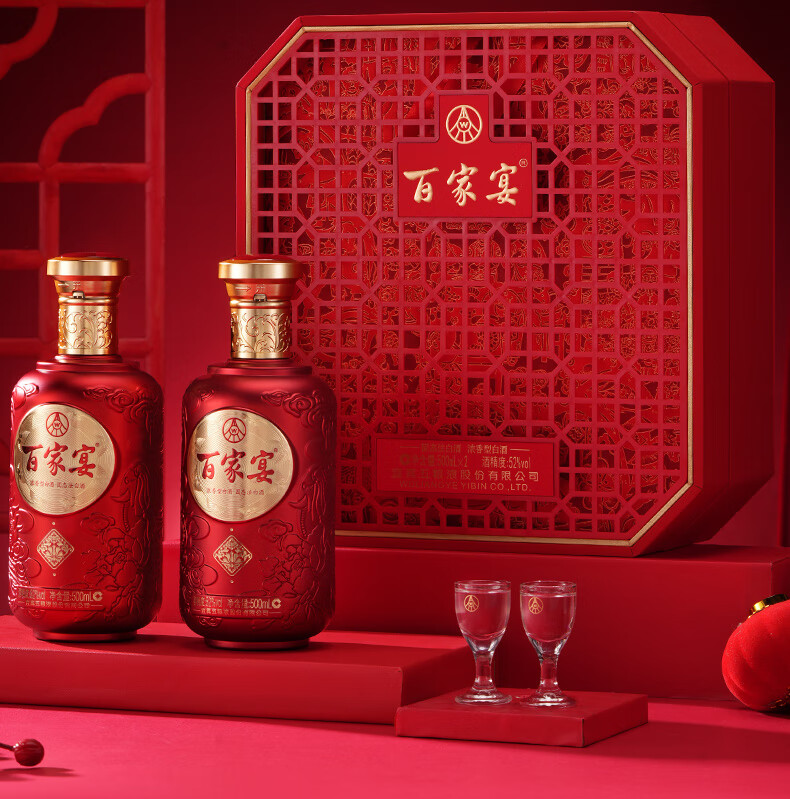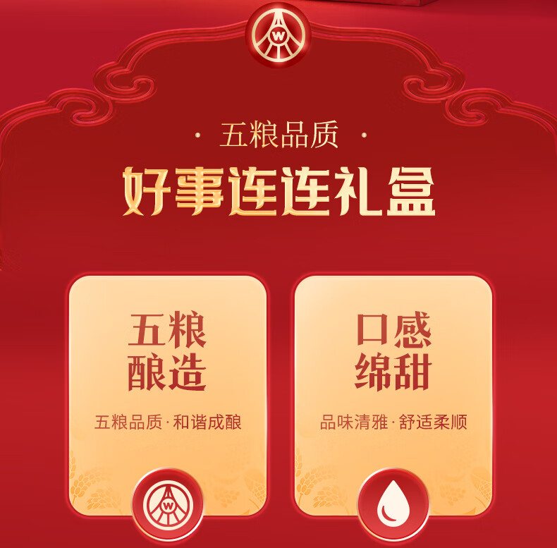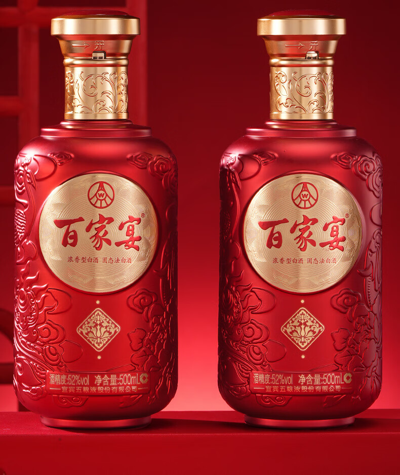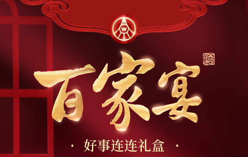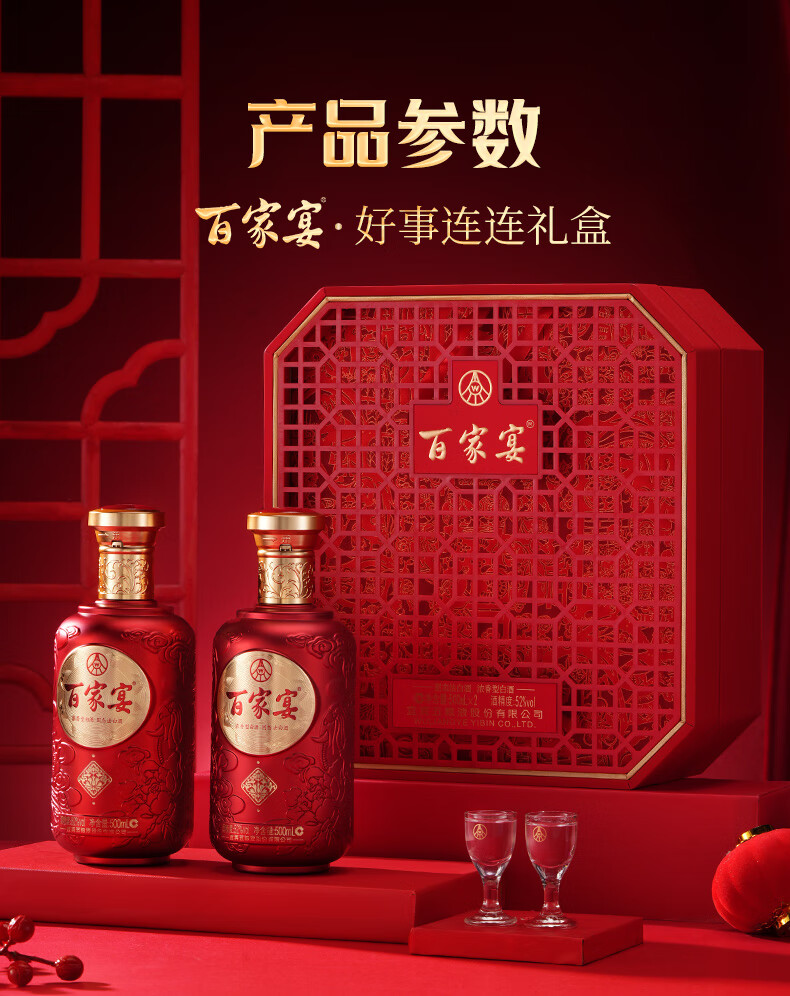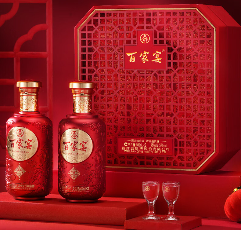 【自营】五粮浓香百家宴 好事连连 白酒礼盒 五粮液股份出品 浓香型白酒 52度 500mL 2瓶 礼盒装 整箱装