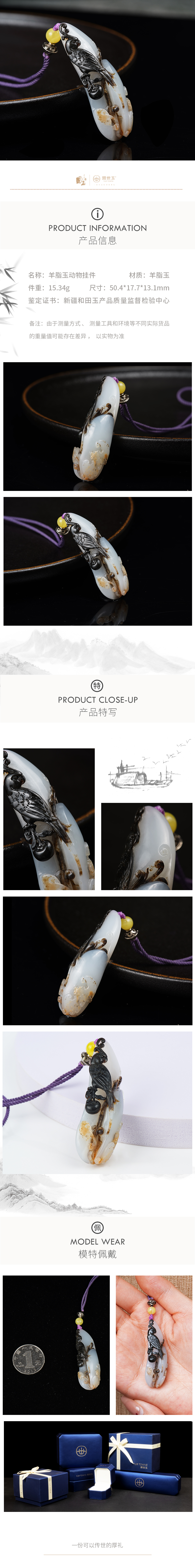 新疆国玉盟世玉和田玉羊脂玉籽料挂件(柿子和凤凰与蝙蝠)【带证书·顺丰物流】