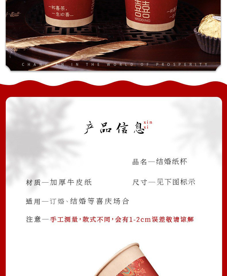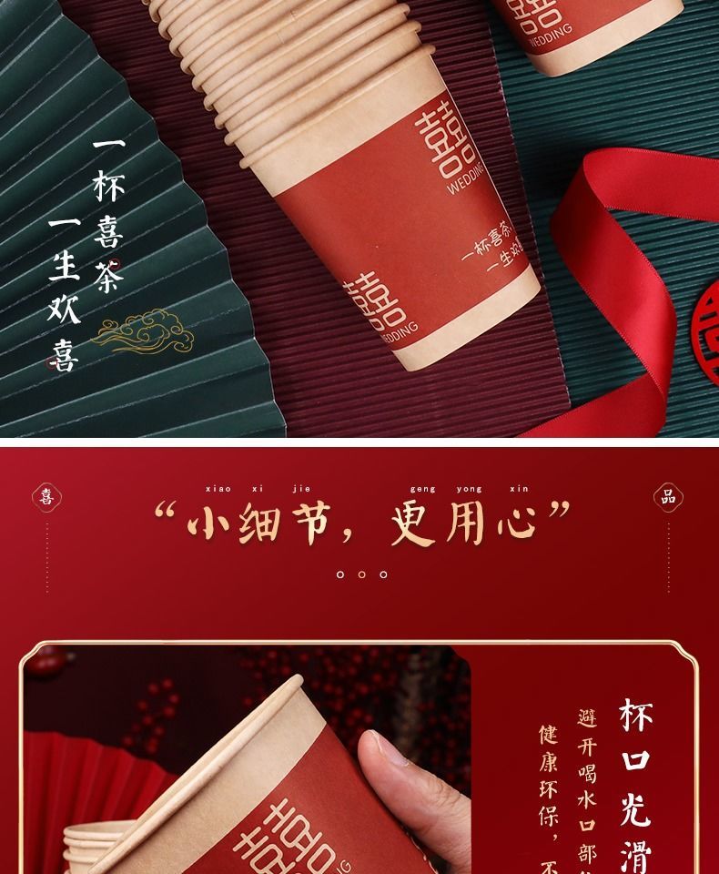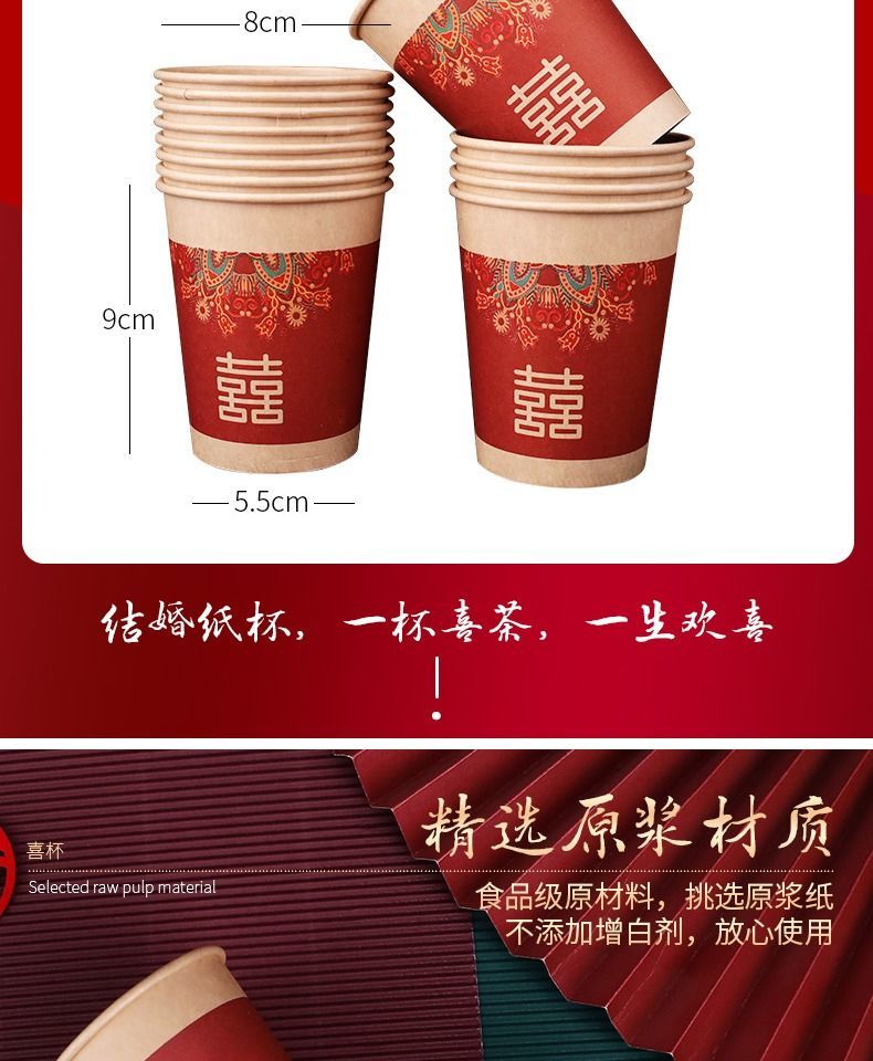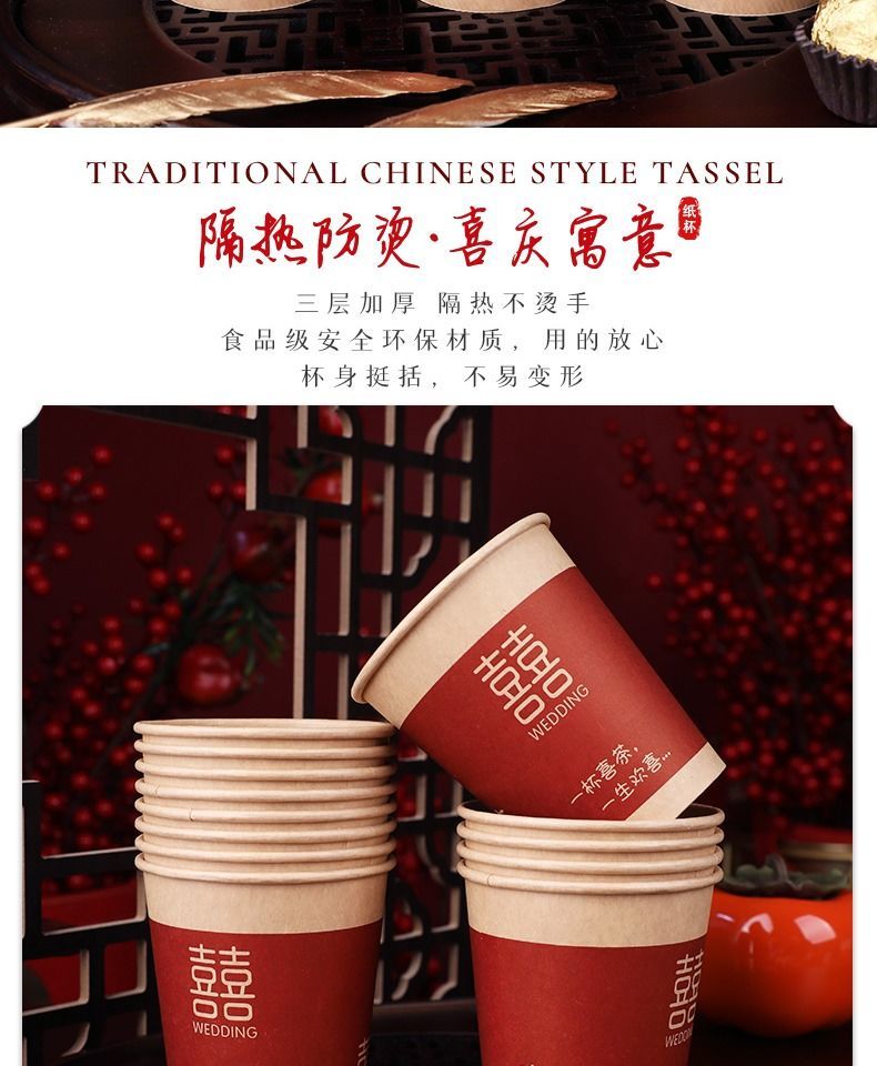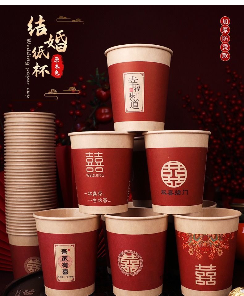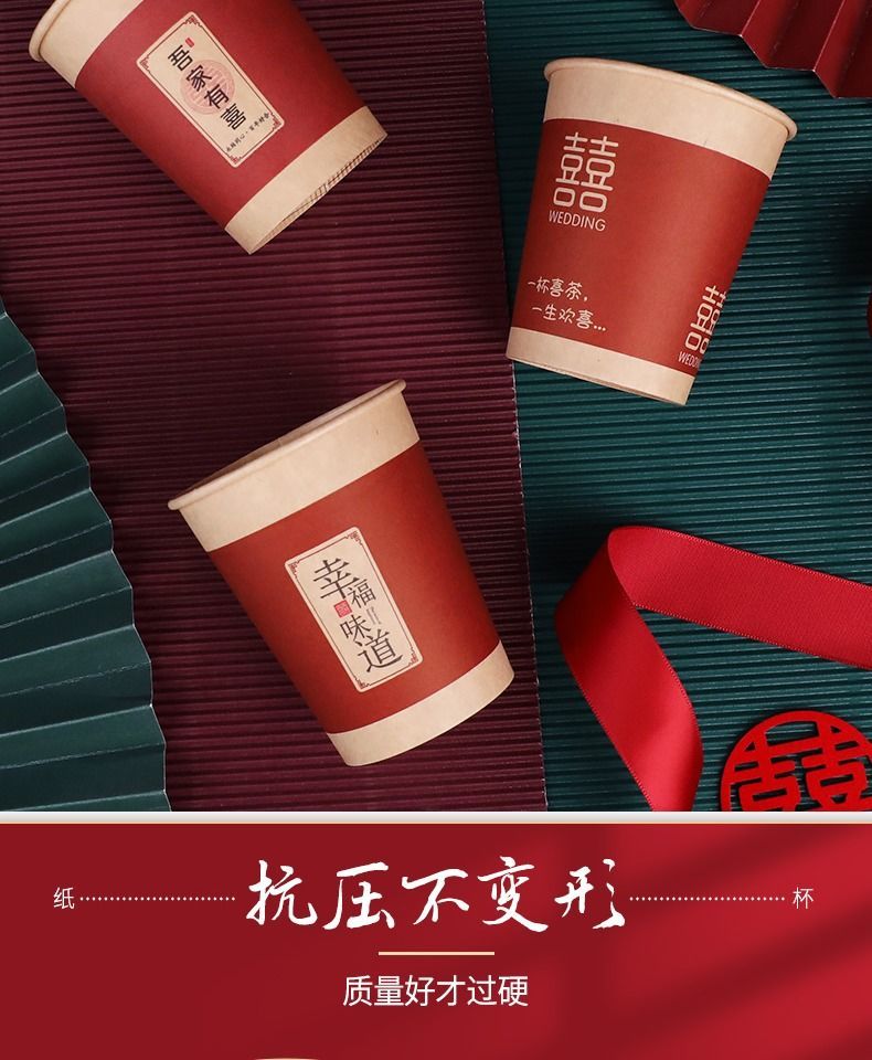 结婚纸杯婚宴一次性纸杯子婚礼喜庆敬茶红色喜事水杯婚庆用品大全