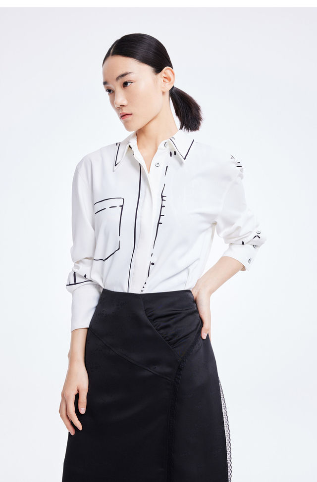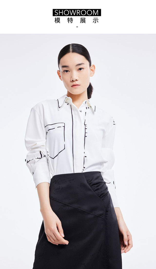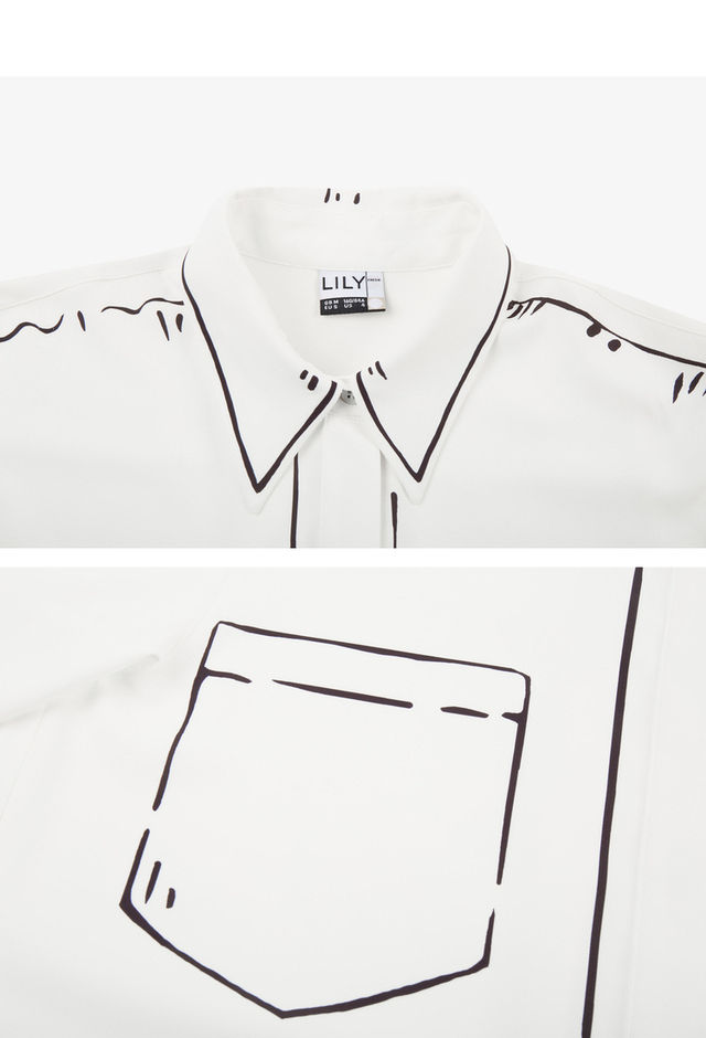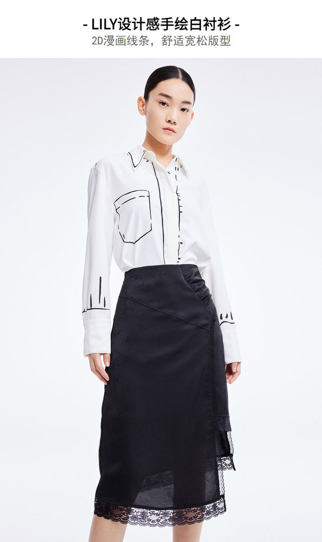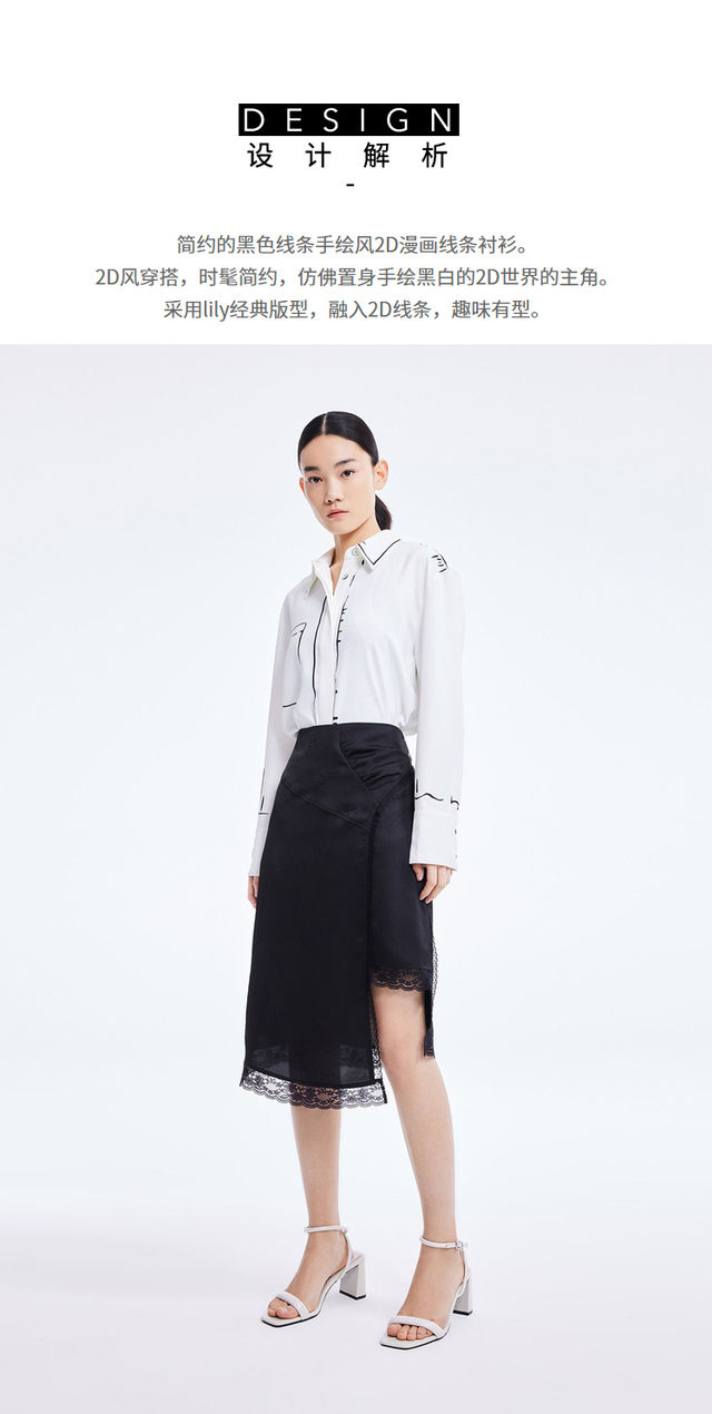 LILY2022夏新款女装小众设计感手绘宽松垂感白衬衫女122200C4180