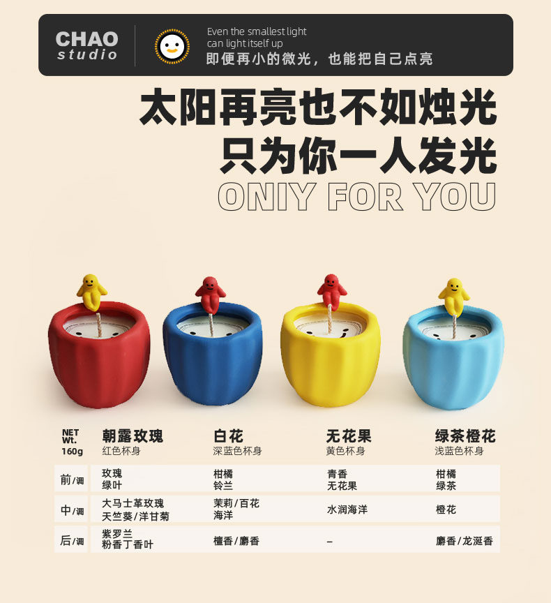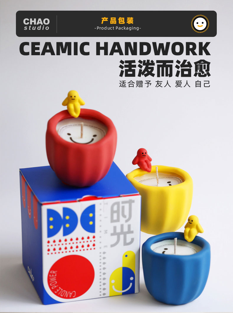 CHAO studio香薰蜡烛礼盒原创可爱治愈造型香氛送礼生日圣诞礼物时光 治愈小胖烛台 160g