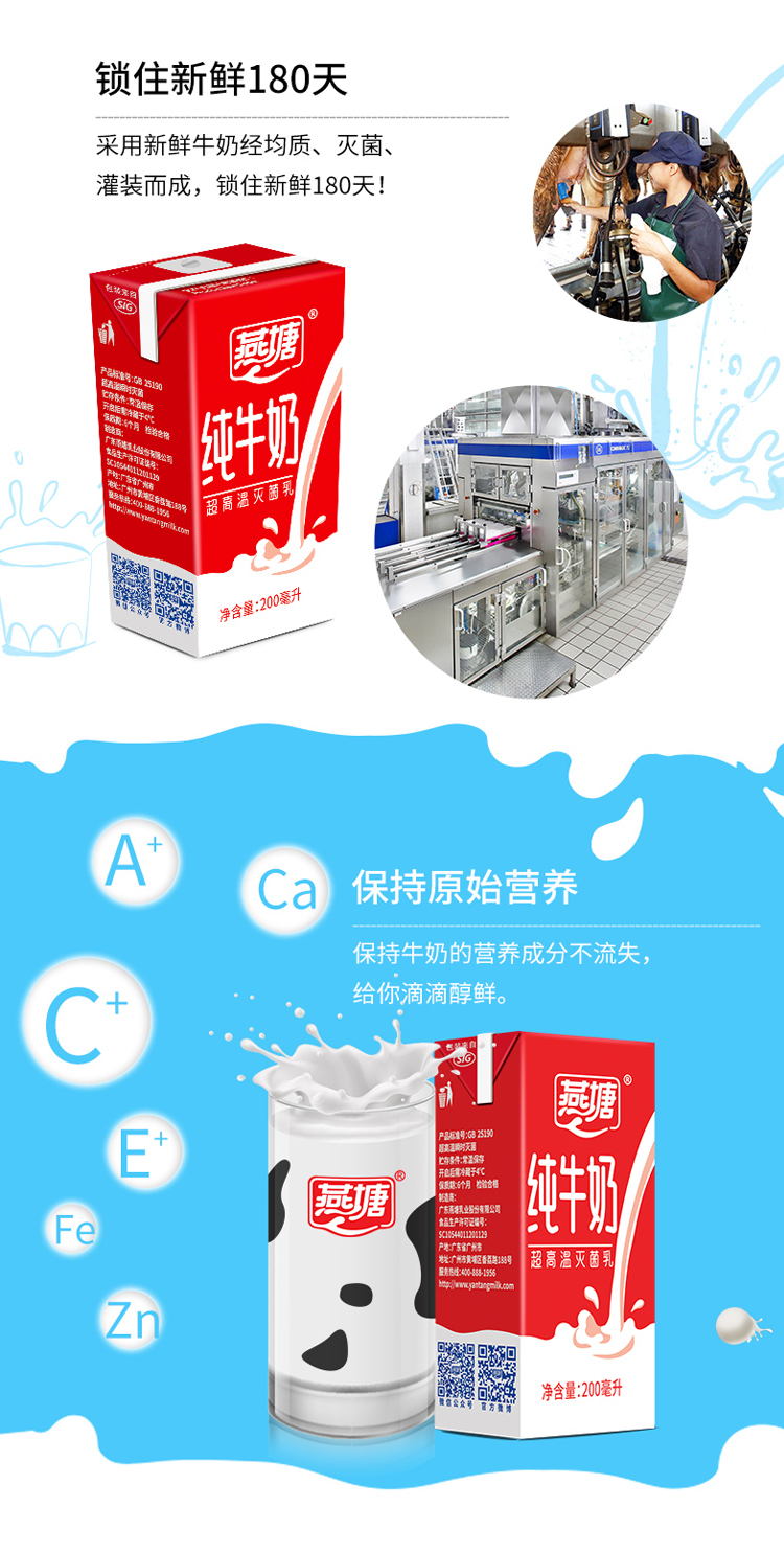 【广垦优品】燕塘丨纯牛奶饮品200ml*16盒/箱 【仅广东省内包邮】