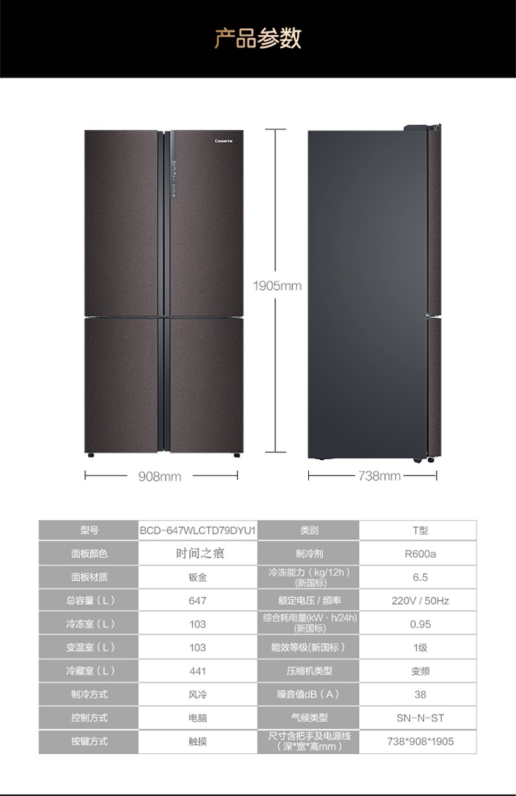 卡萨帝(Casarte)变频电冰箱BCD-647WLCTD79DYU1