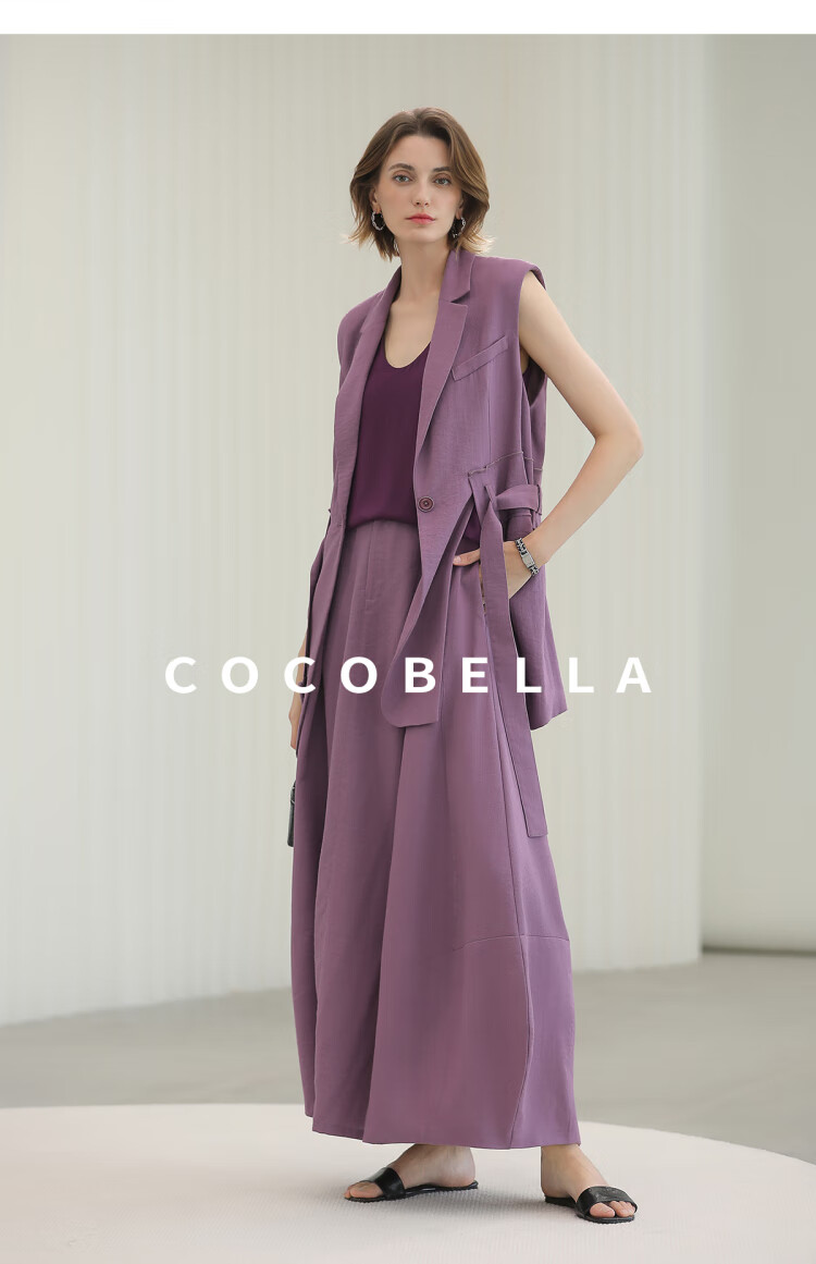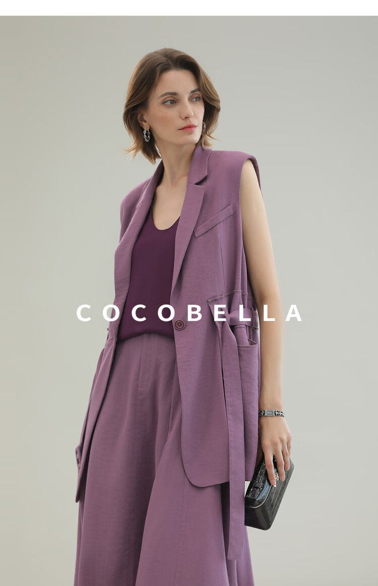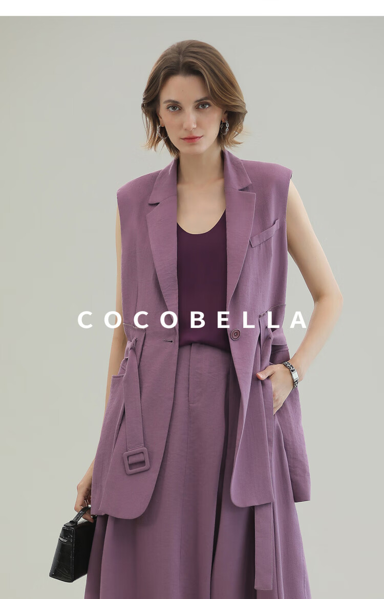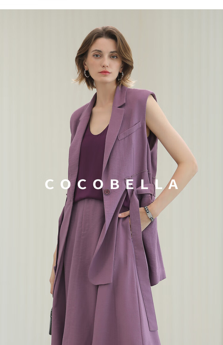 【限时秒杀】COCOBELLA假两件干练马甲夏中长款叠穿西装马夹附腰带WS3011
