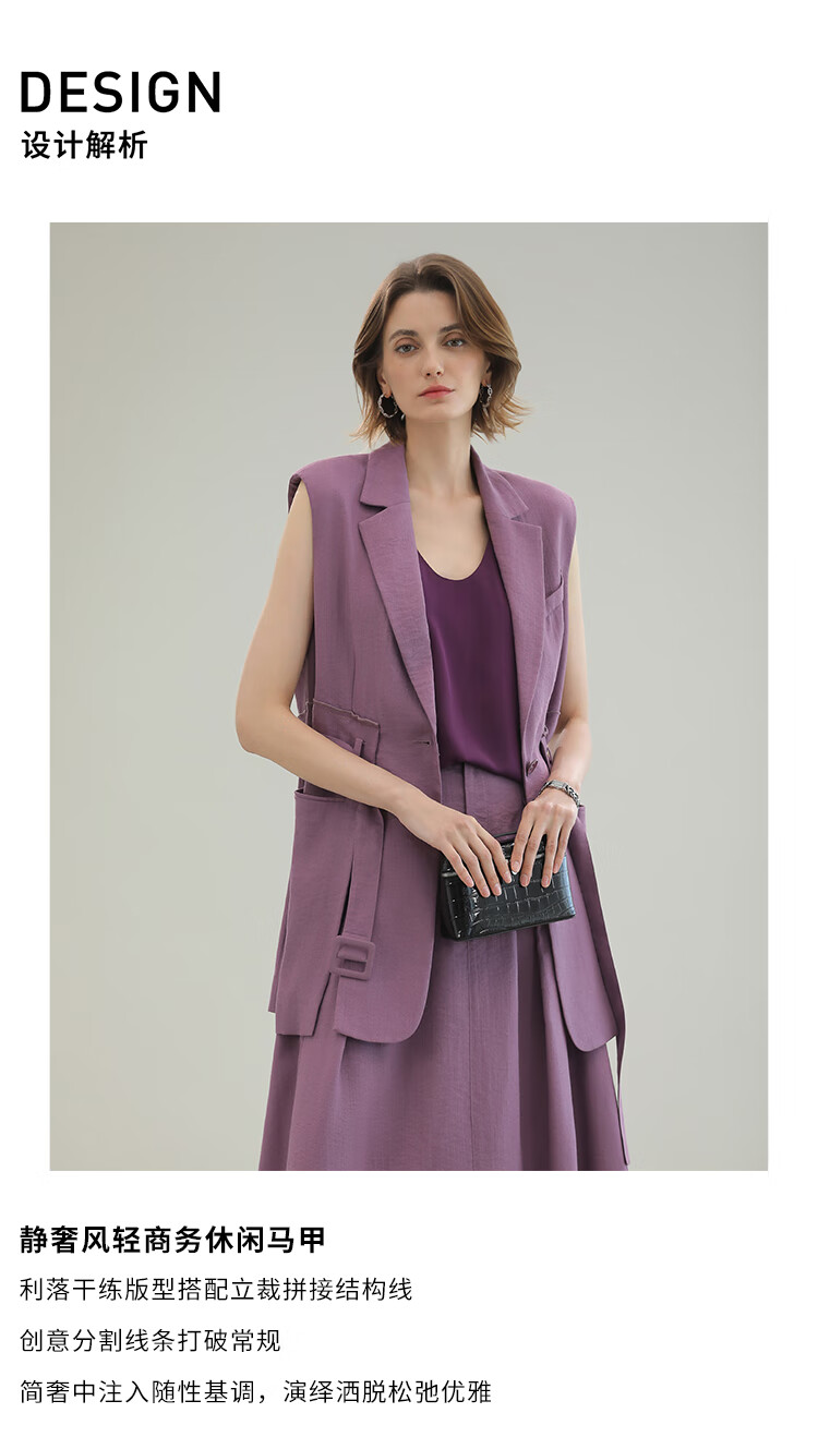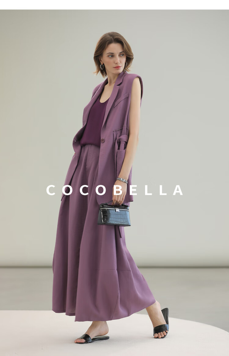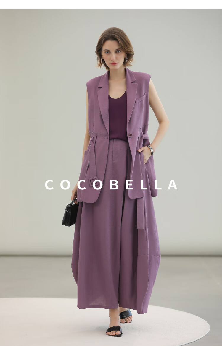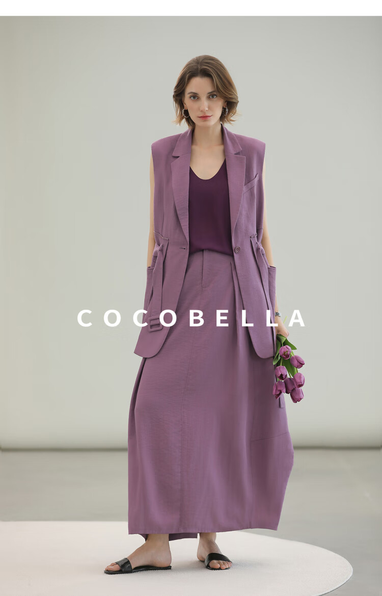【限时秒杀】COCOBELLA假两件干练马甲夏中长款叠穿西装马夹附腰带WS3011