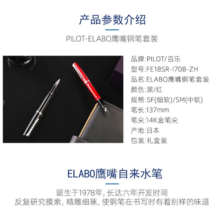 PILOT/百乐ELABO鹰嘴钢笔套装 FE18SR 14K金尖