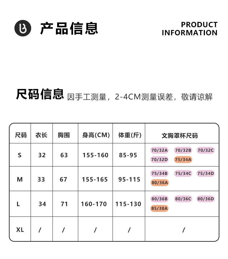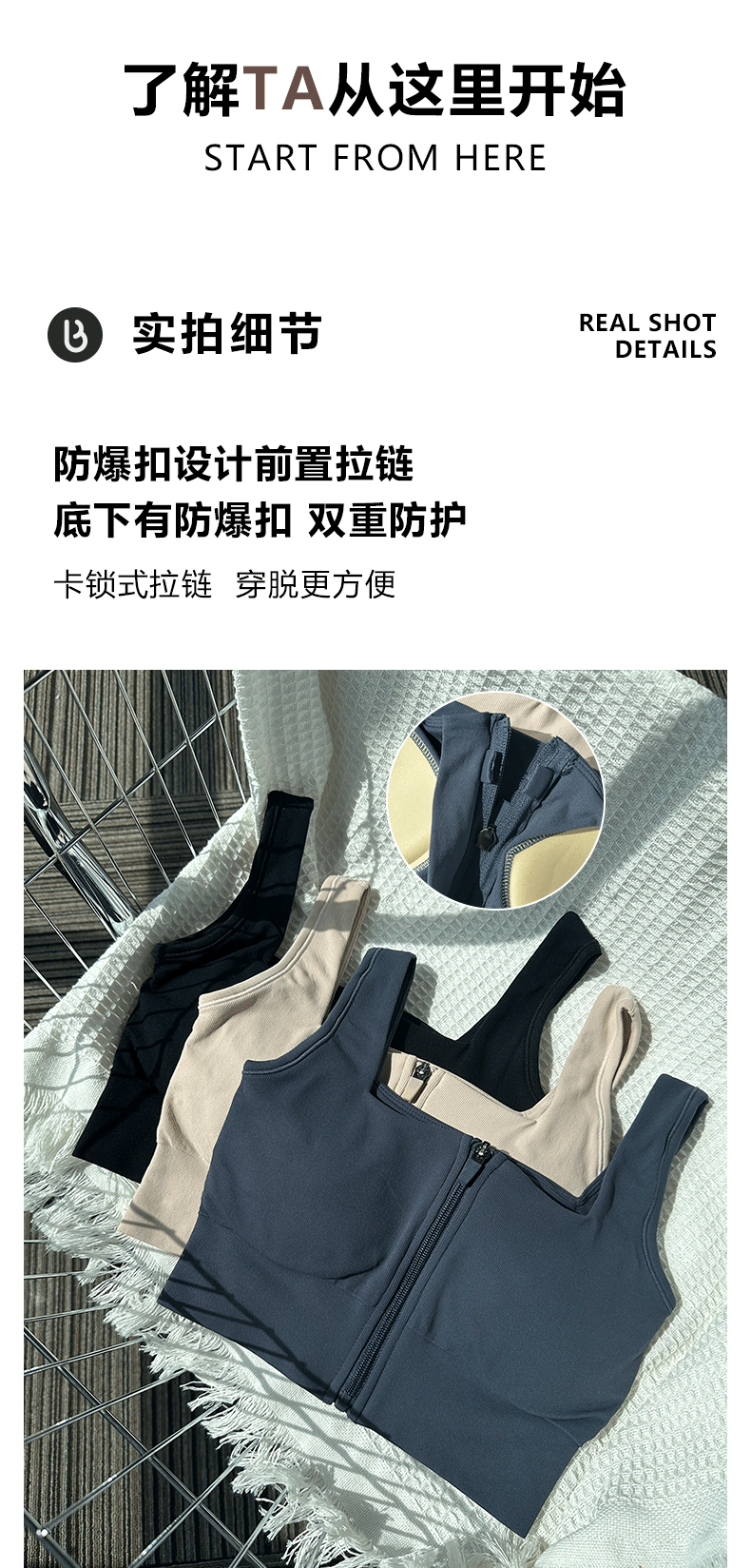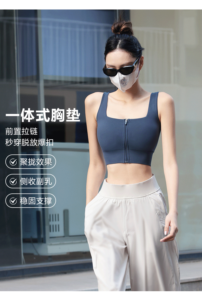 beemen一体杯运动内衣 低强度运动背心 前拉链1秒脱穿 精致无缝一体织 无接头舒适不勒