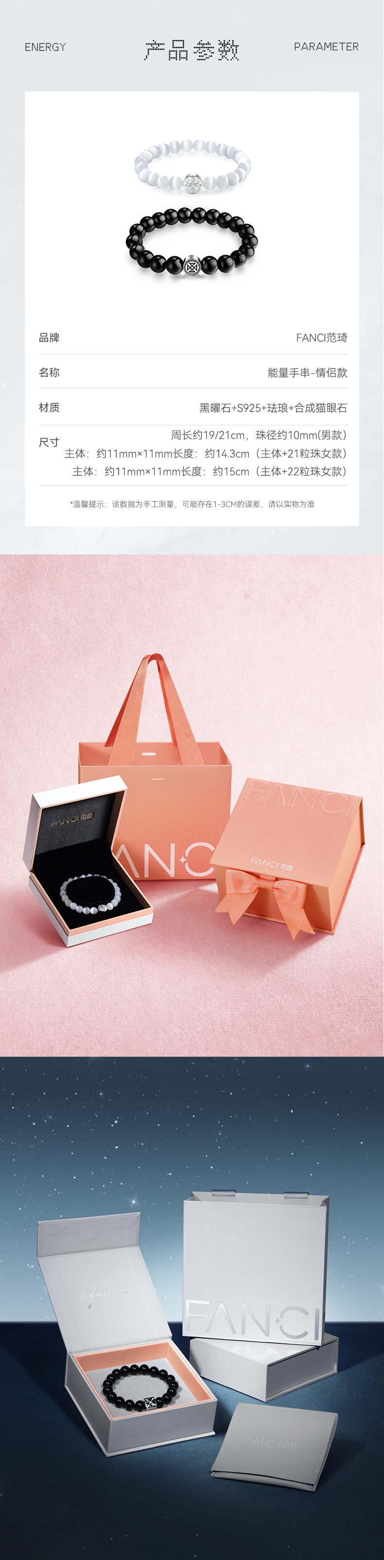 Fanci范琦 情侣手串黑曜石猫眼石能量守护石时尚手串手链生日送女友