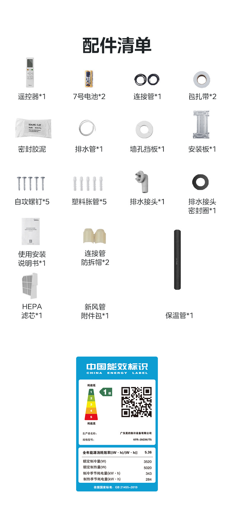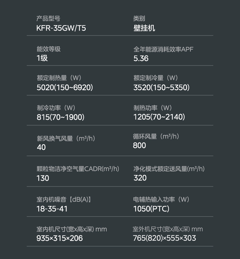 KFR-35GW/T5 变频 分体套机 榭湖银 美的