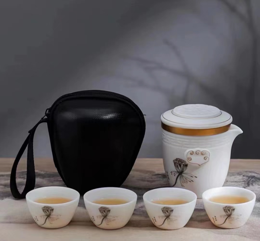莲蓬快客杯°新款羊脂玉旅行茶具