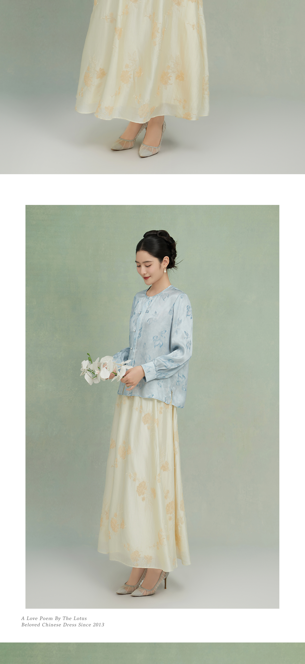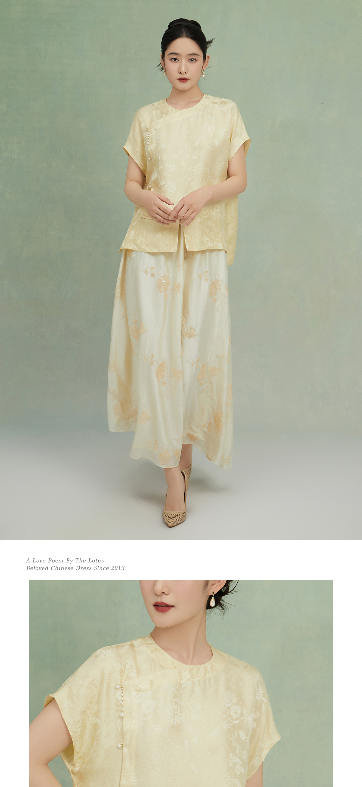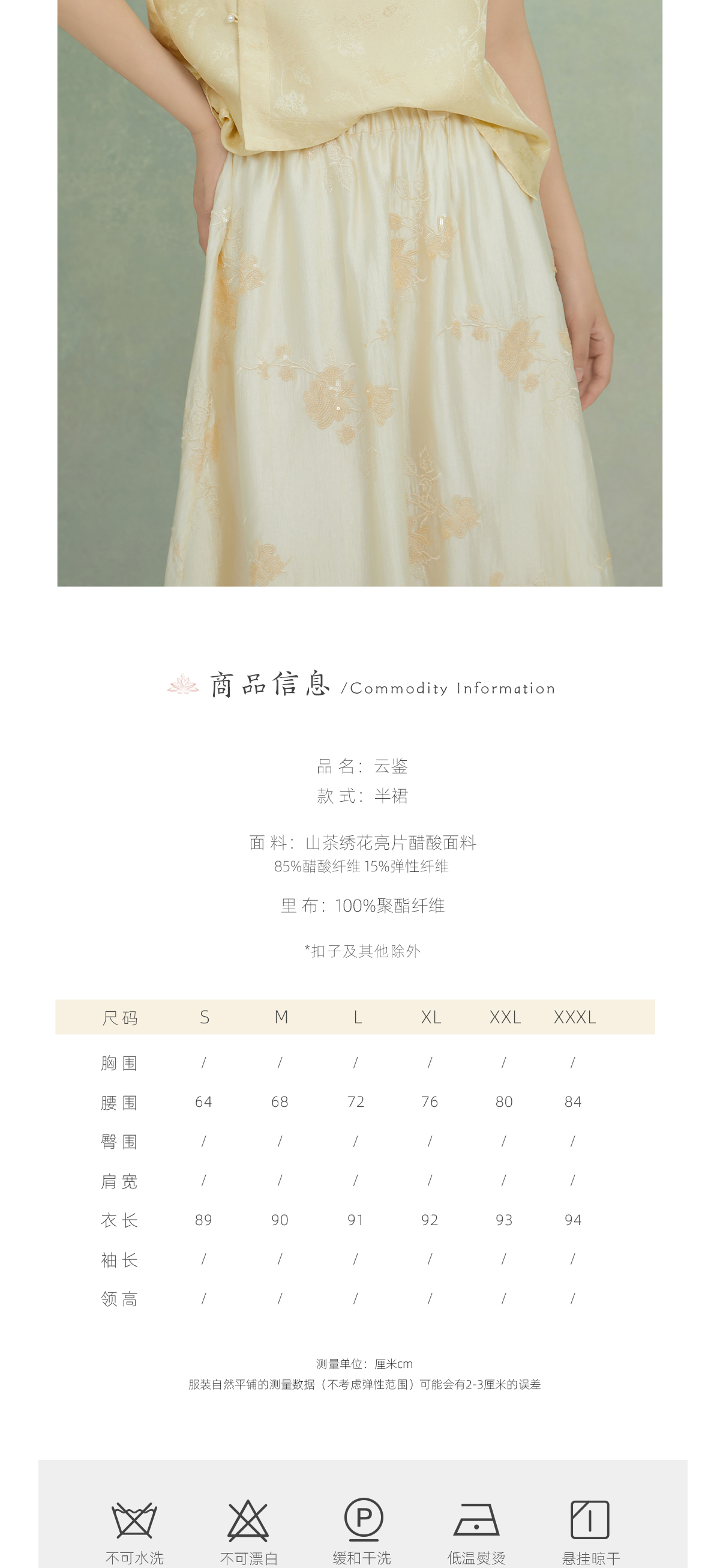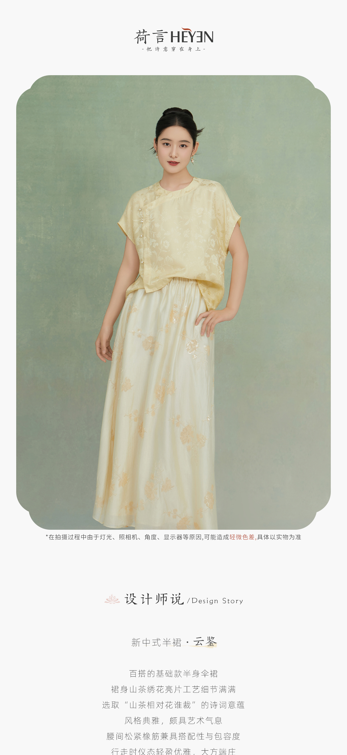 荷言GL 云鉴 山茶绣花亮片新中式米白伞裙舒适显瘦氛围感