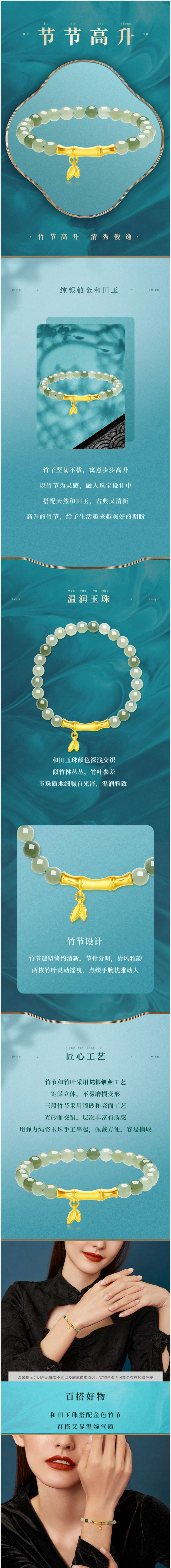 节节高升和田玉手串6mm 温润玉珠 质地细腻 竹节高升 清秀俊逸