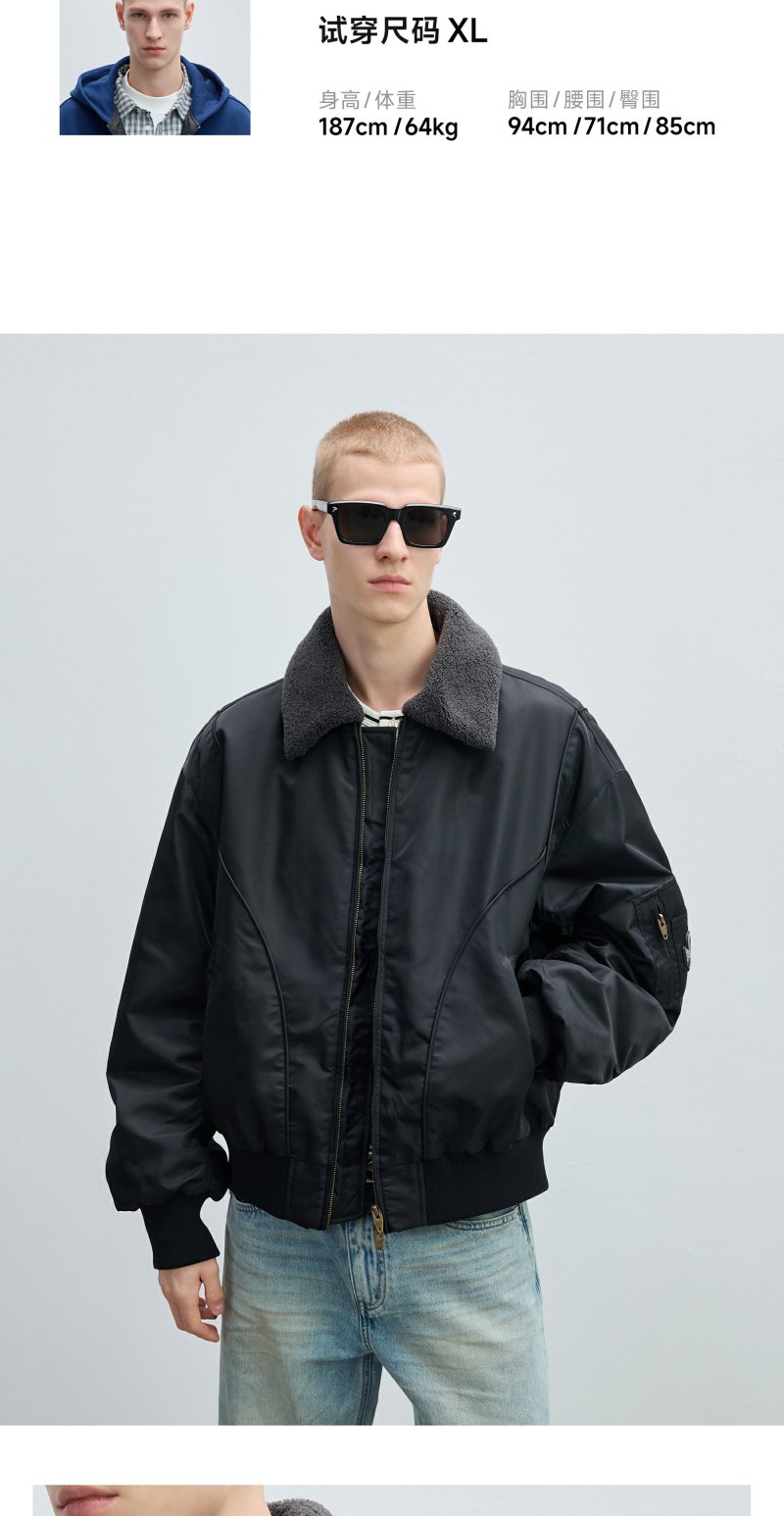 CHINISM赤尘 幸运之符巴恩风廓形夹克男秋季工装羊羔毛翻领外套