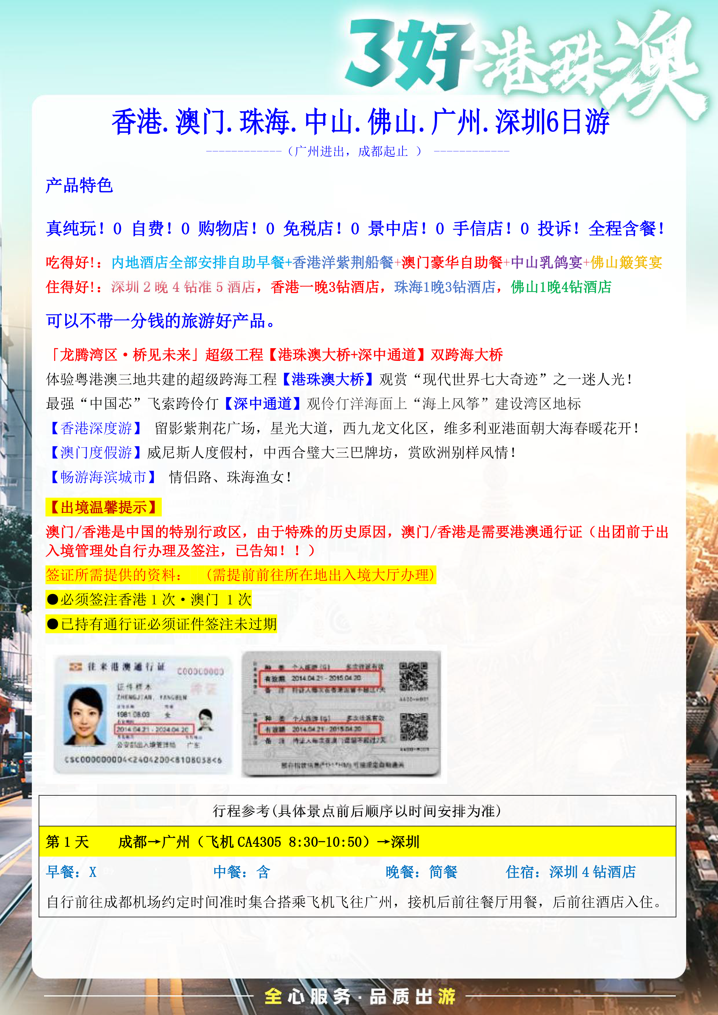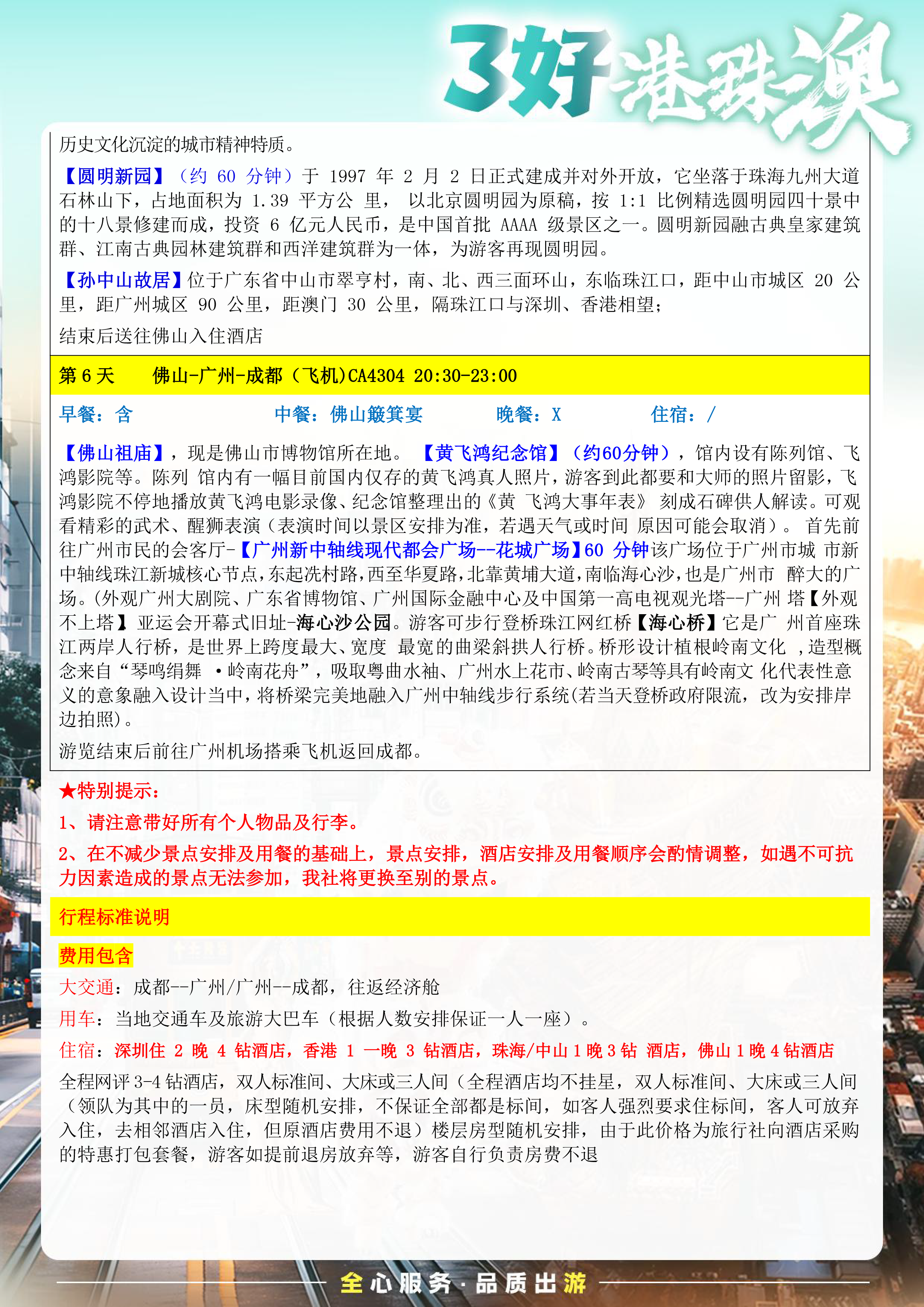 纯玩港珠澳·双飞6日-成都出发 独家定制【业主专团】0自费0购物 小区接送 【旅游】