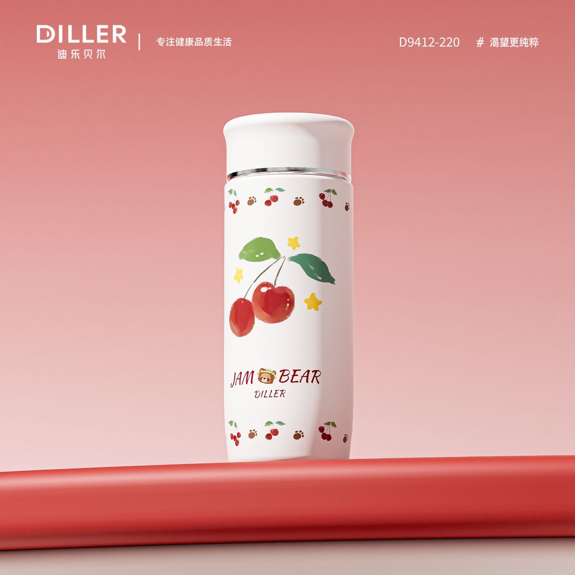 迪乐贝尔保温杯樱桃系列女生高颜值新款水杯学生上学水壶可爱(规格自选)