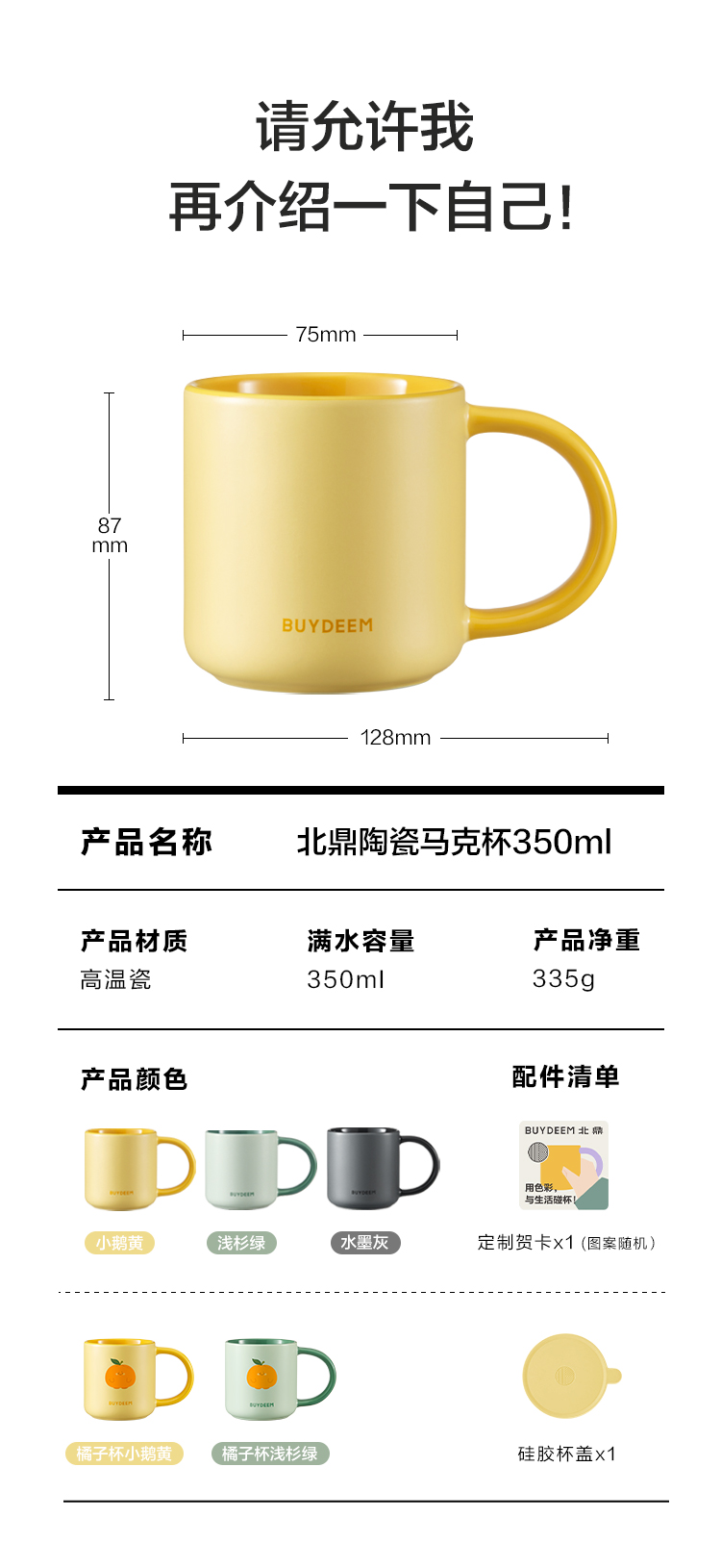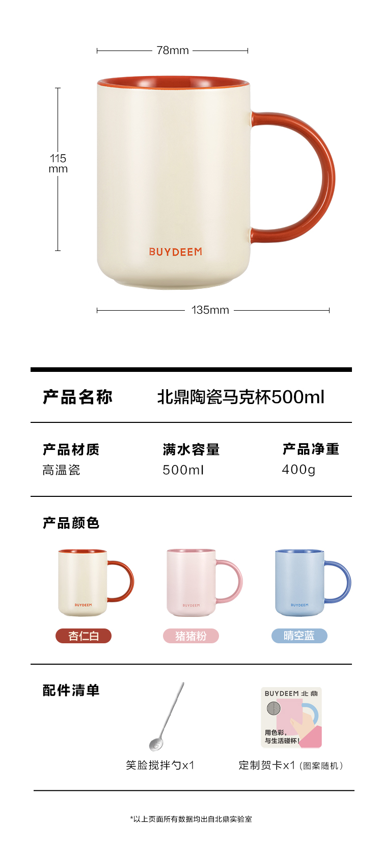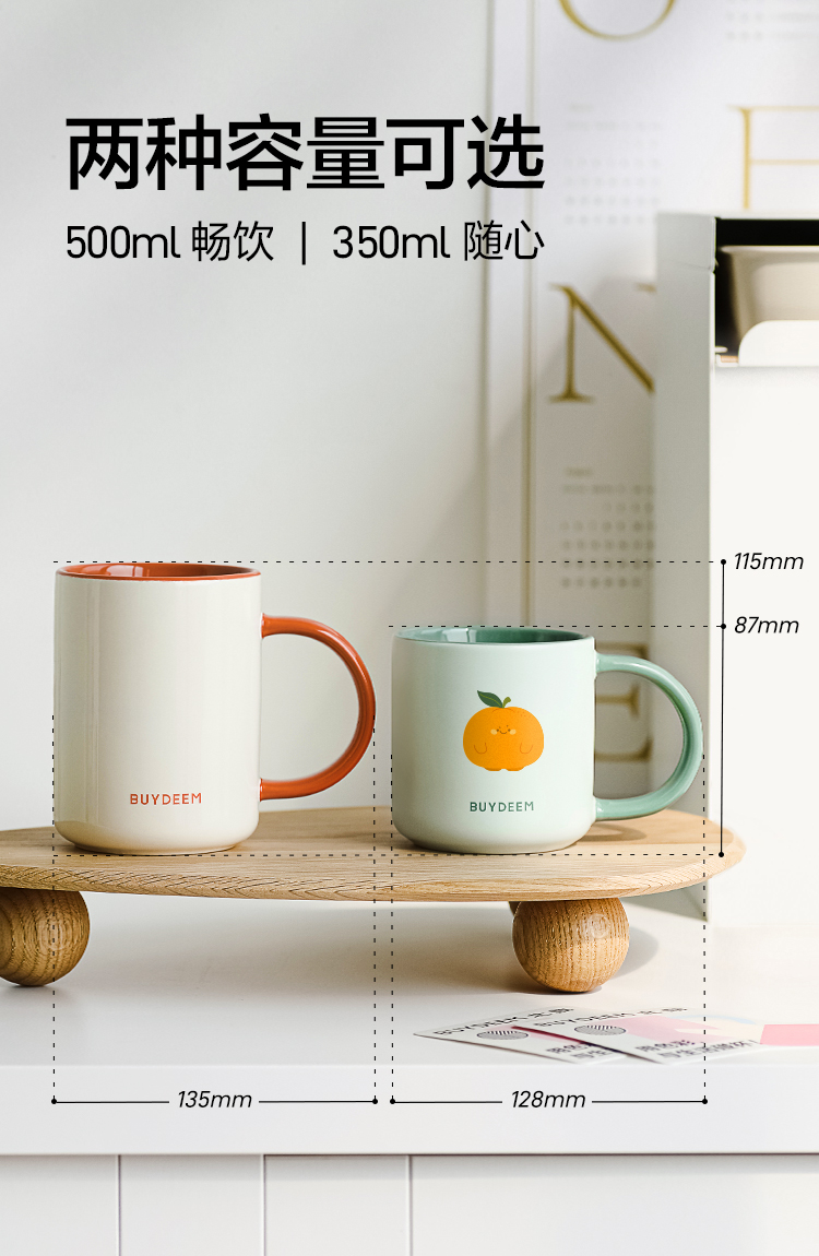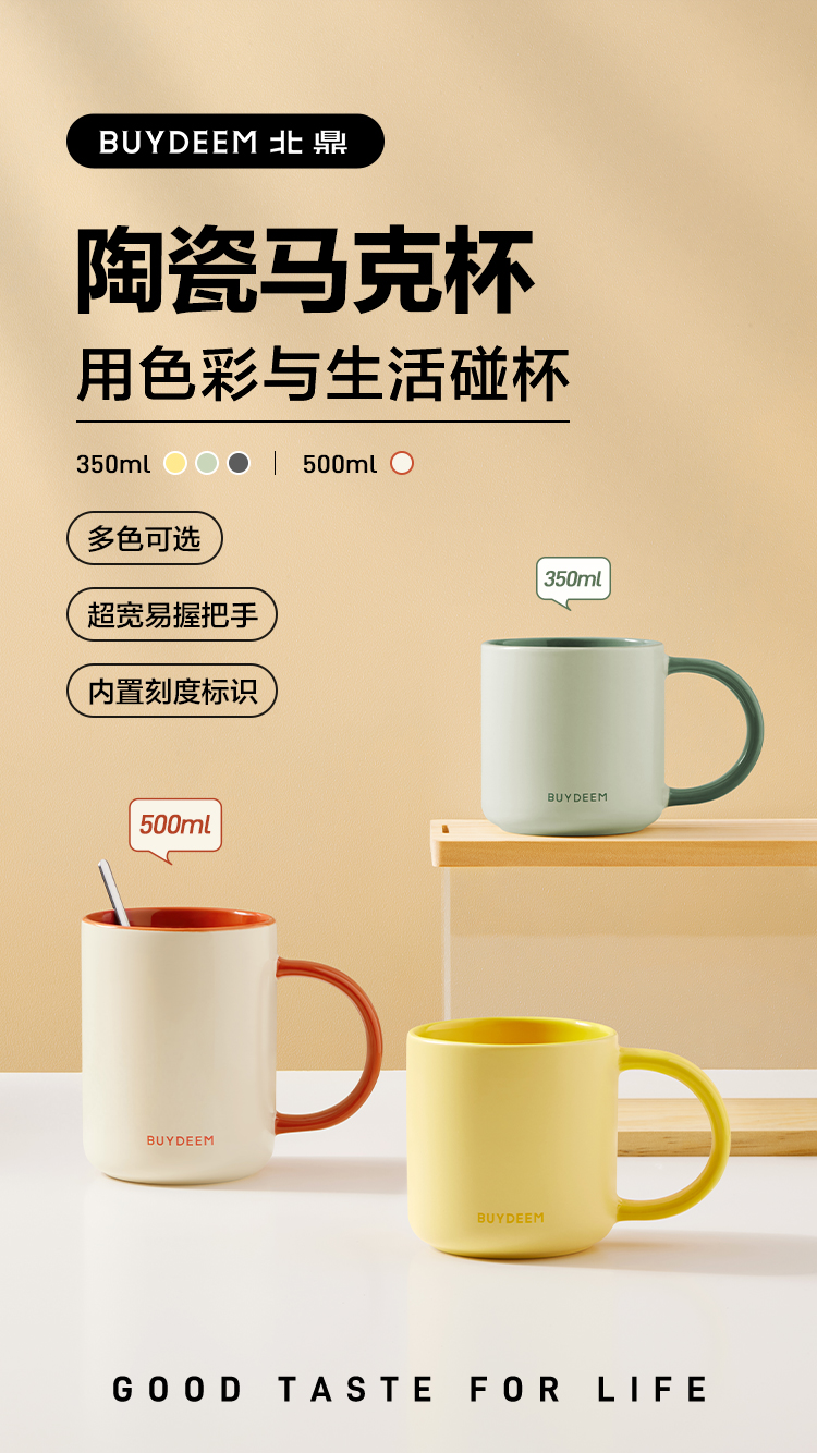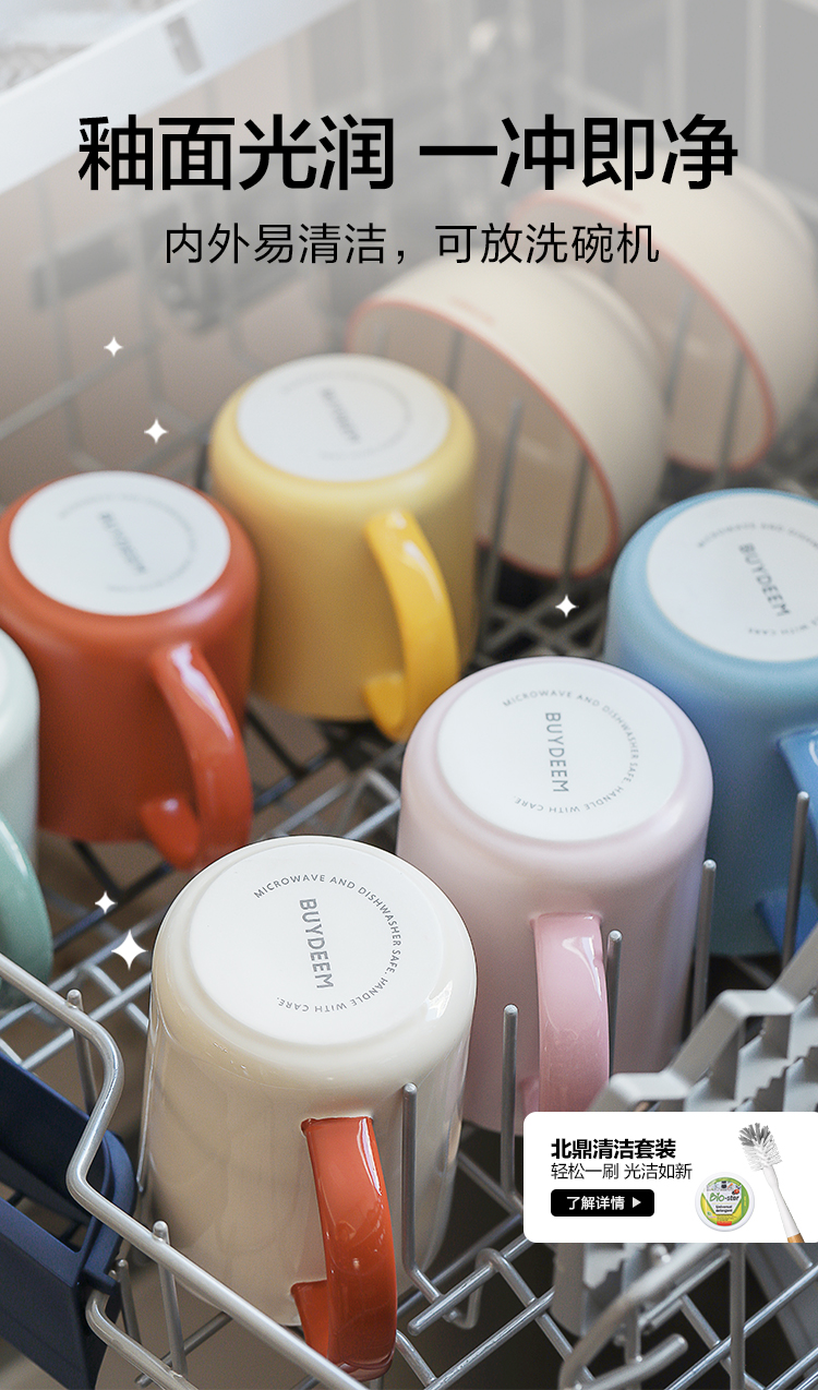 【专柜-北鼎】北鼎陶瓷马克杯大容量杯子情侣夏日多巴胺色高颜值水杯防尘杯盖