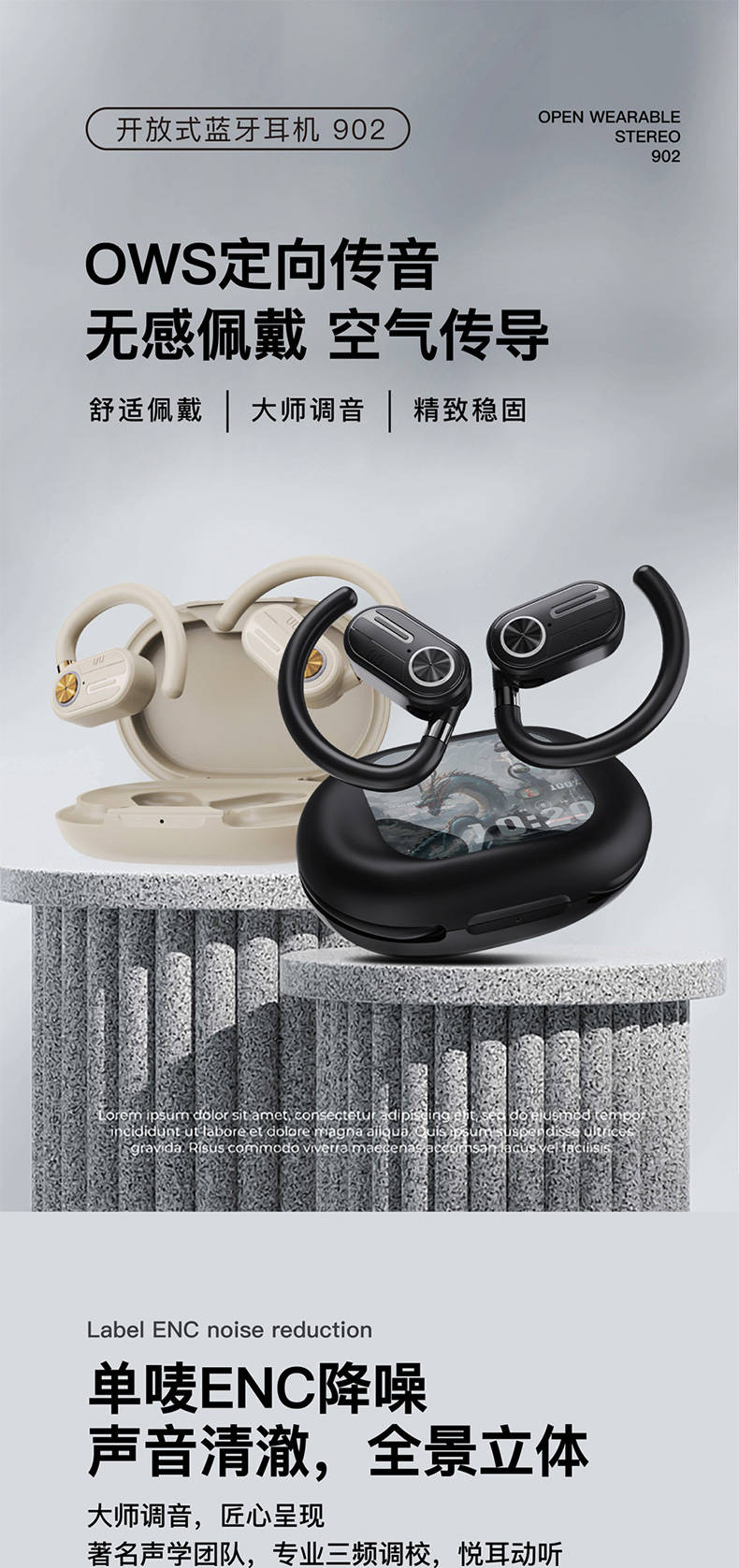 【精选】岸纾 OWS定向传音空气传导全景立体降噪耳机 佩戴云感 人体工学设计 长续航