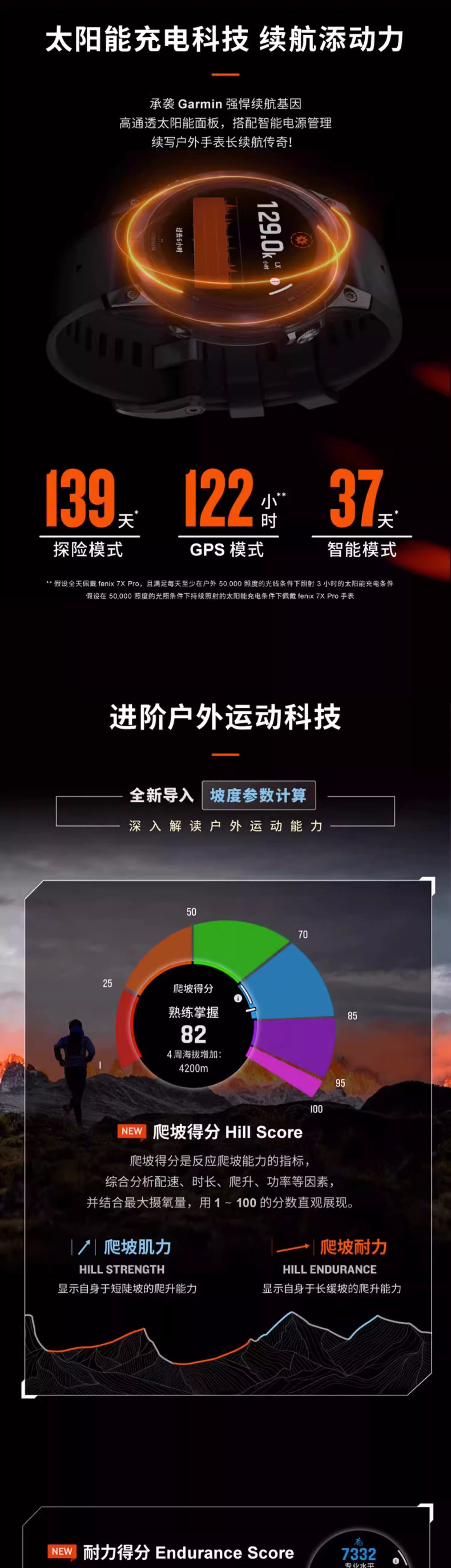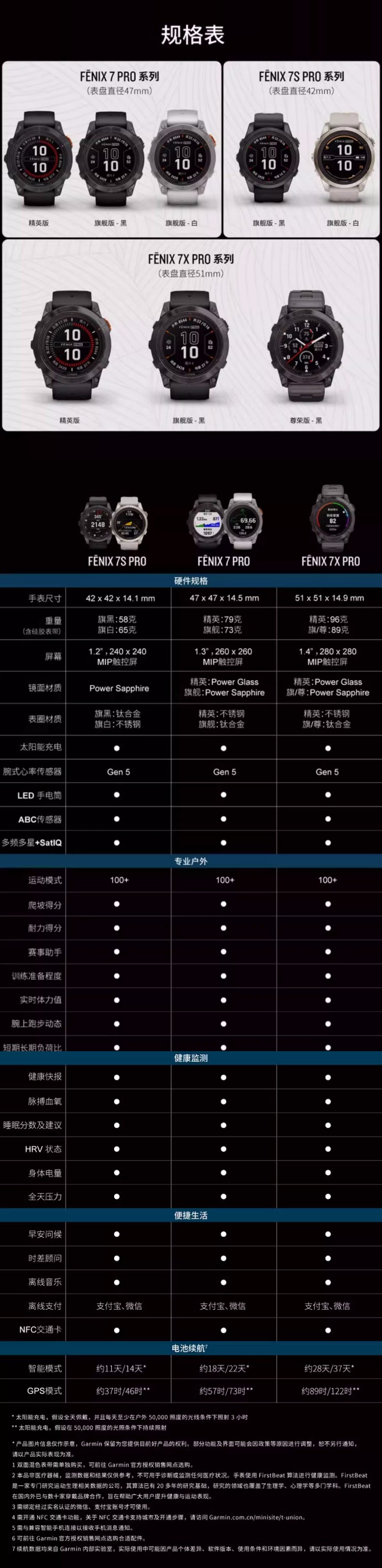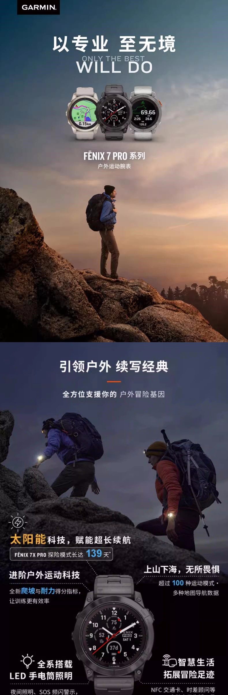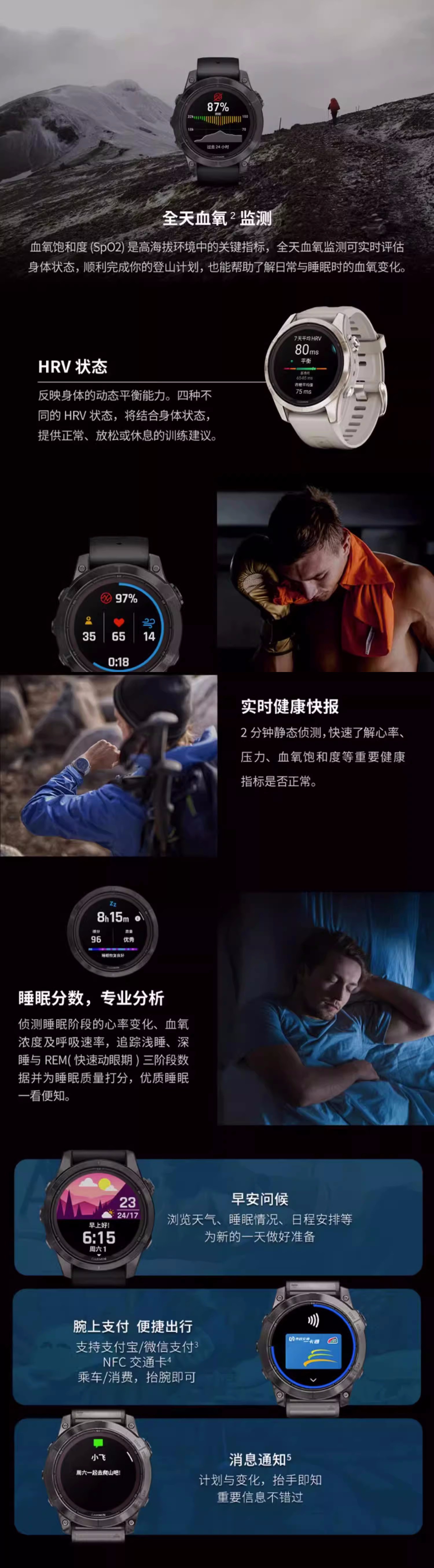 Garmin佳明Fenix7/7S/7X Pro户外运动手表越野登山马拉松