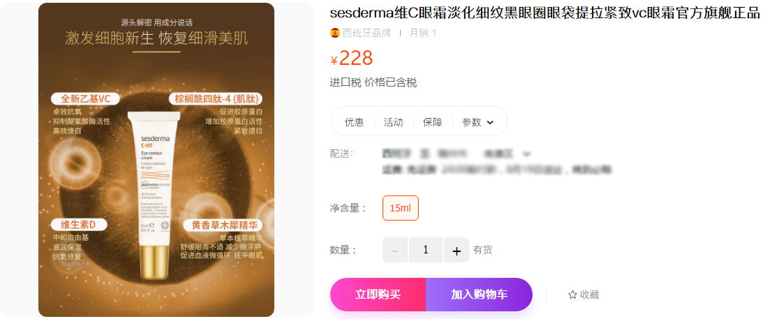 【商品名称】sesdermaC-VIT/维C明眸赋活 眼霜15ml
